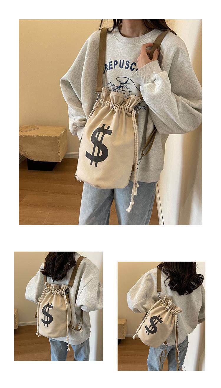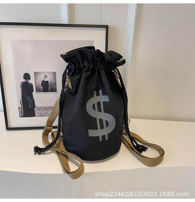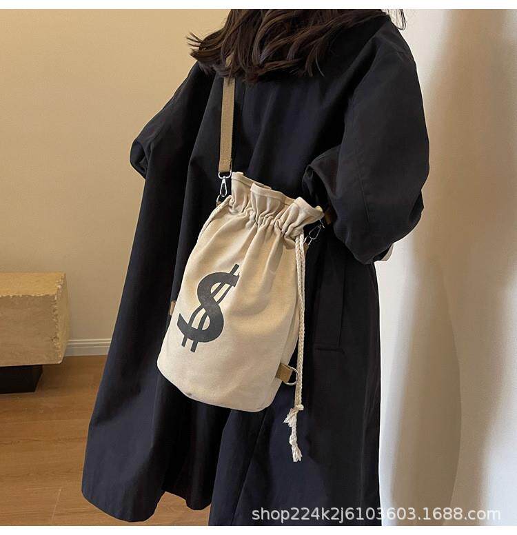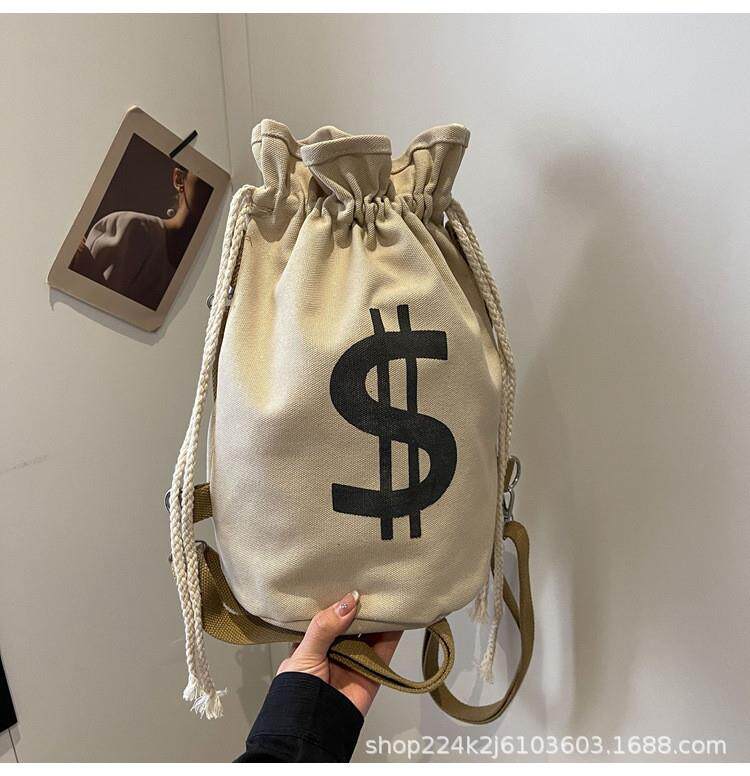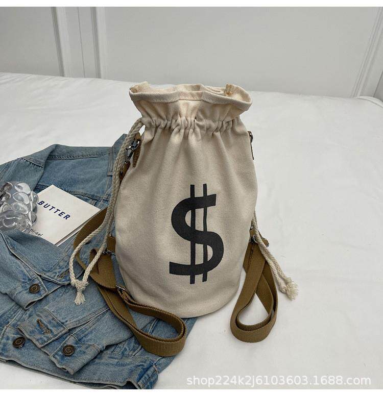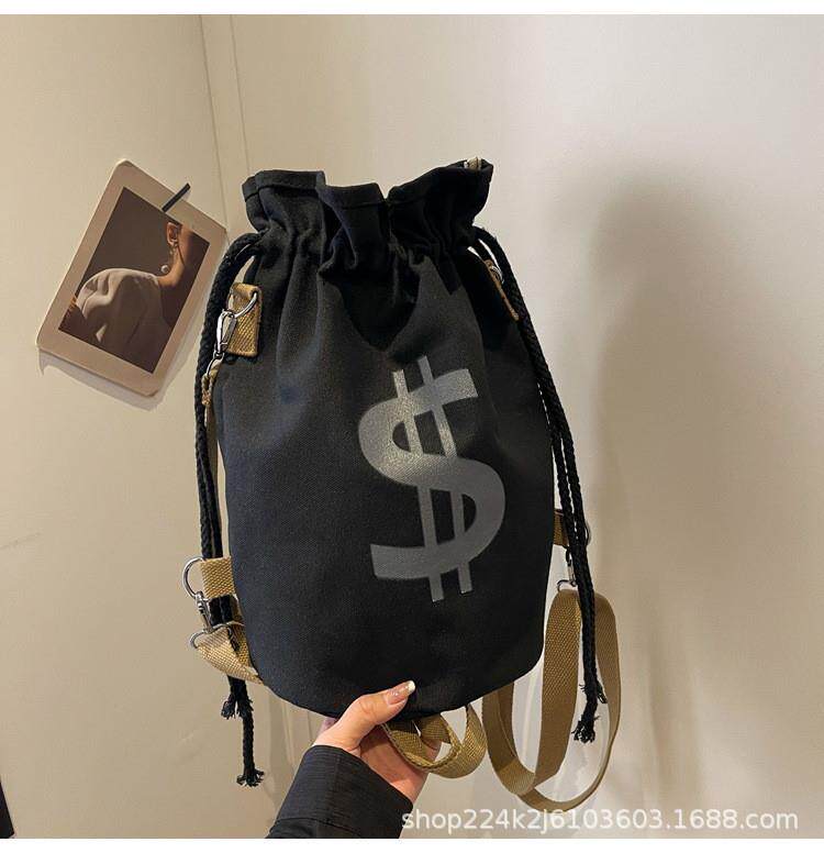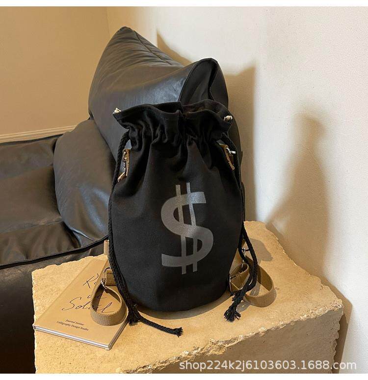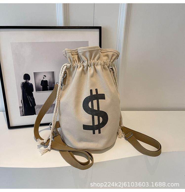 休閒斜後後背包美式帆布包多功能雙肩包兩用束口袋單肩包ins潮後後背包包