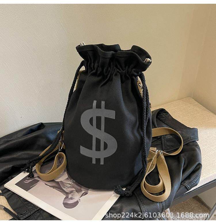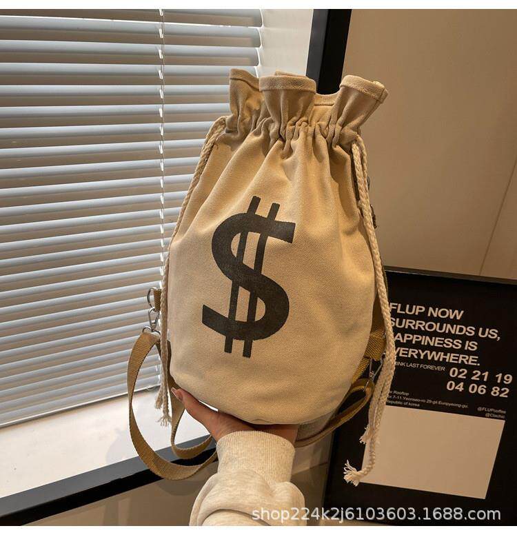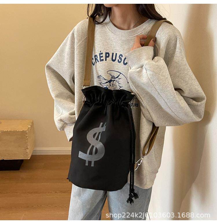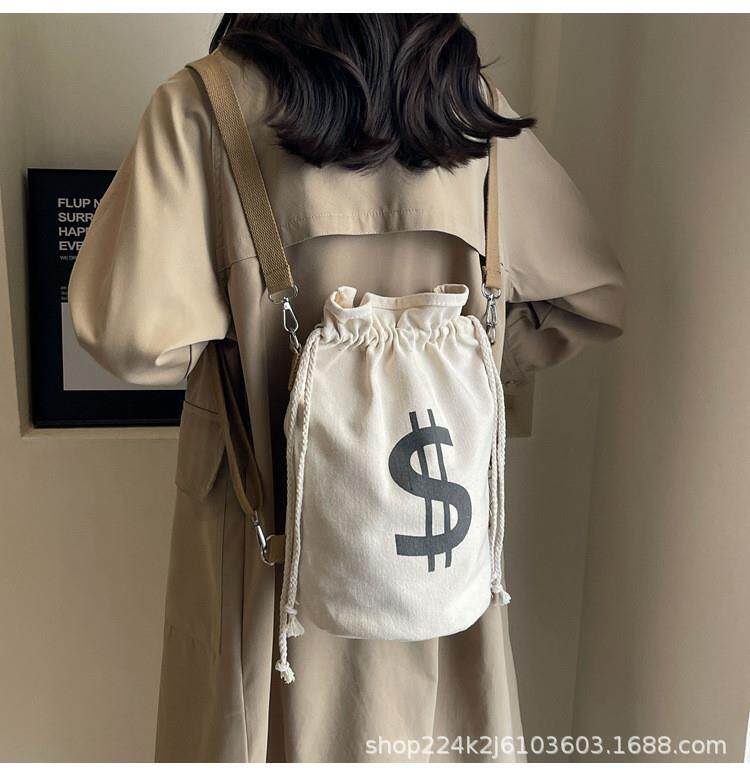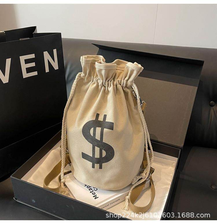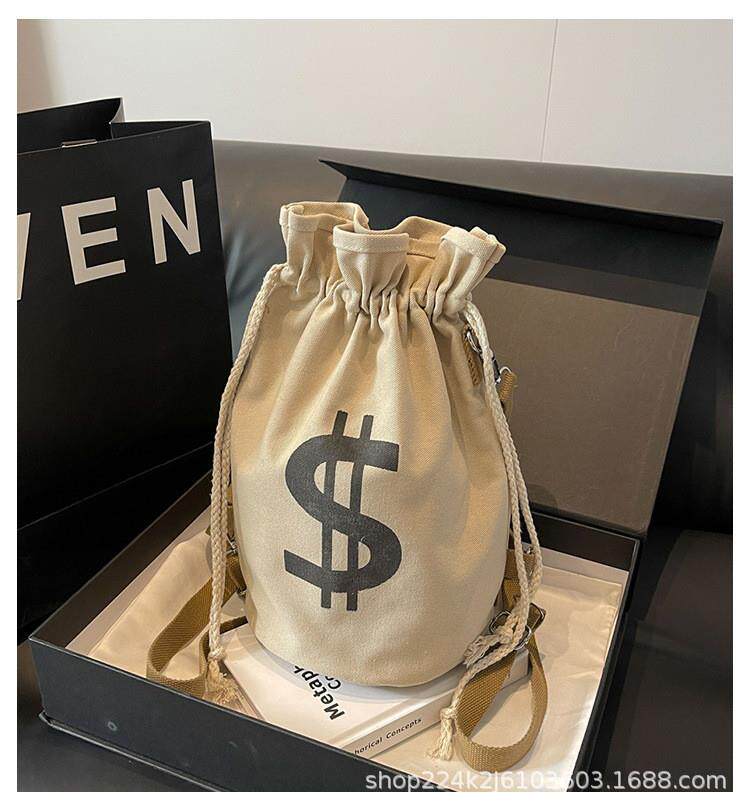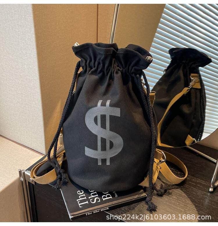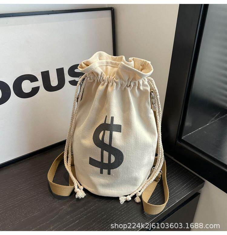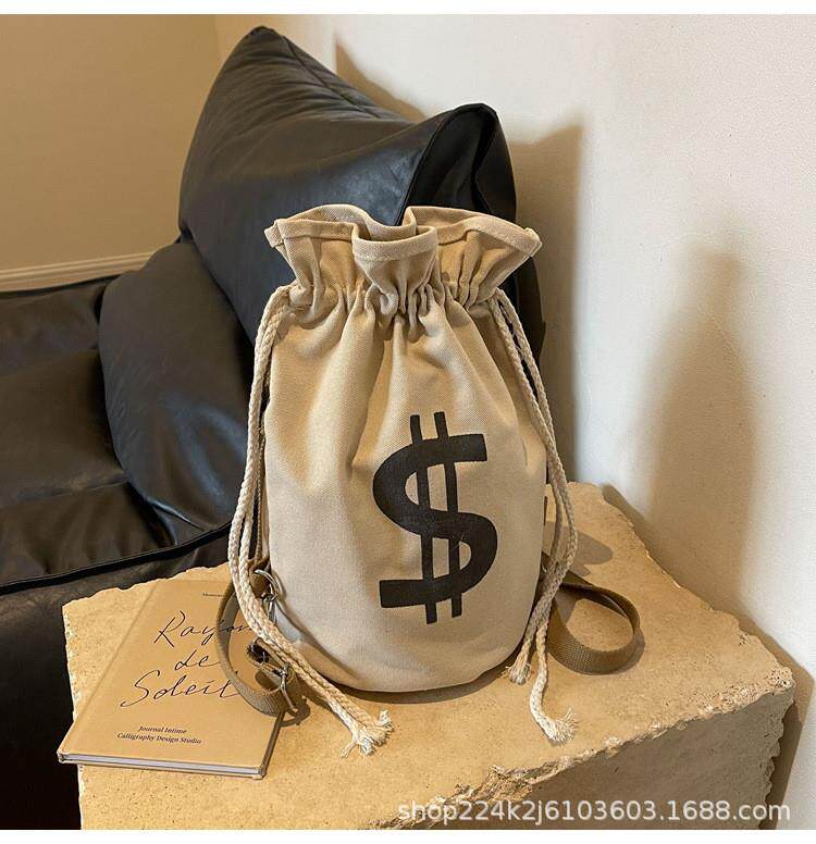 休閒斜後後背包美式帆布包多功能雙肩包兩用束口袋單肩包ins潮後後背包包