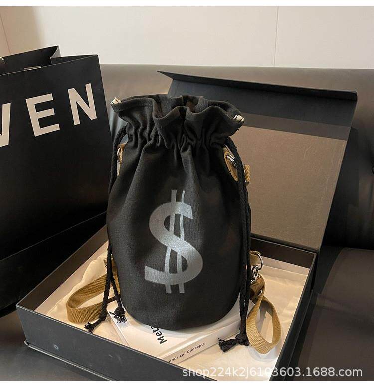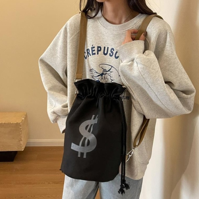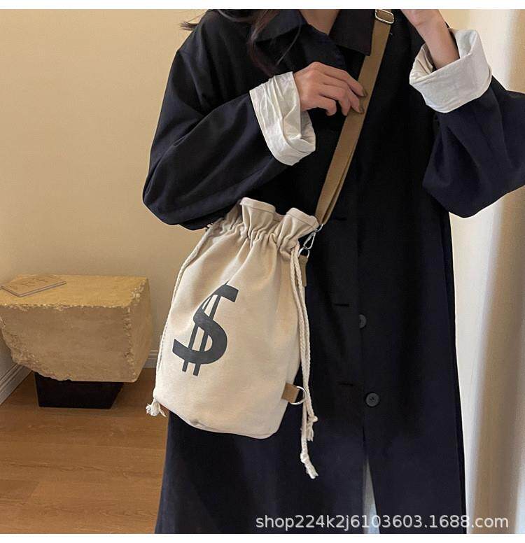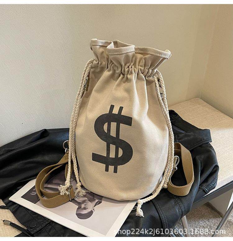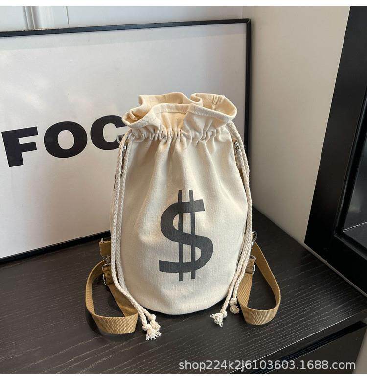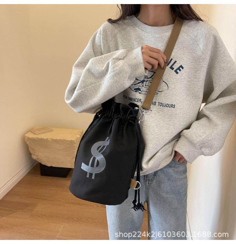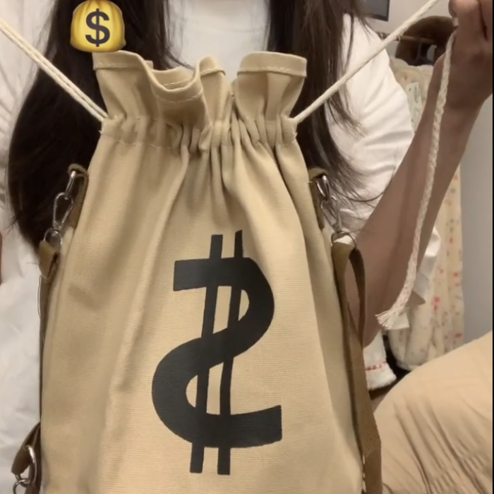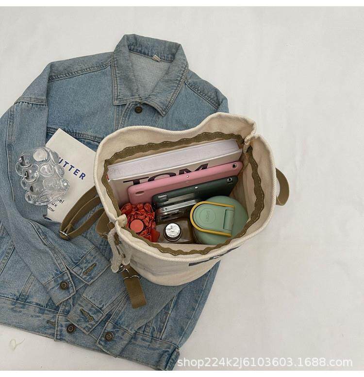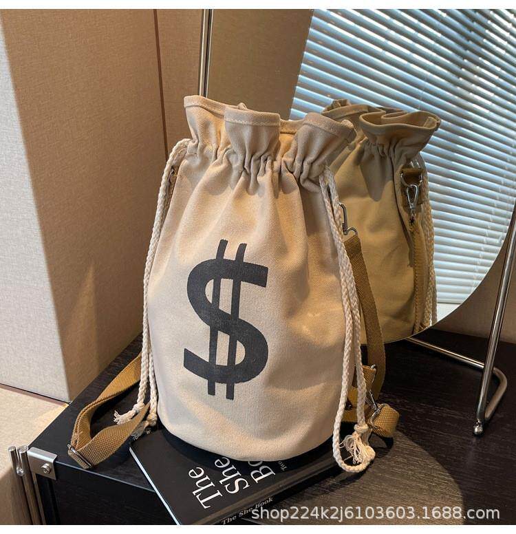 休閒斜後後背包美式帆布包多功能雙肩包兩用束口袋單肩包ins潮後後背包包