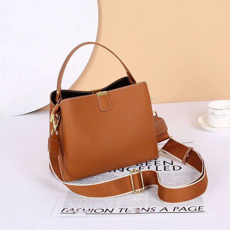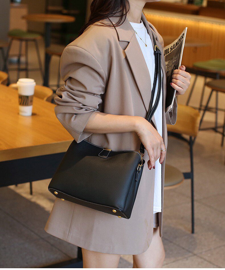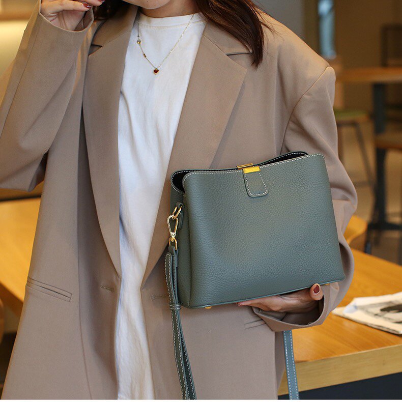 頭層牛皮包包2025新款潮大容量水桶包簡約百搭真皮單肩斜背手提包