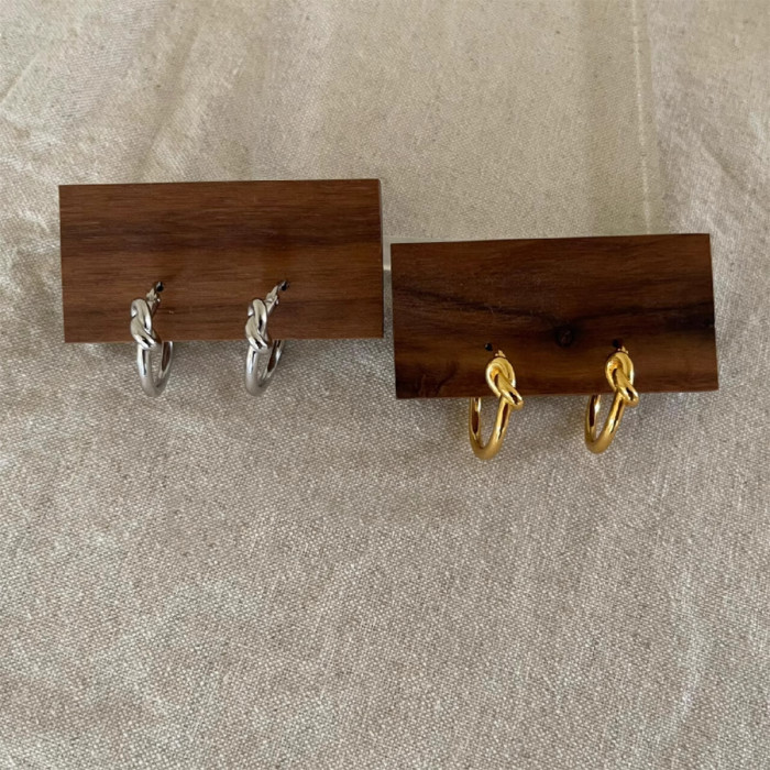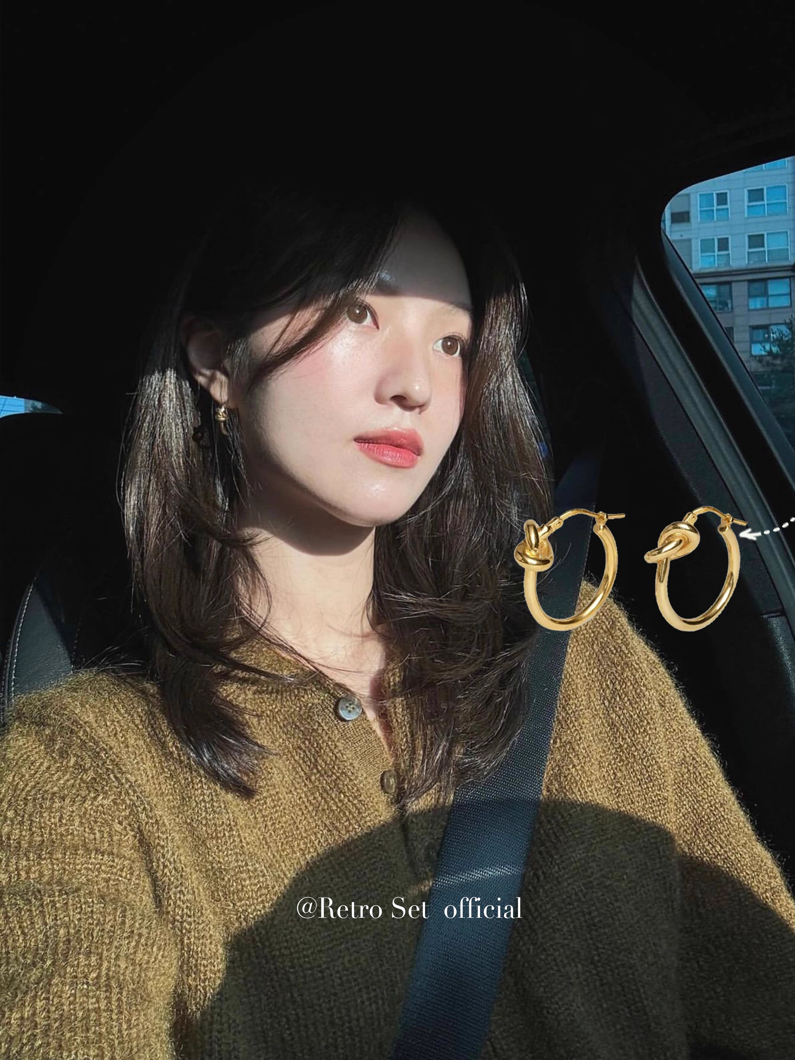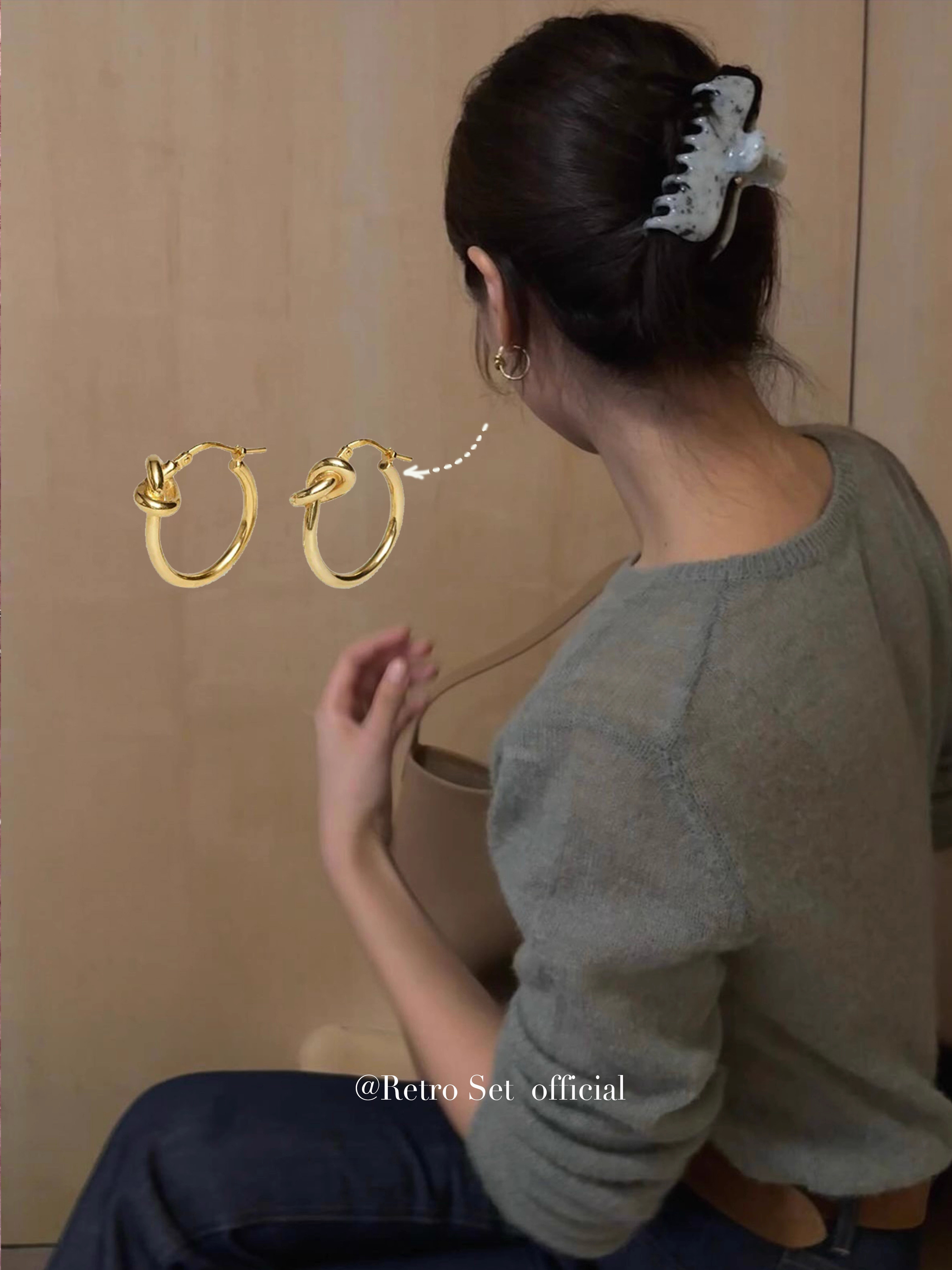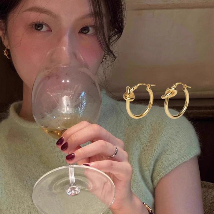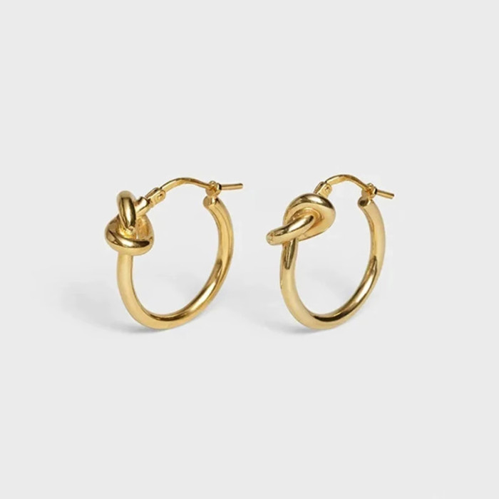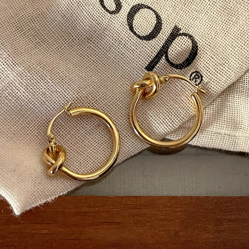 中古ce風金色極簡打結圓環耳環鈦鋼電鍍24k金輕奢高級百掉色耳飾