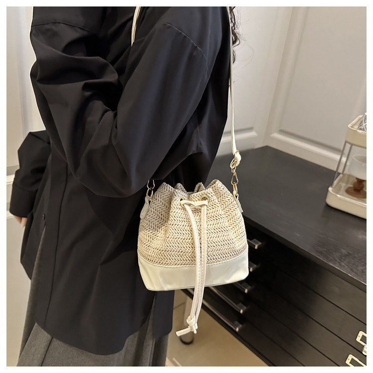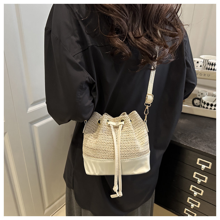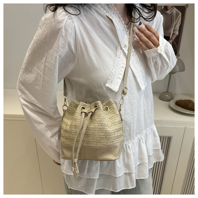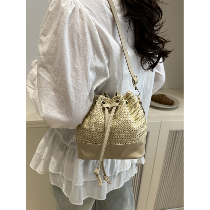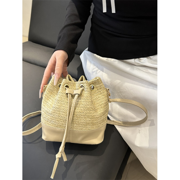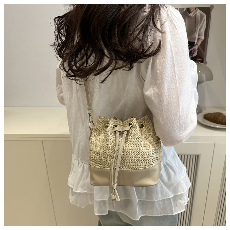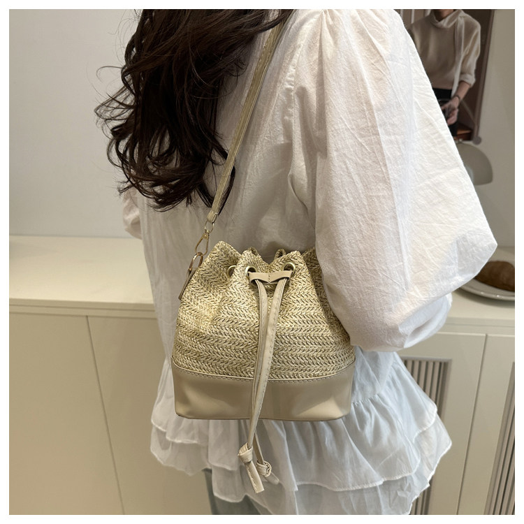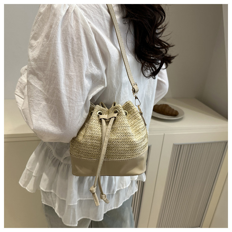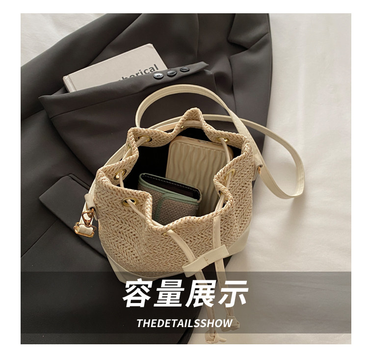 編織草編包包女士2025新款夏季百搭斜背海邊度假沙灘包手提水桶包