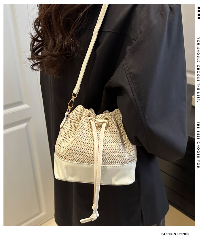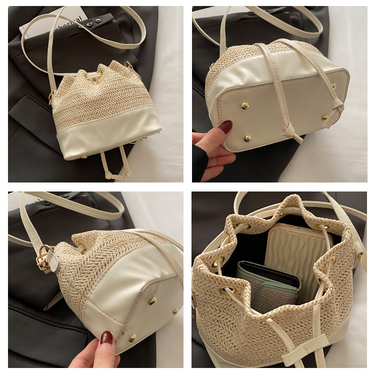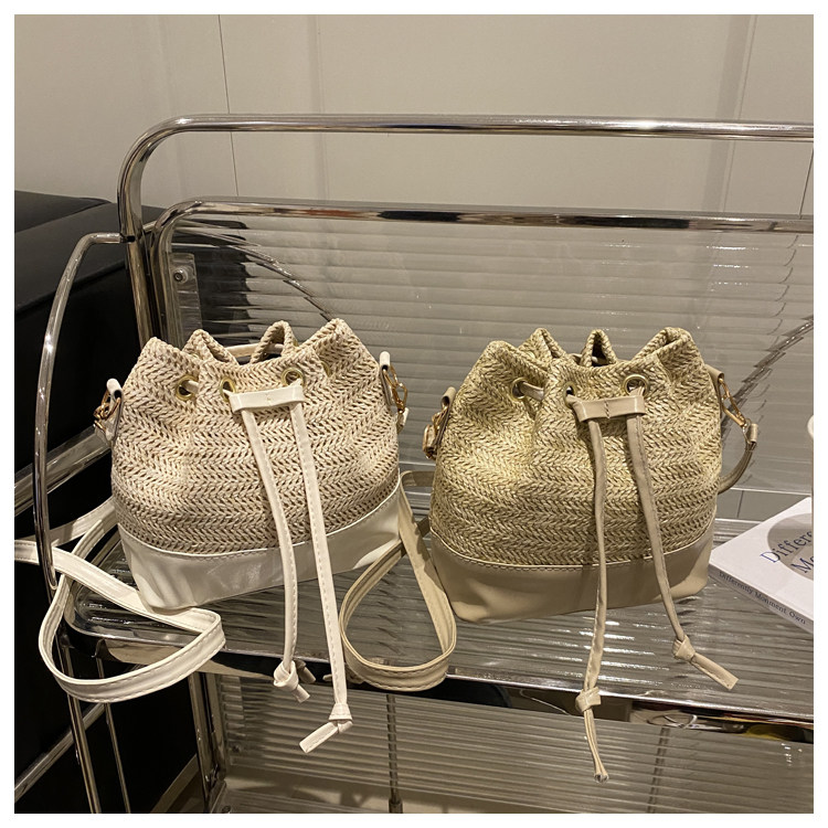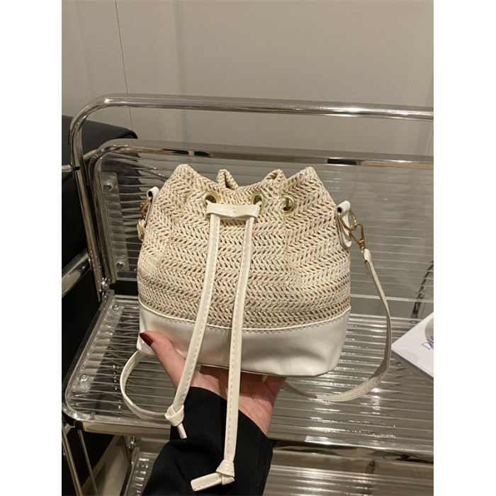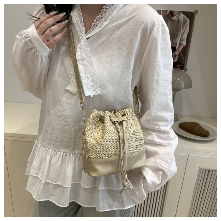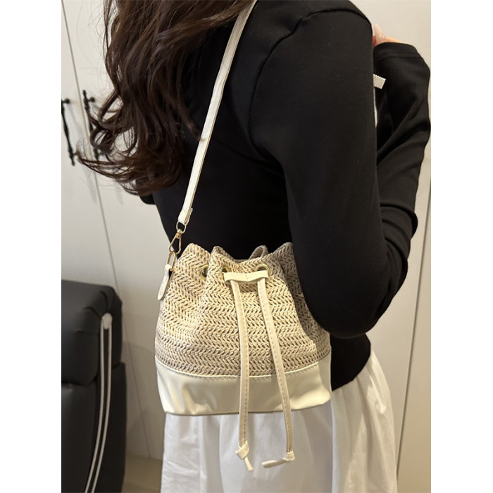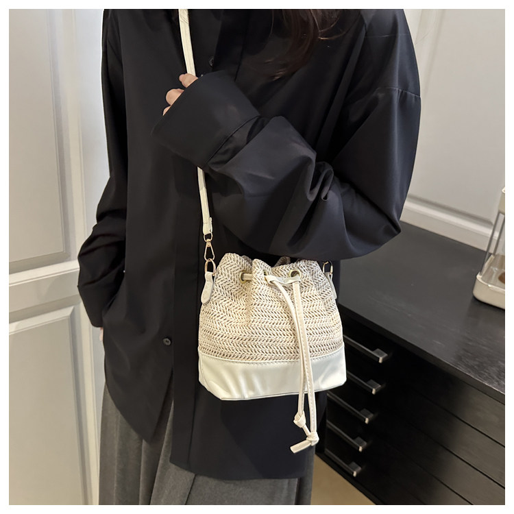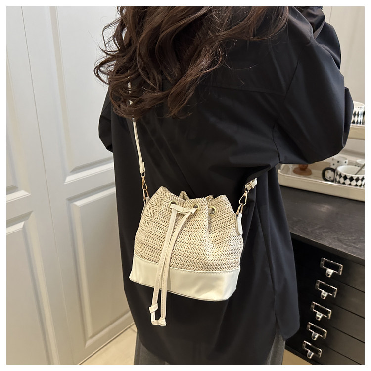 編織草編包包女士2025新款夏季百搭斜背海邊度假沙灘包手提水桶包