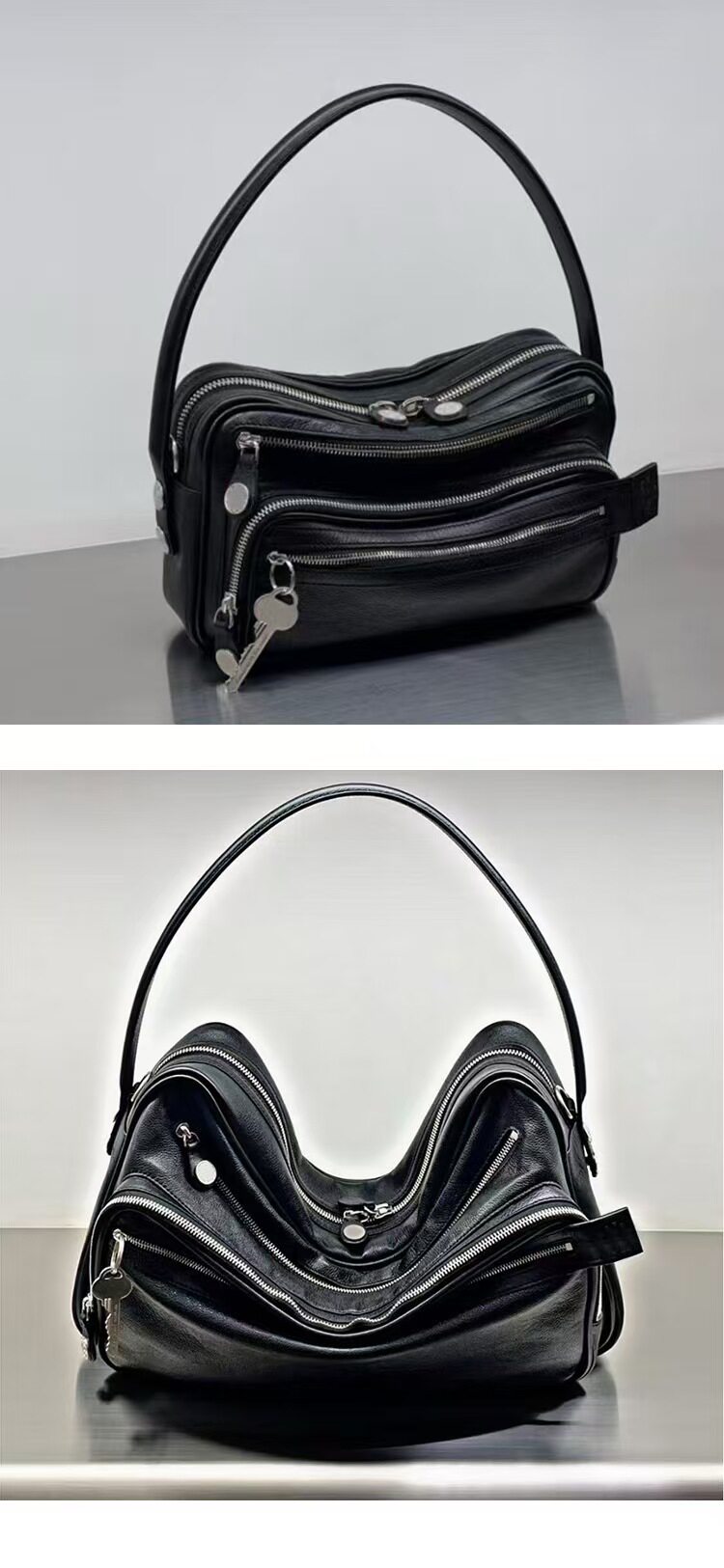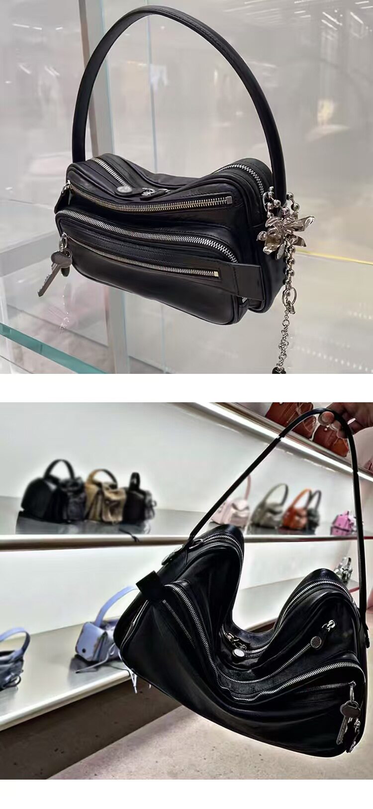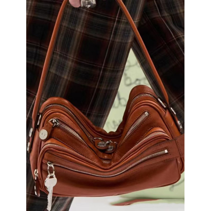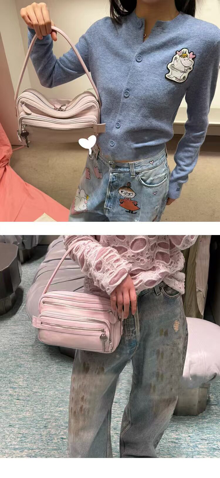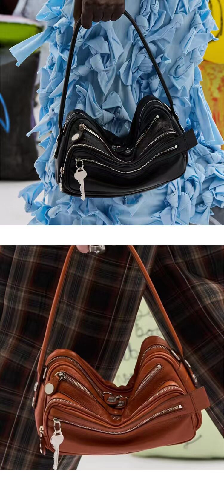2025新款超火網紅同款保齡球包小方包高級感多口袋鑰匙吊墜機車包