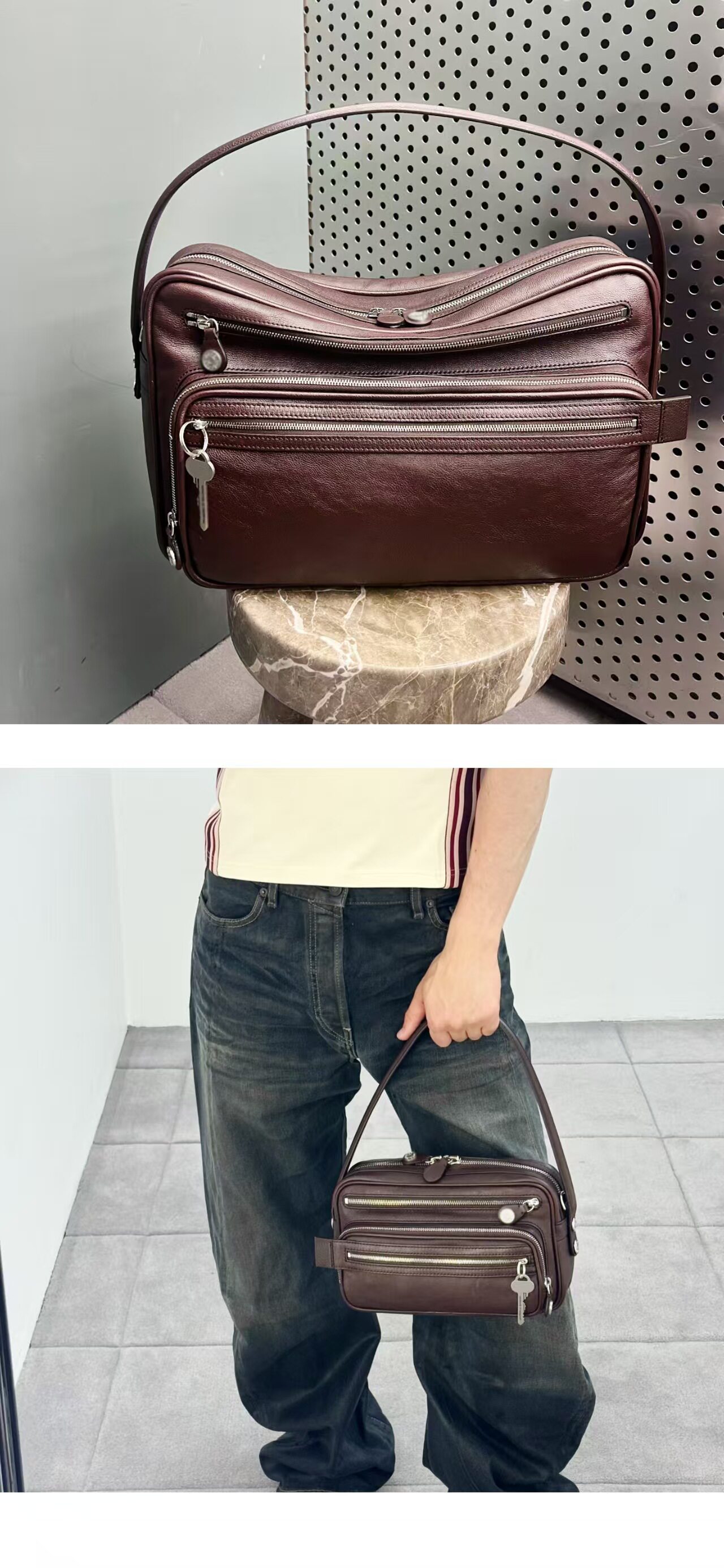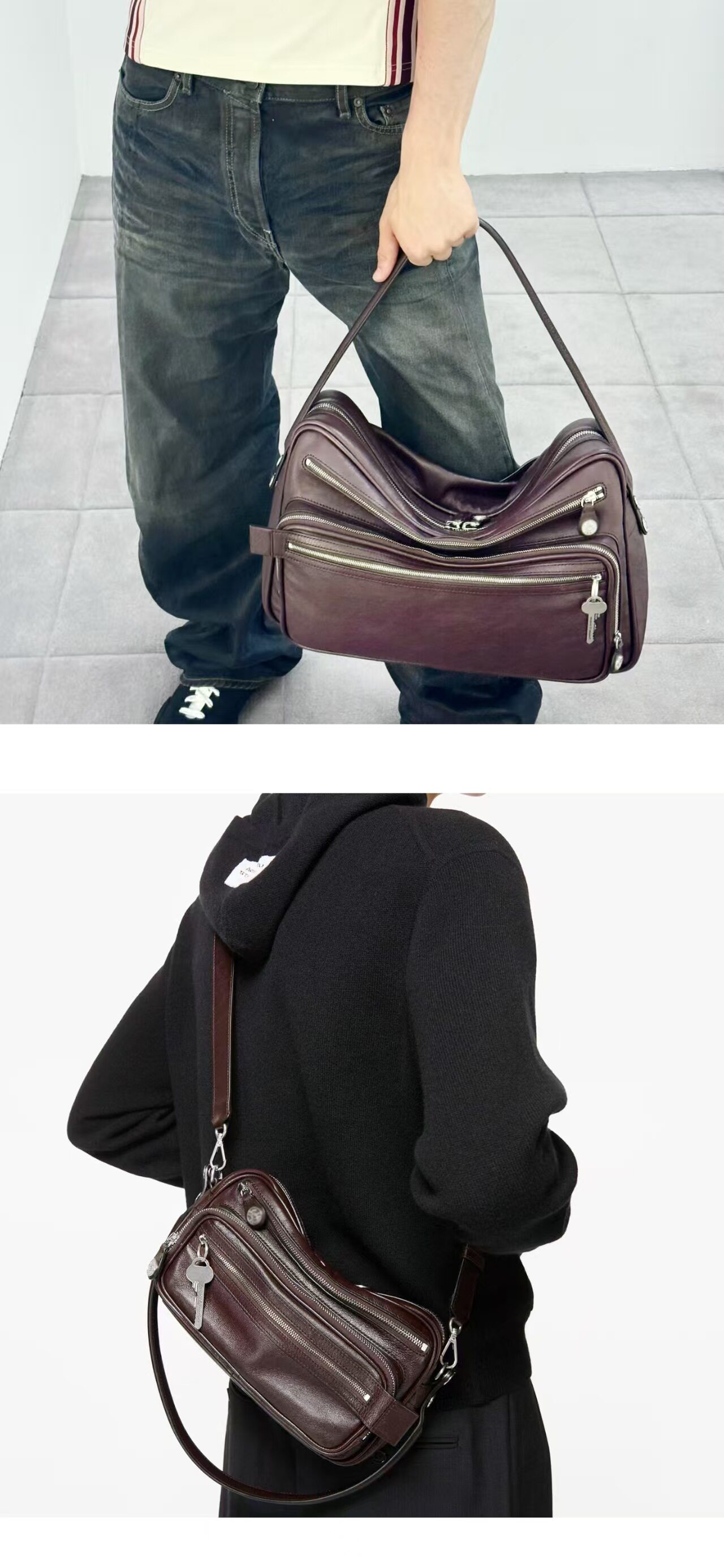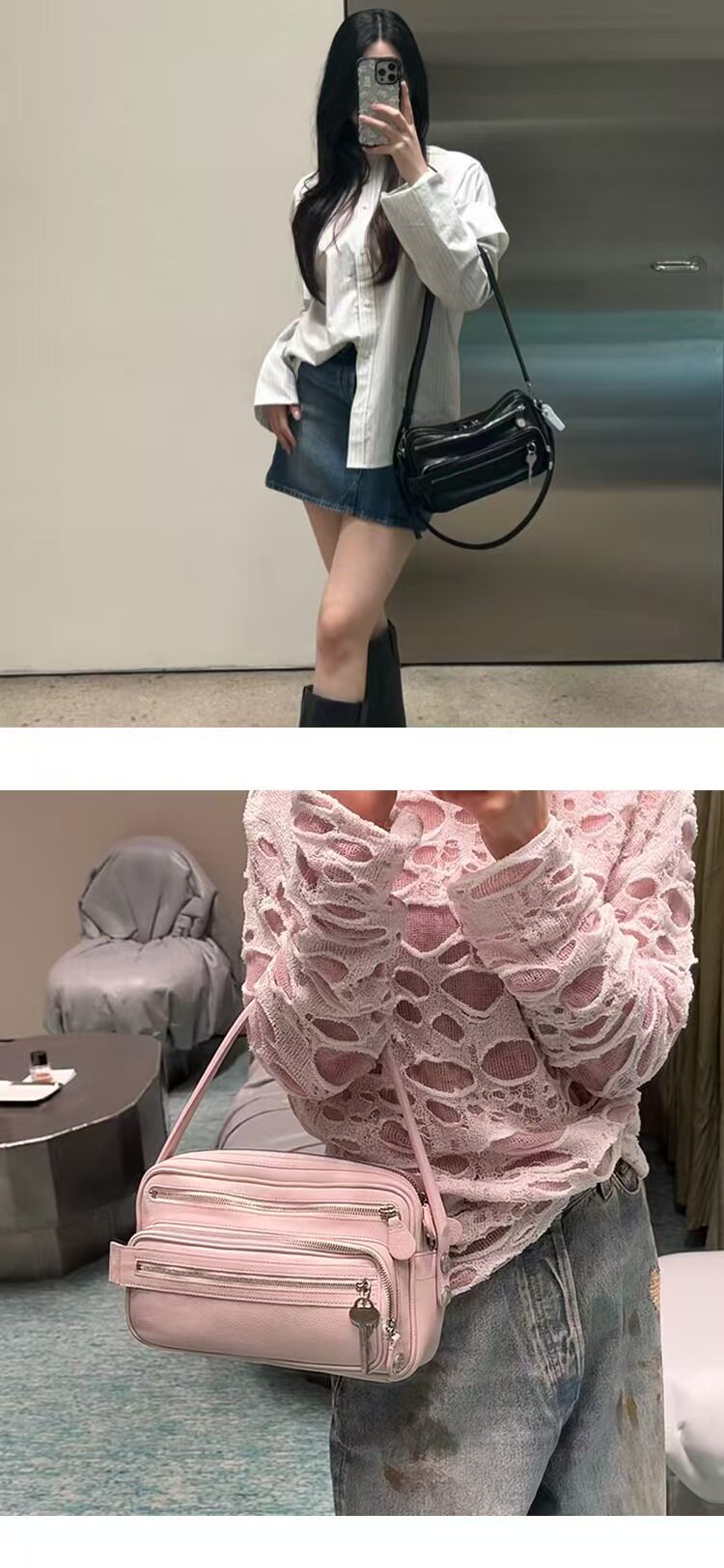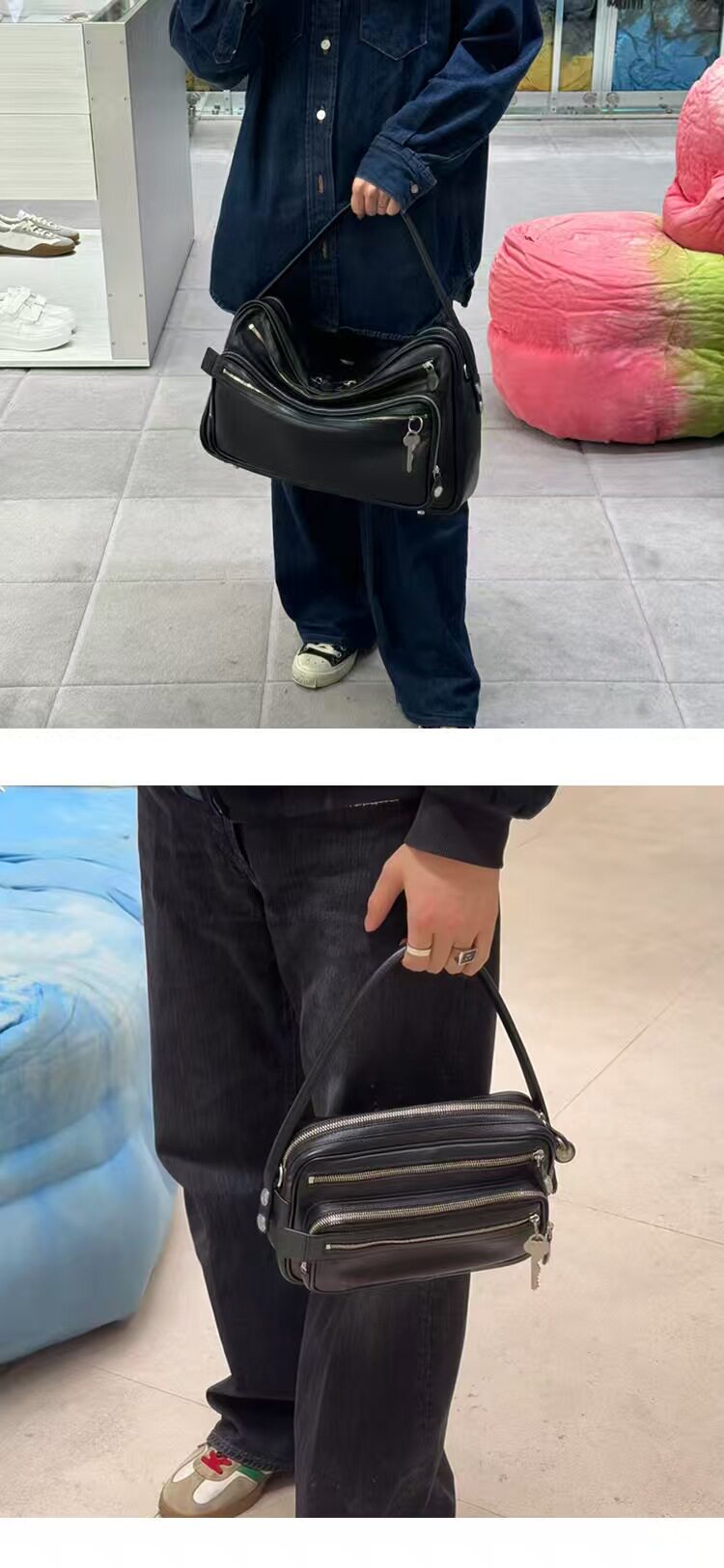 2025新款超火網紅同款保齡球包小方包高級感多口袋鑰匙吊墜機車包