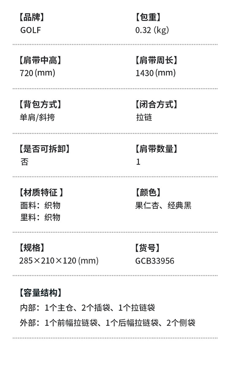 GOLF斜後後背包女2026新款時尚百搭單肩包大容量簡約休閒日常通勤包女