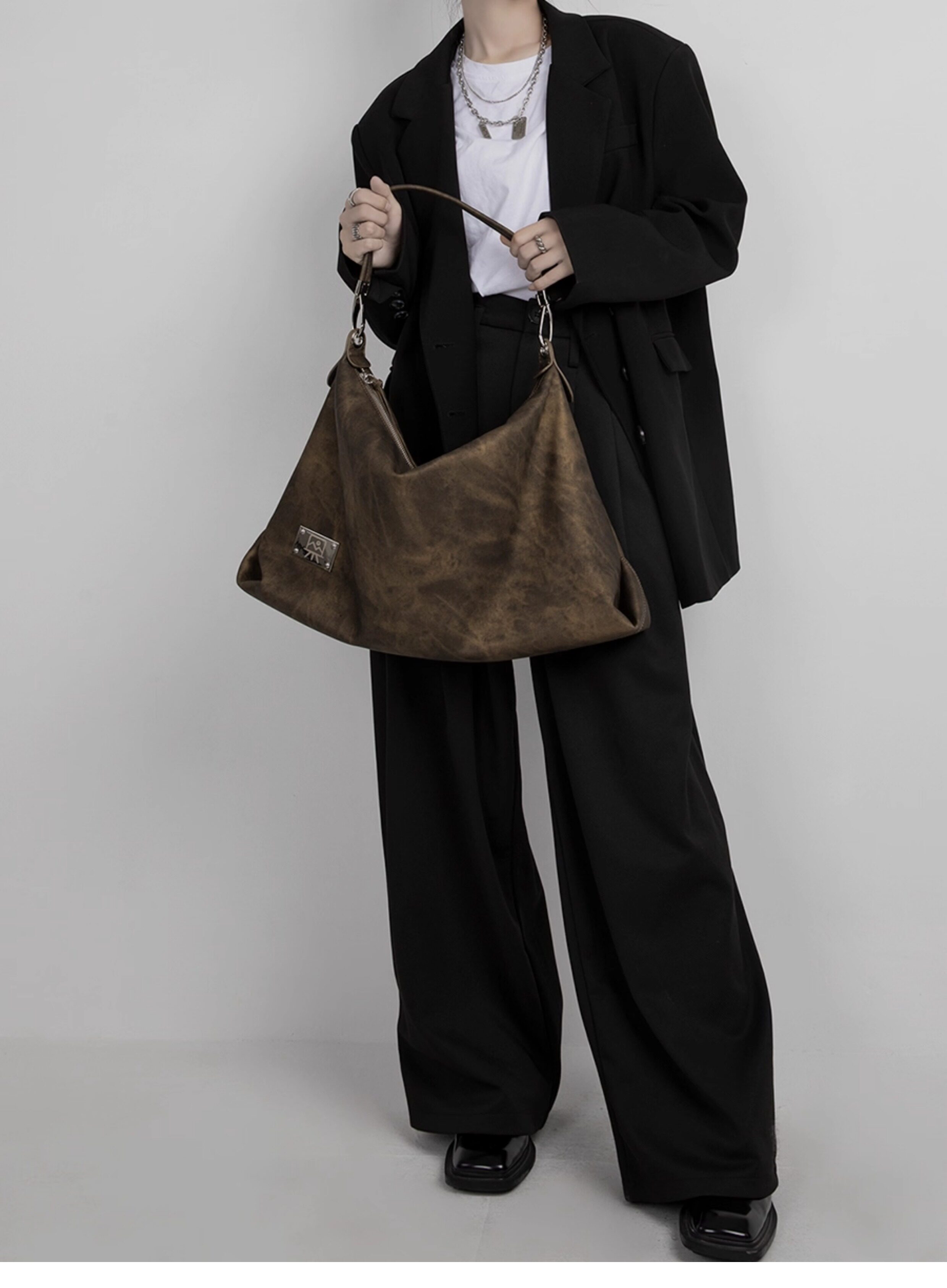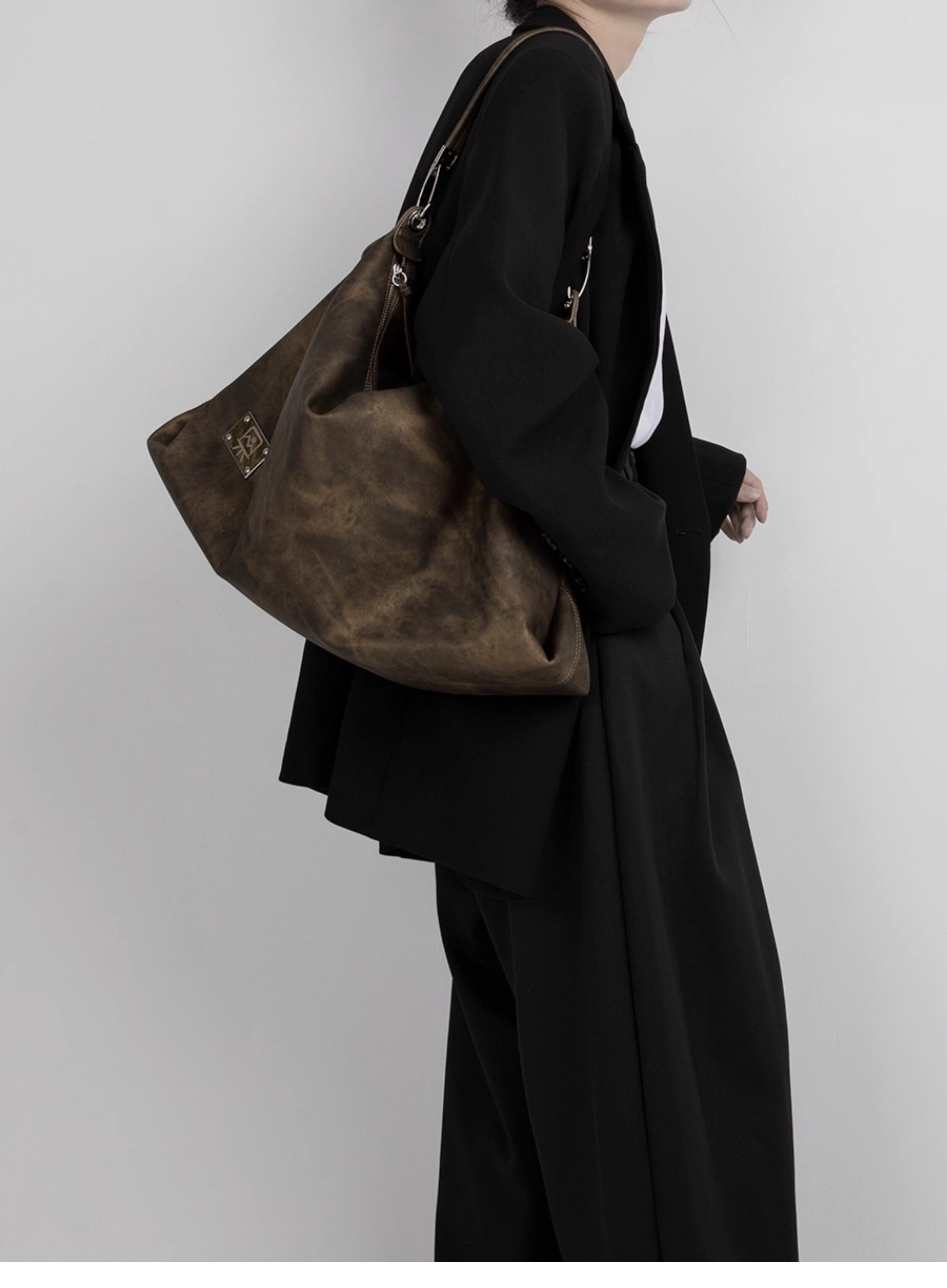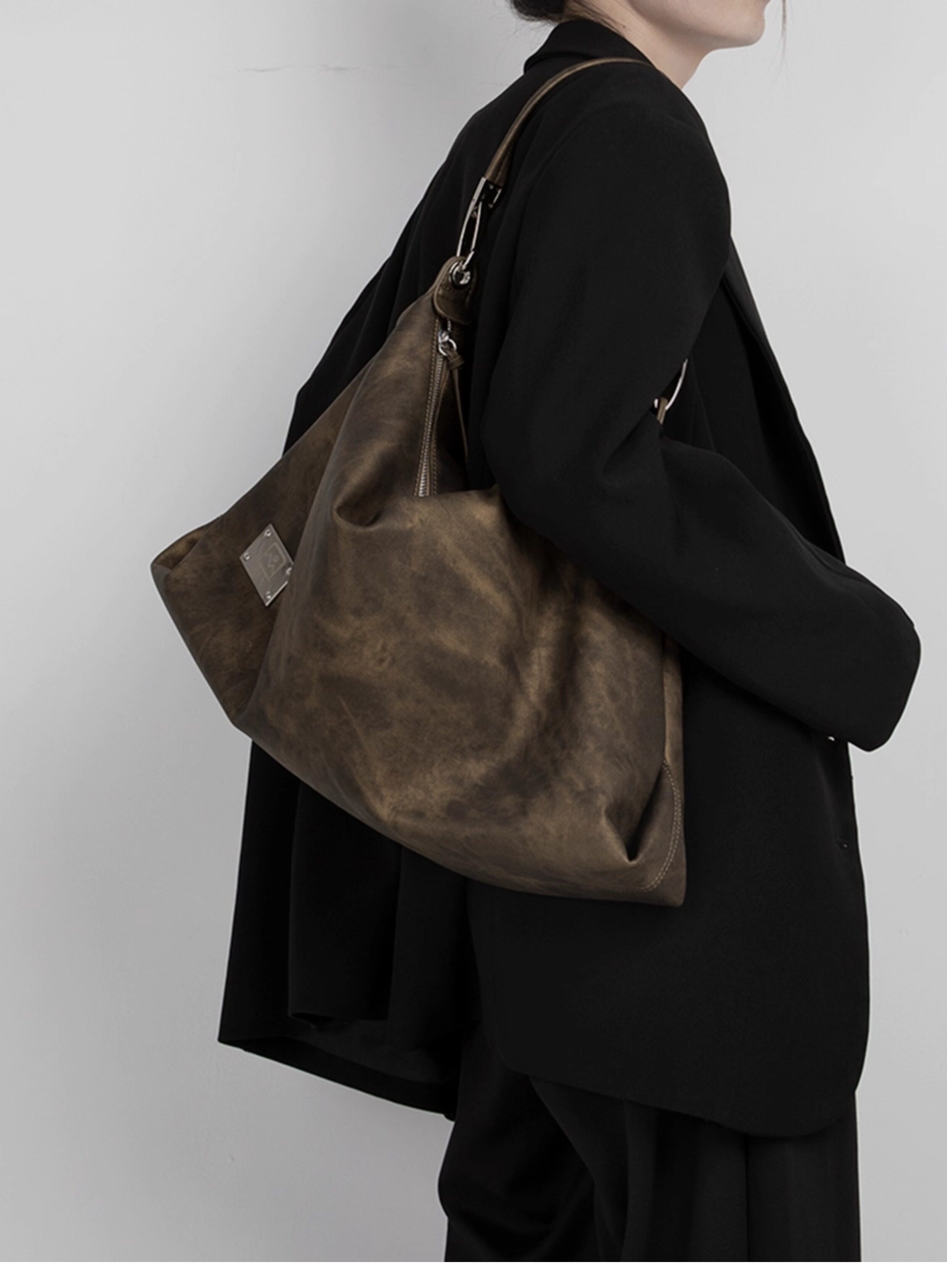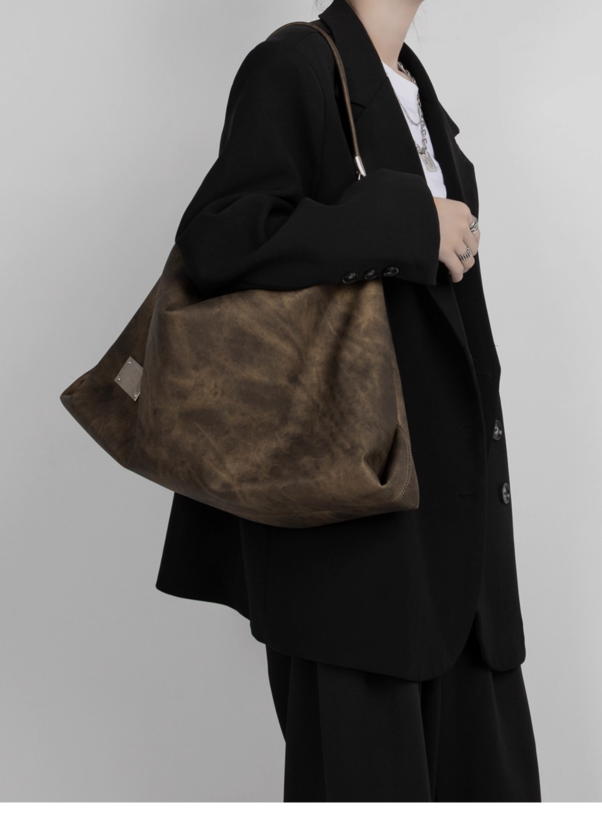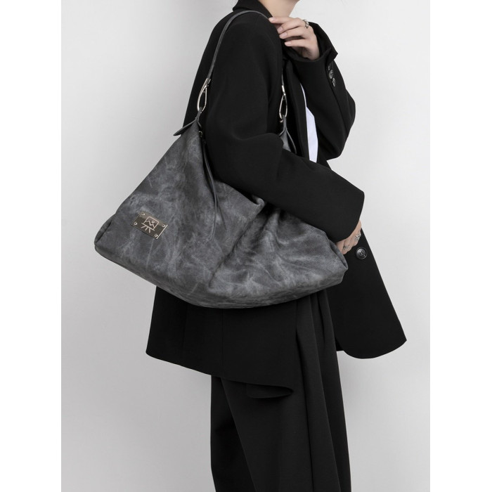 木川卡 原創復古腋下托特包大容量軟皮休閒單肩斜後後背包高級感包包