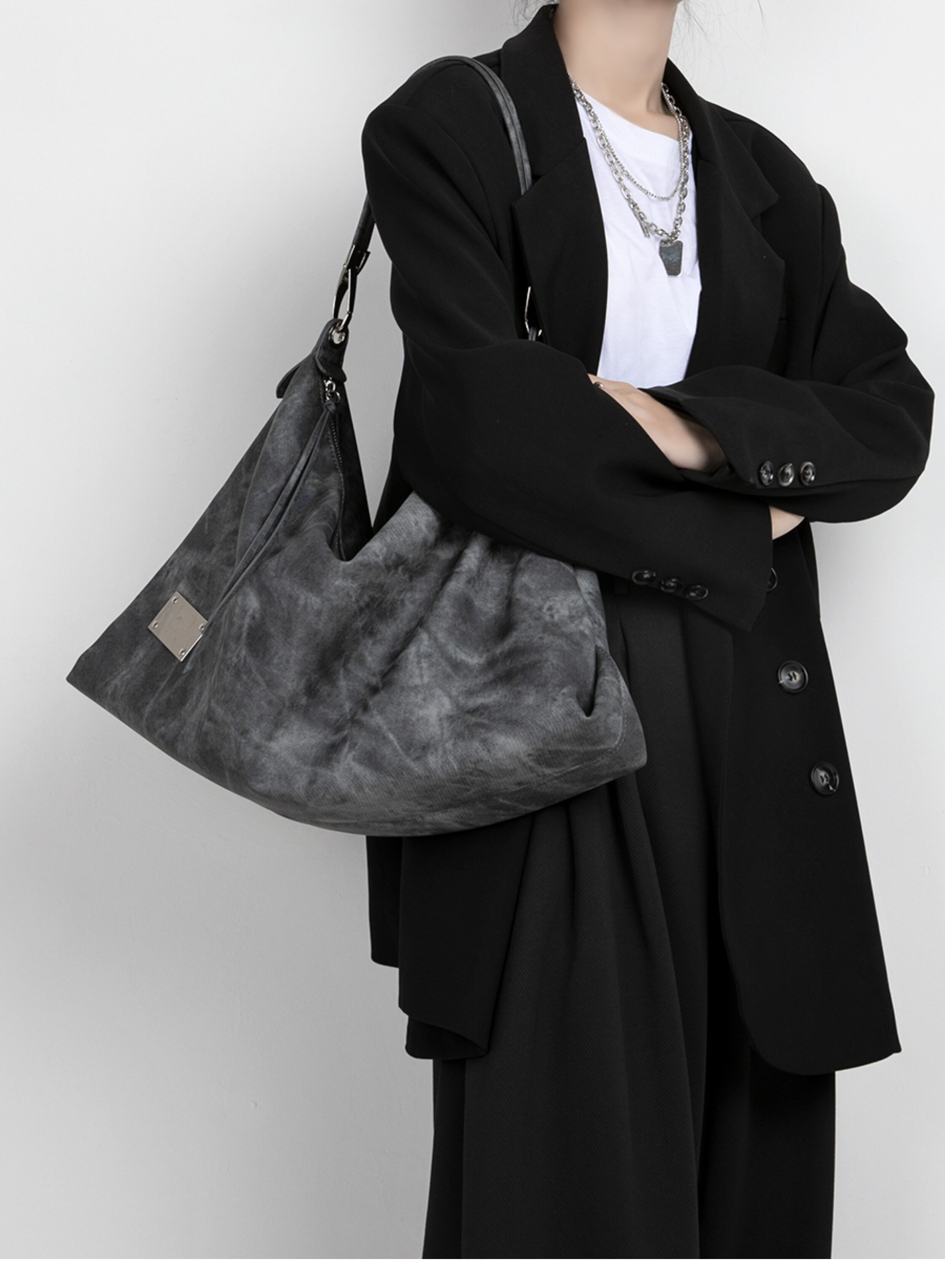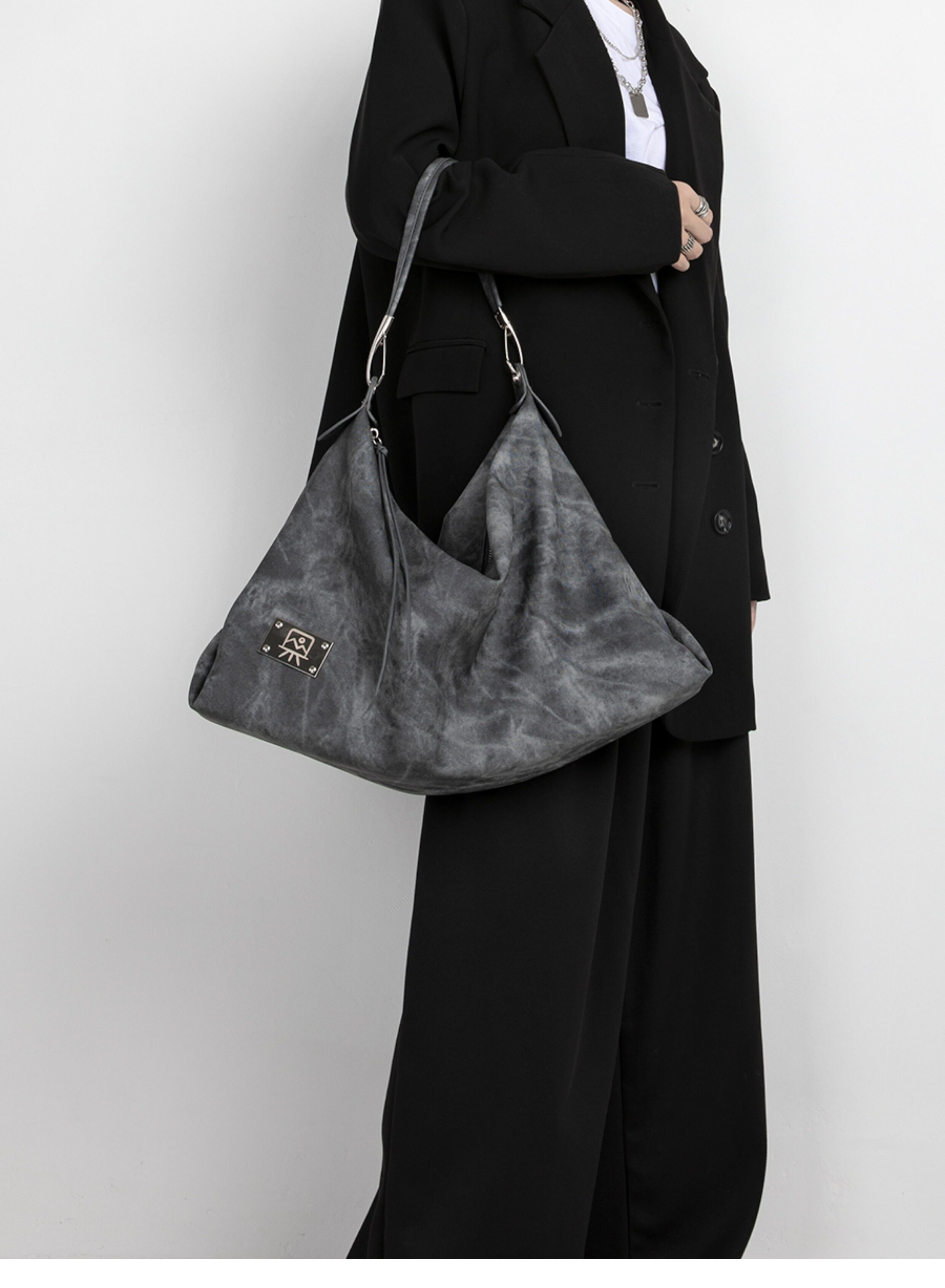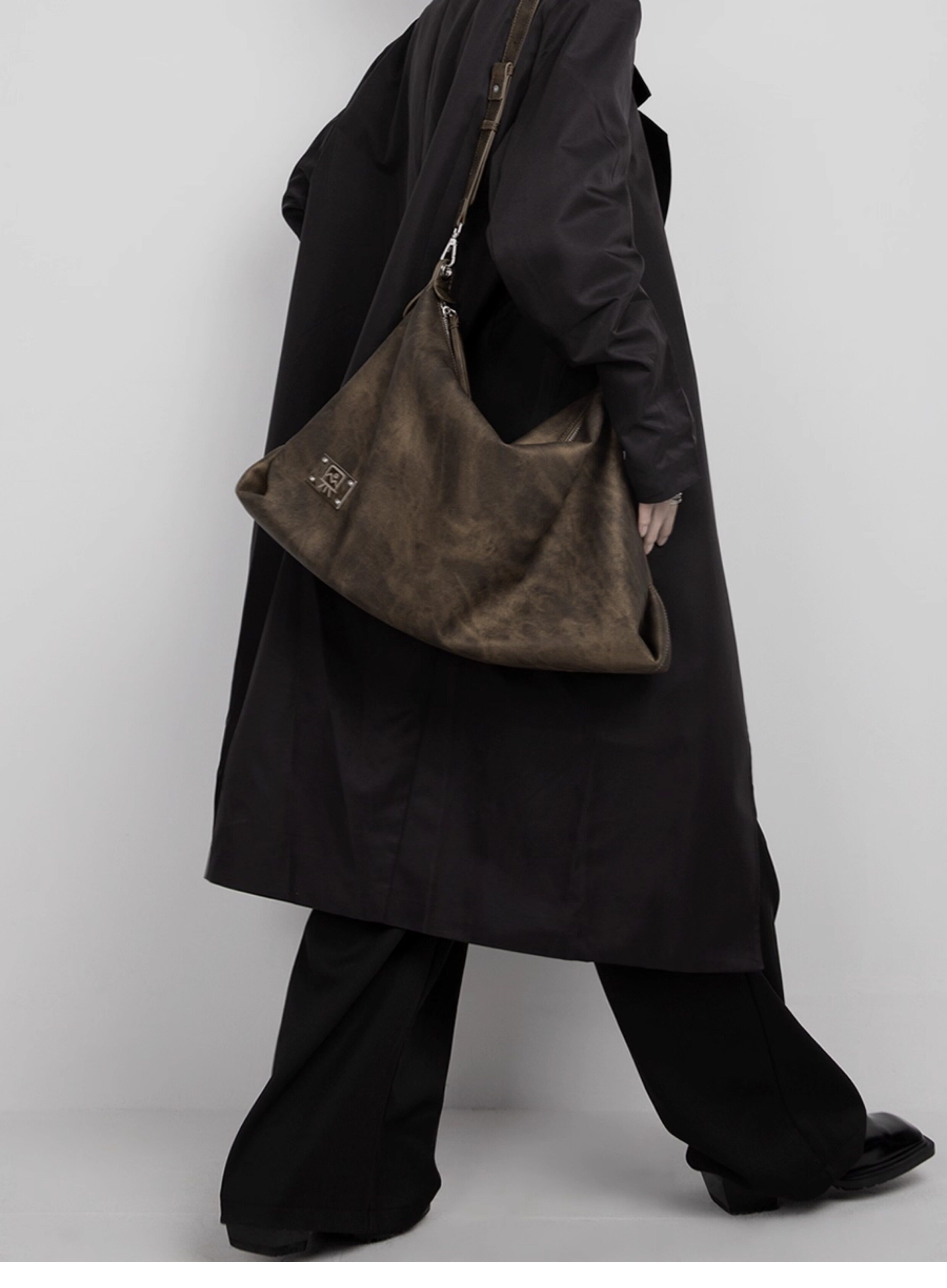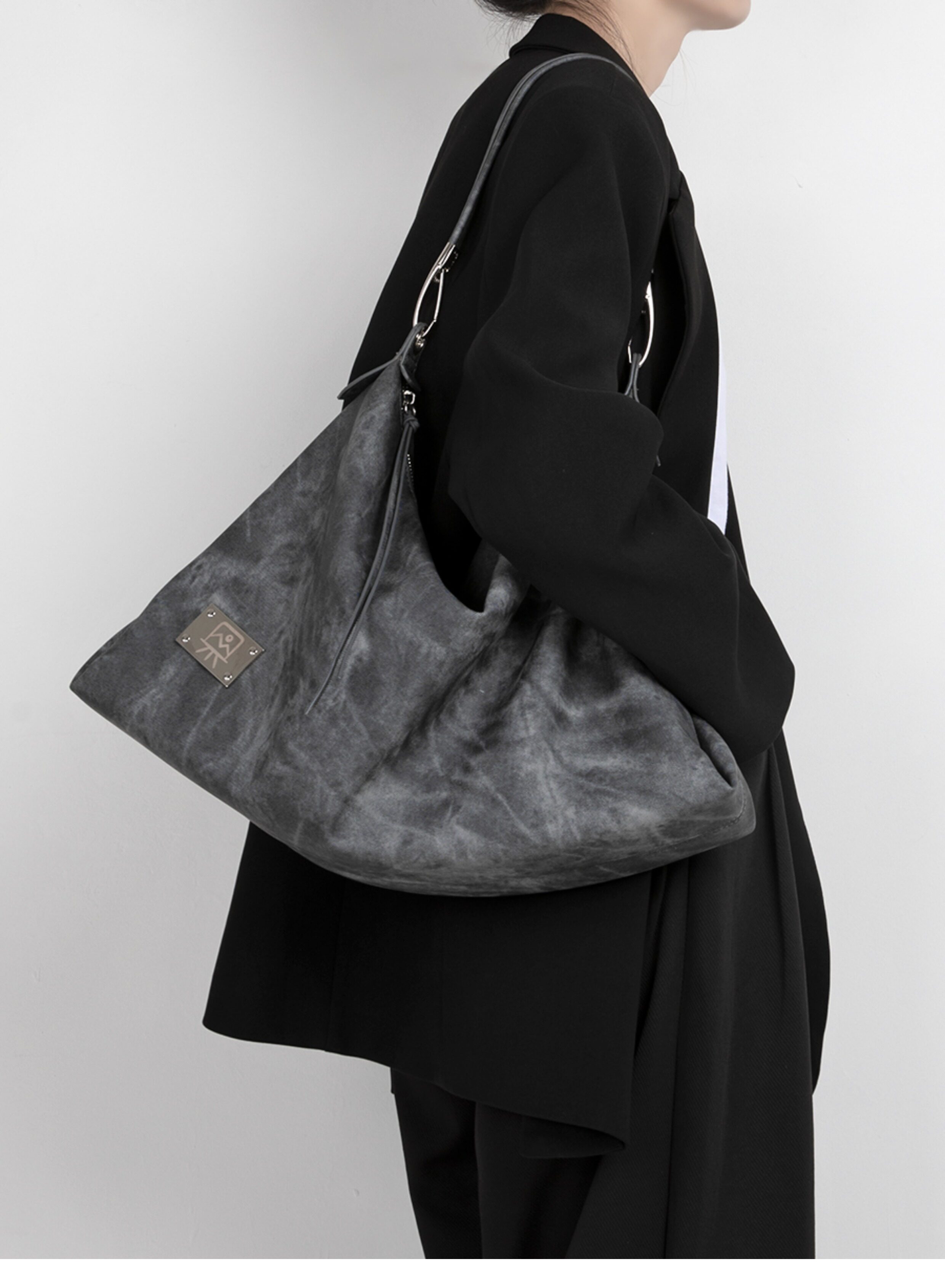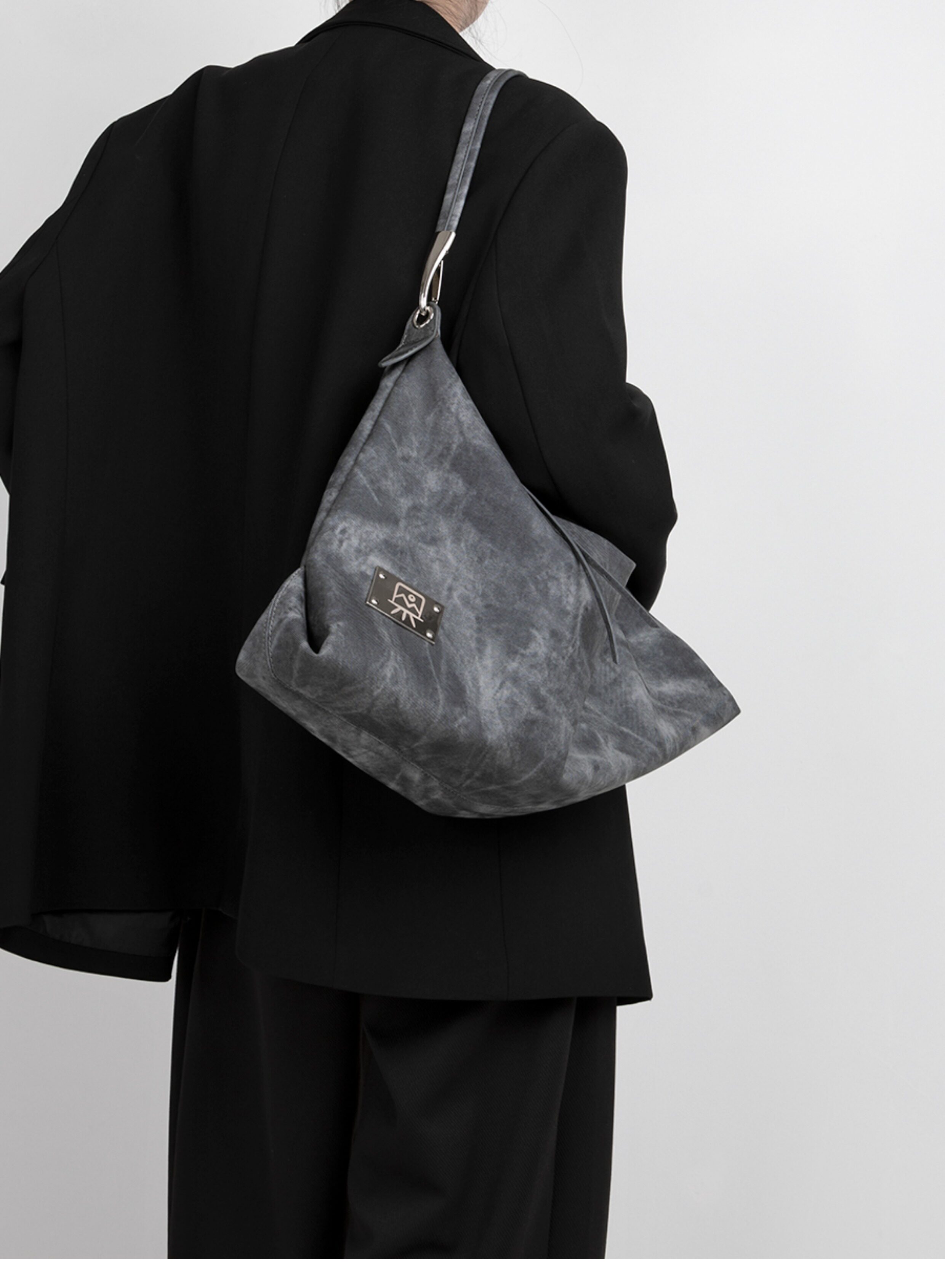 木川卡 原創復古腋下托特包大容量軟皮休閒單肩斜後後背包高級感包包
