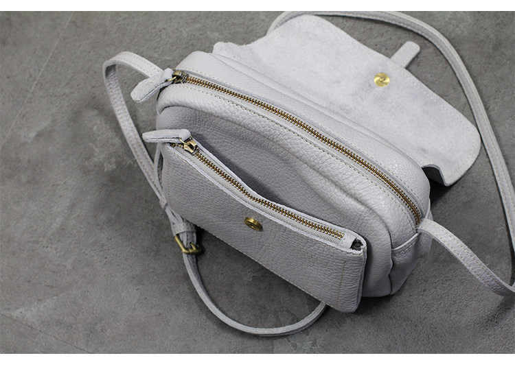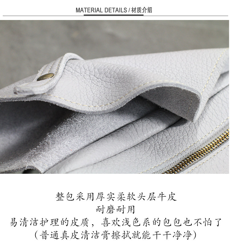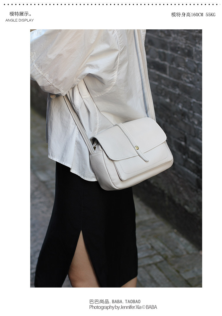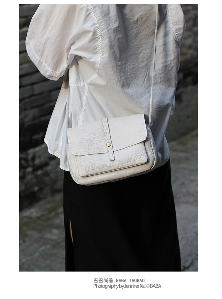 森系文藝軟牛皮女包大容量多口袋實用純皮夏季白色真皮單肩斜後後背包