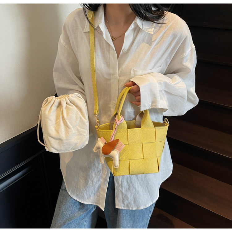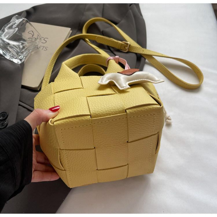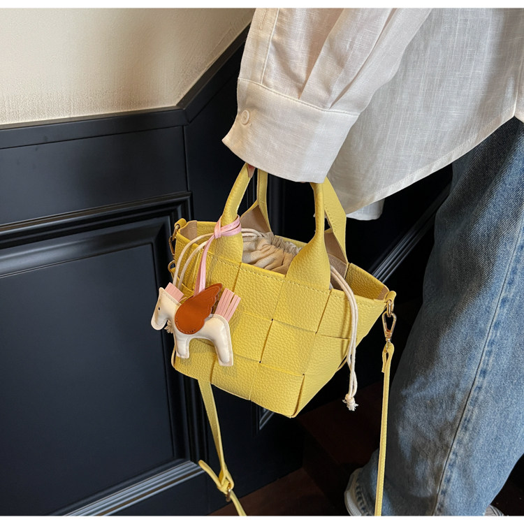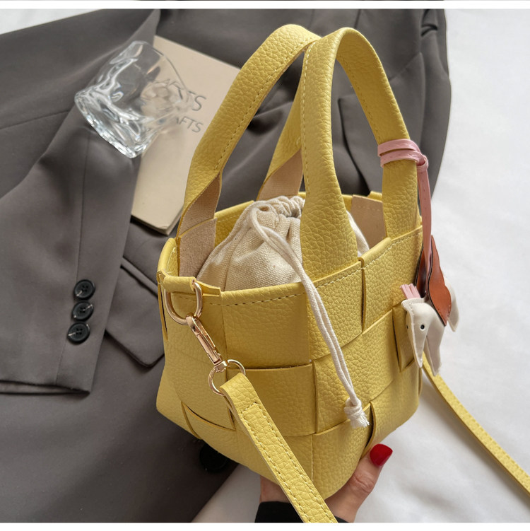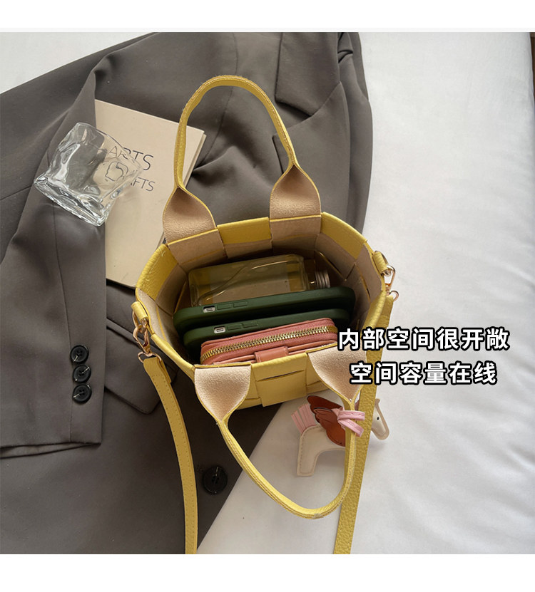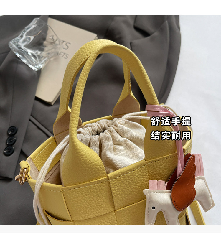 包包女式2025新款夏天超火黃色編織水桶包輕奢小衆高級感斜背女包