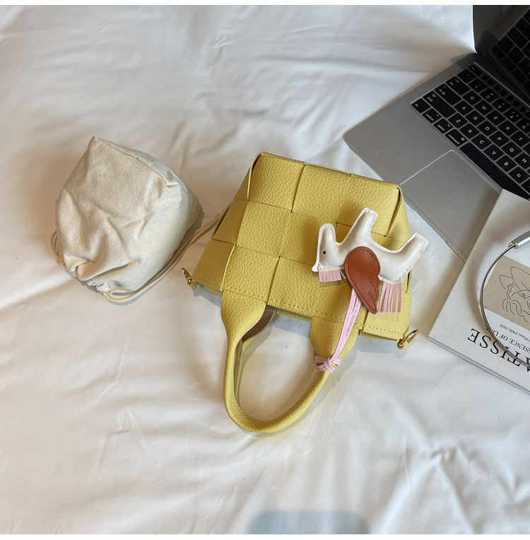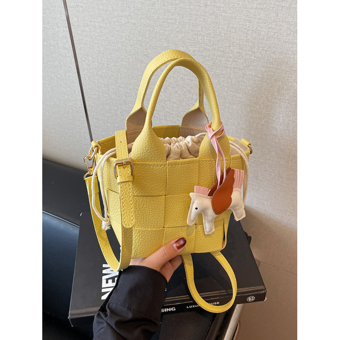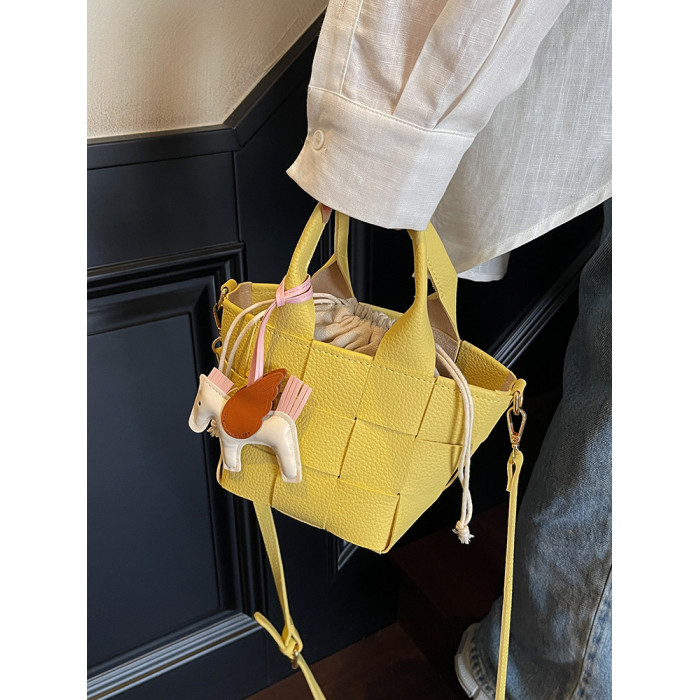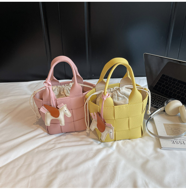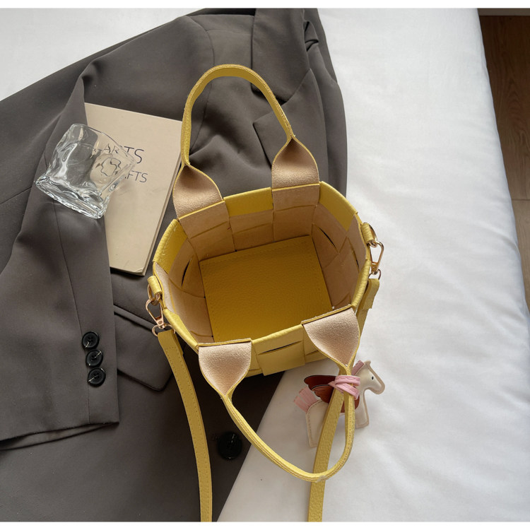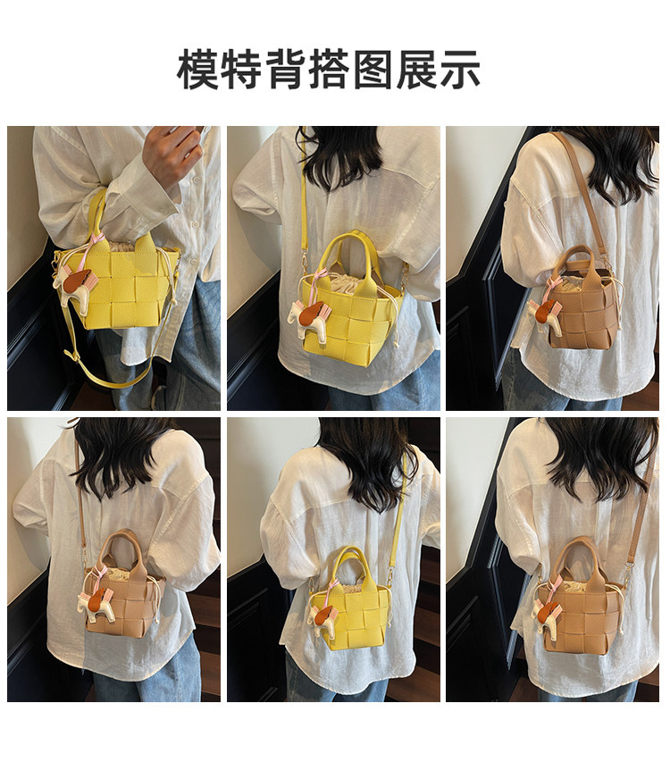 包包女式2025新款夏天超火黃色編織水桶包輕奢小衆高級感斜背女包
