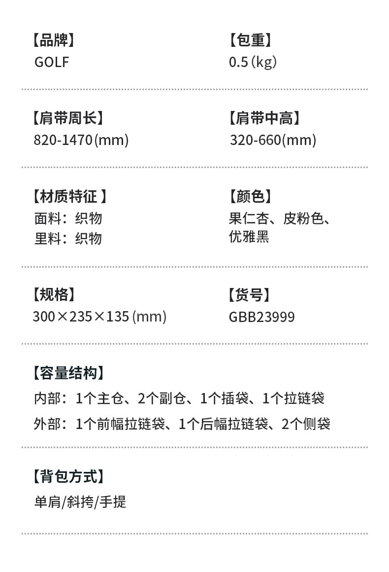 GOLF手提包女2026新款時尚帆布包大容量中年媽媽包手挽包斜後後背包包