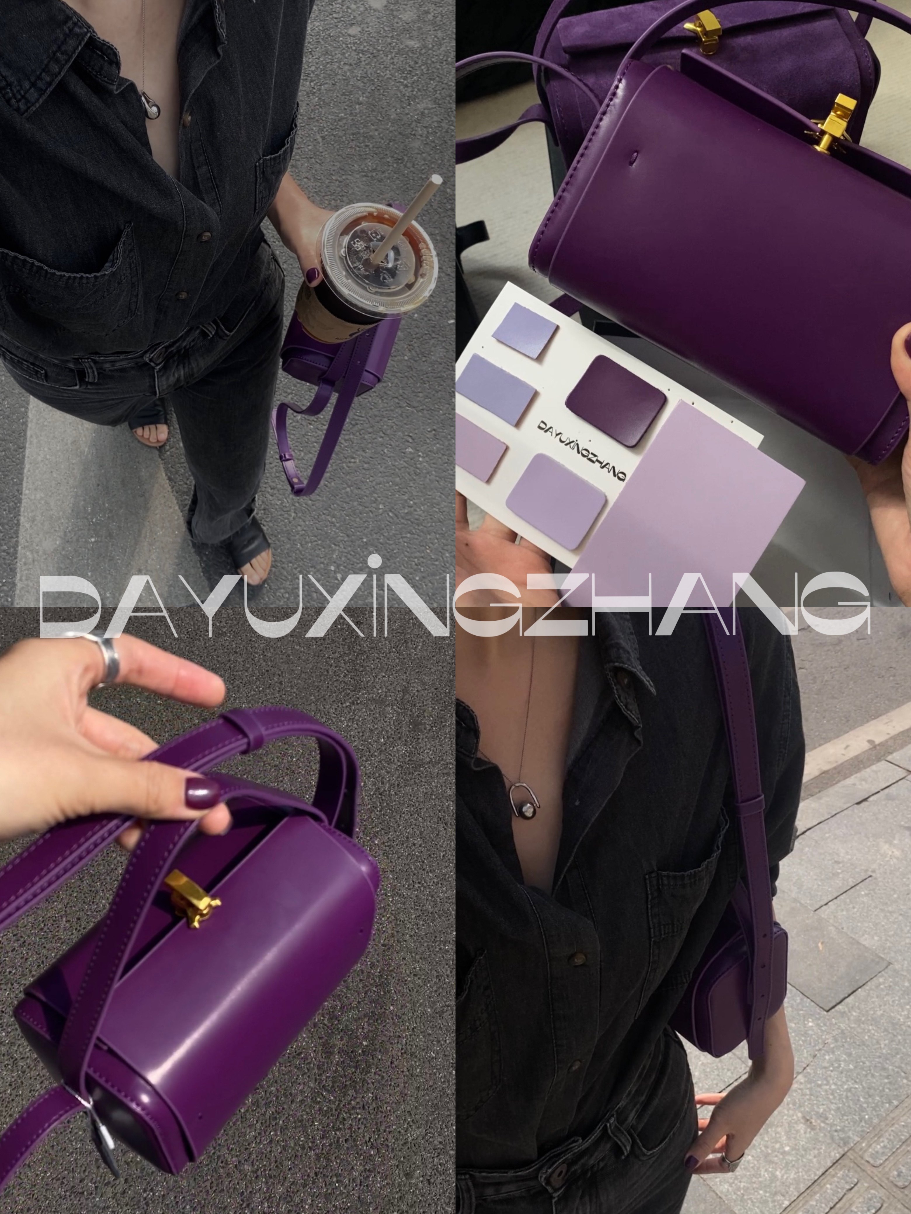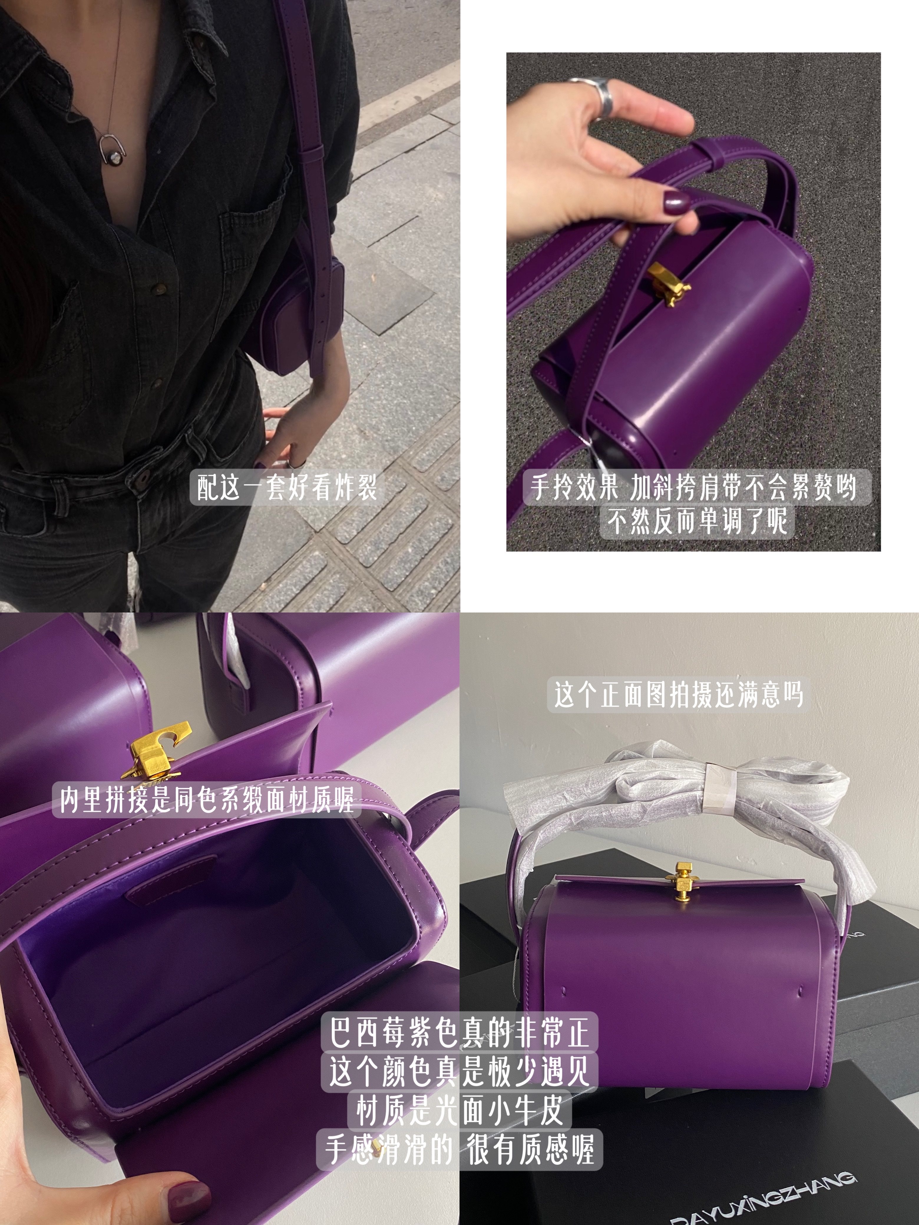 大宇姓張 自製巴西莓紫色波士頓小方盒子包包