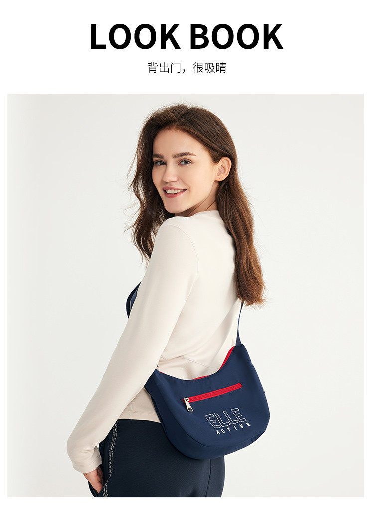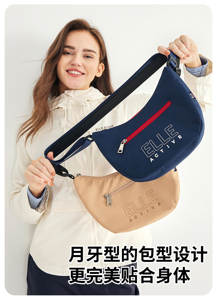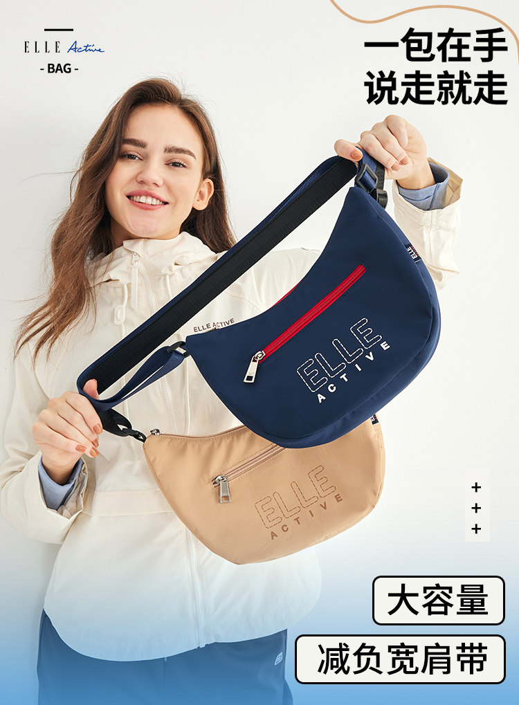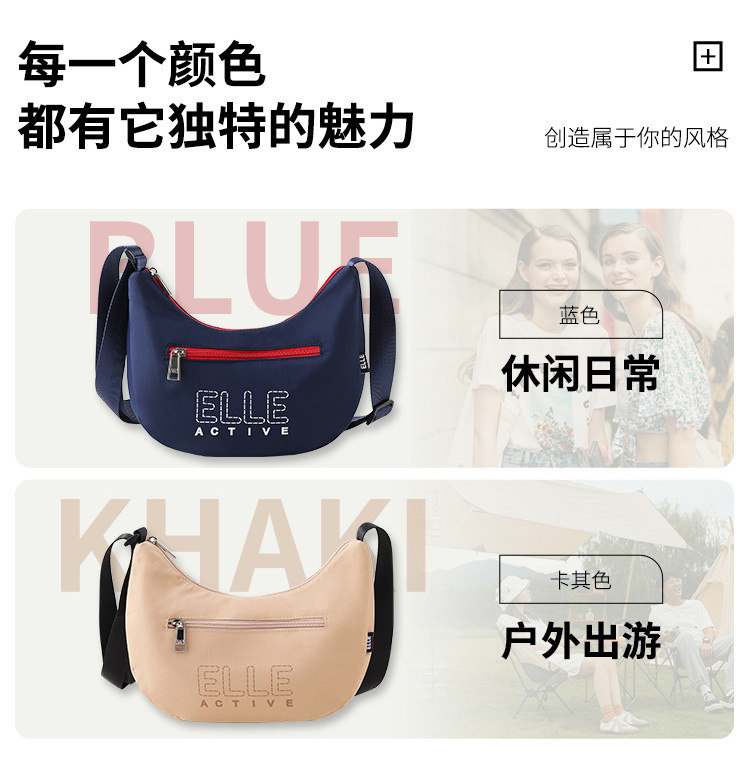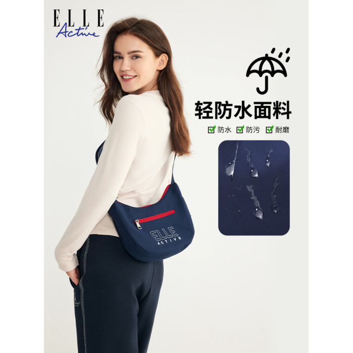 ELLE Active新款女包戶外輕便字母單肩包拼色字母印花拉鍊斜後後背包