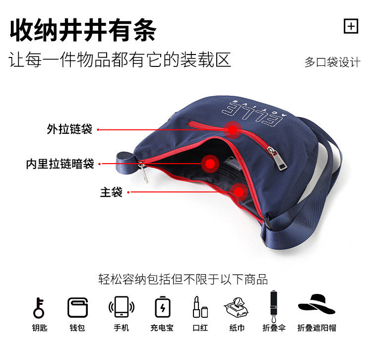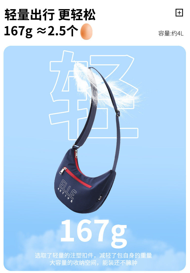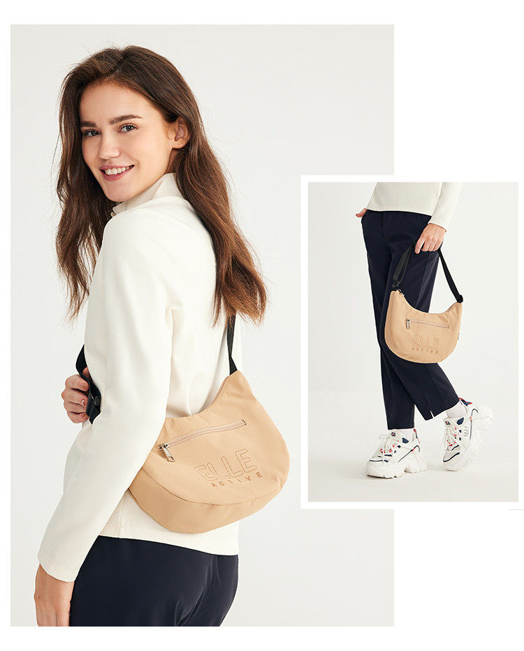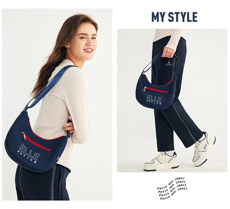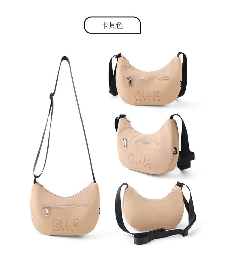 ELLE Active新款女包戶外輕便字母單肩包拼色字母印花拉鍊斜後後背包
