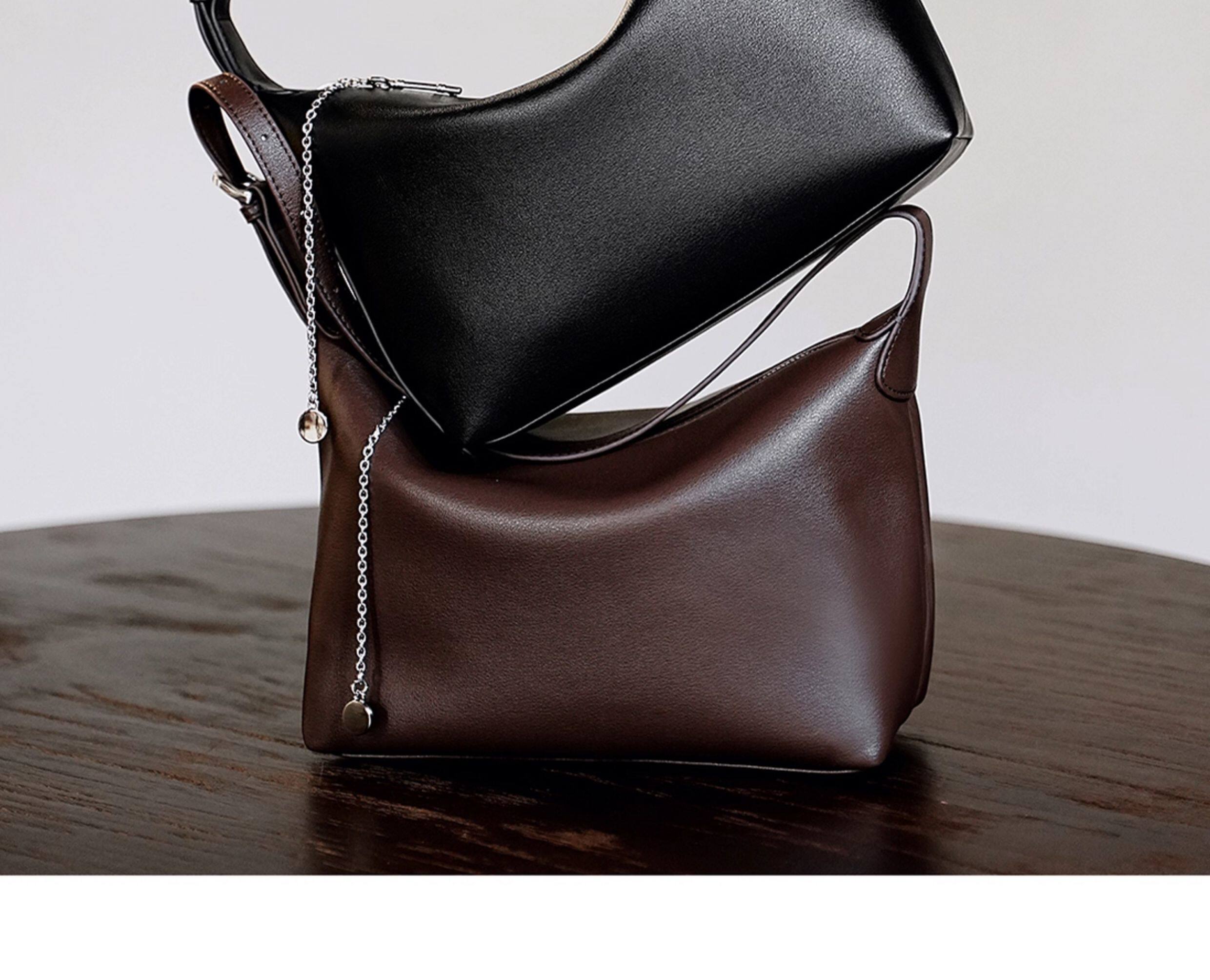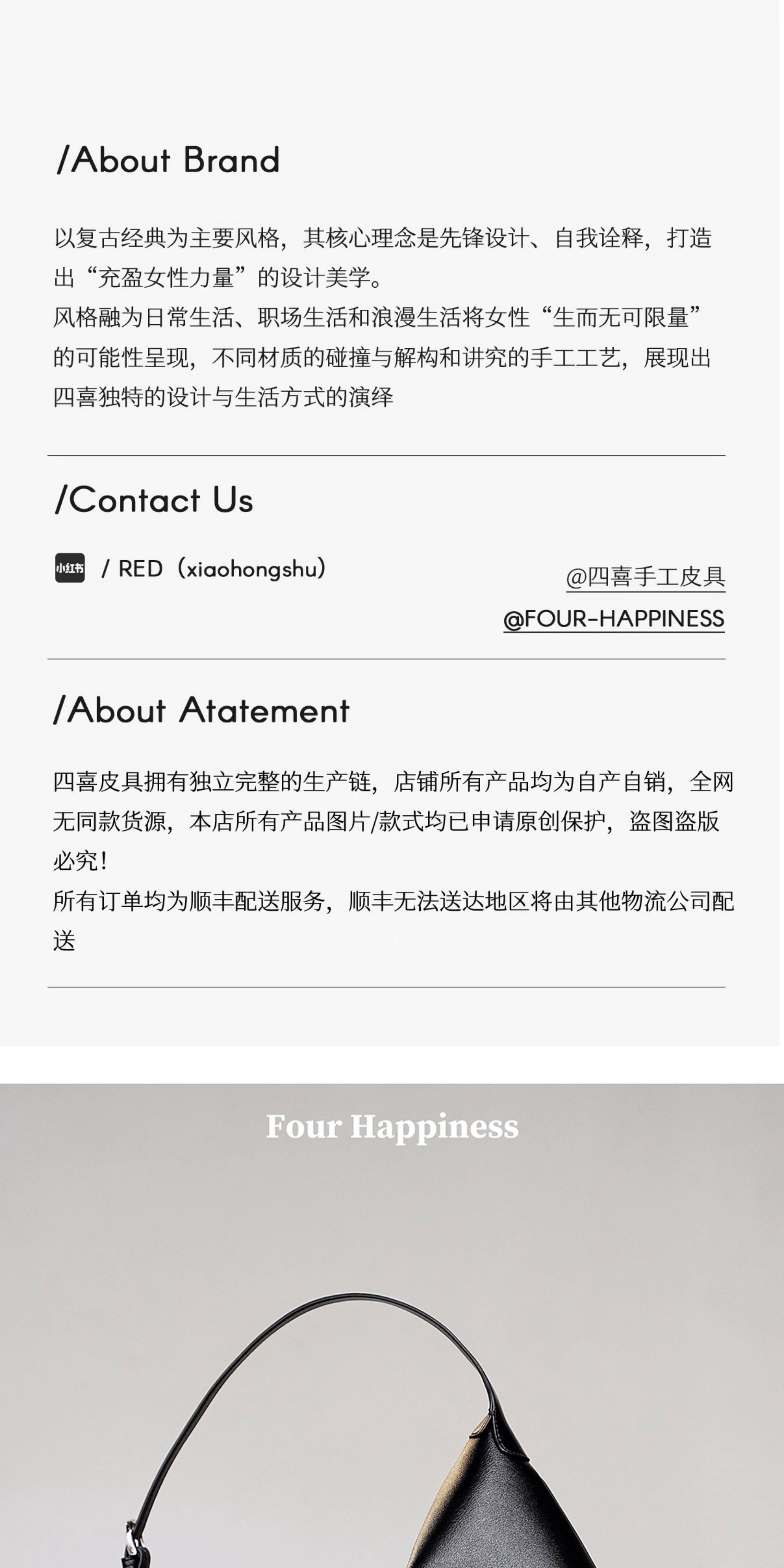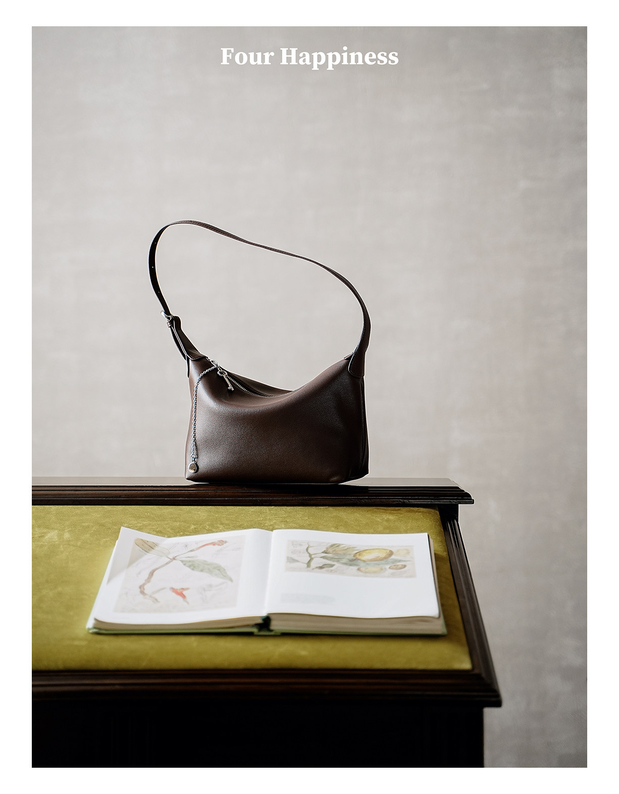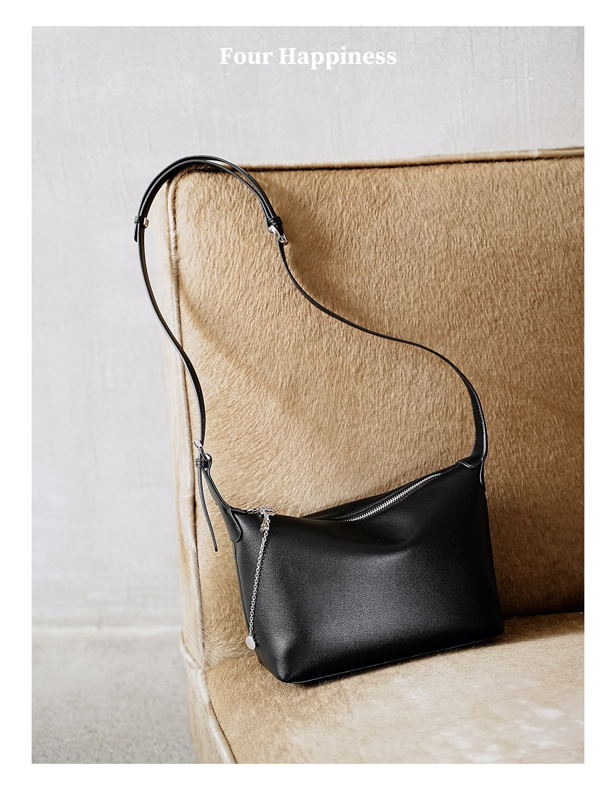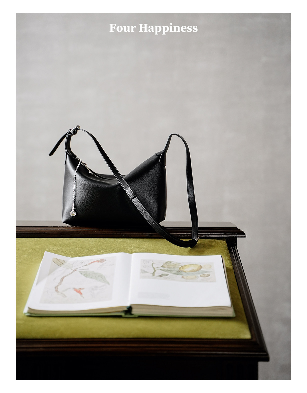 四喜手工·【Hello四喜】小牛皮經典hobo包單肩通勤斜後後背包女式H58
