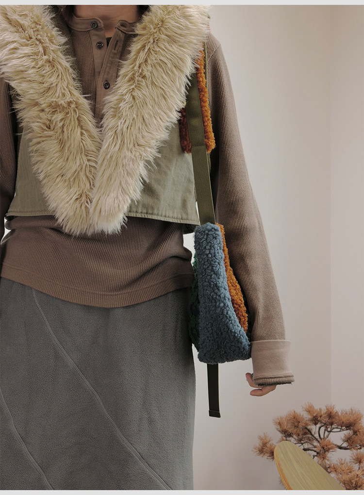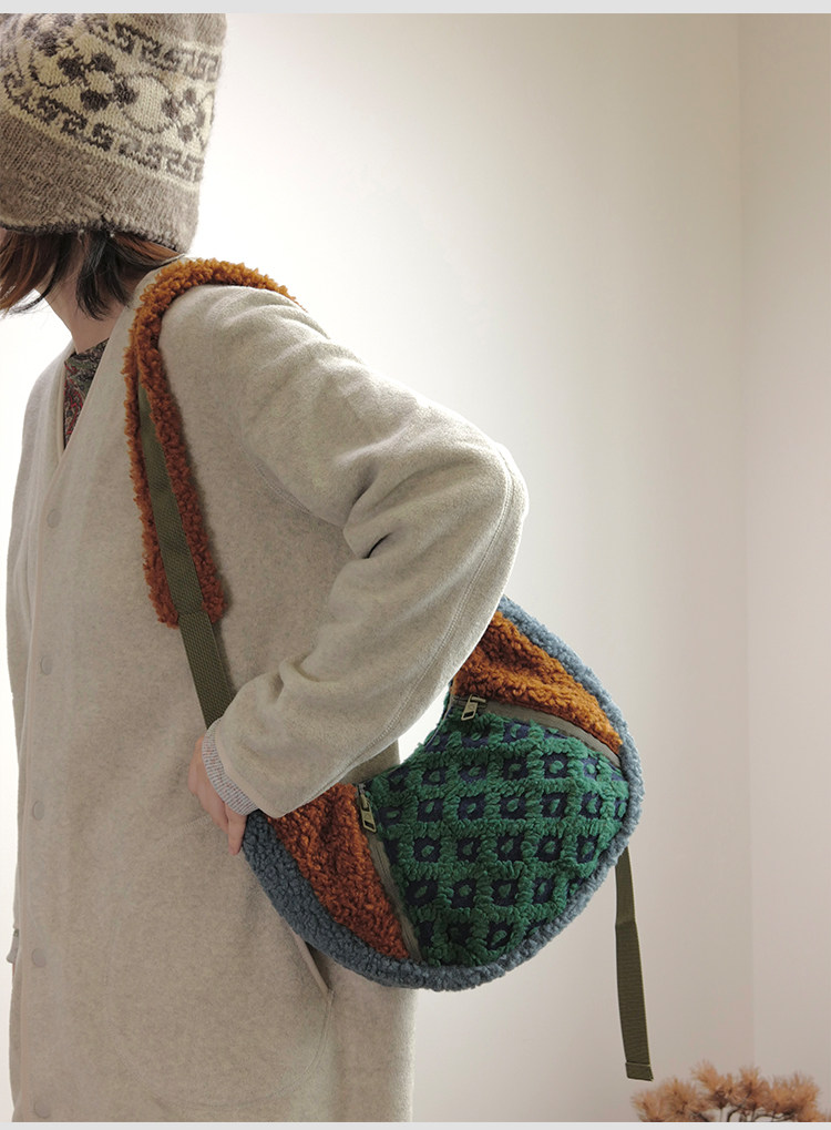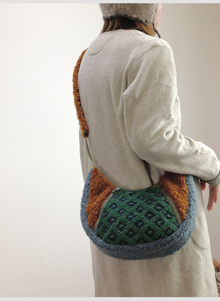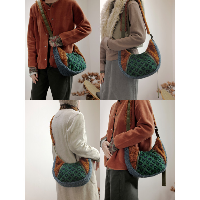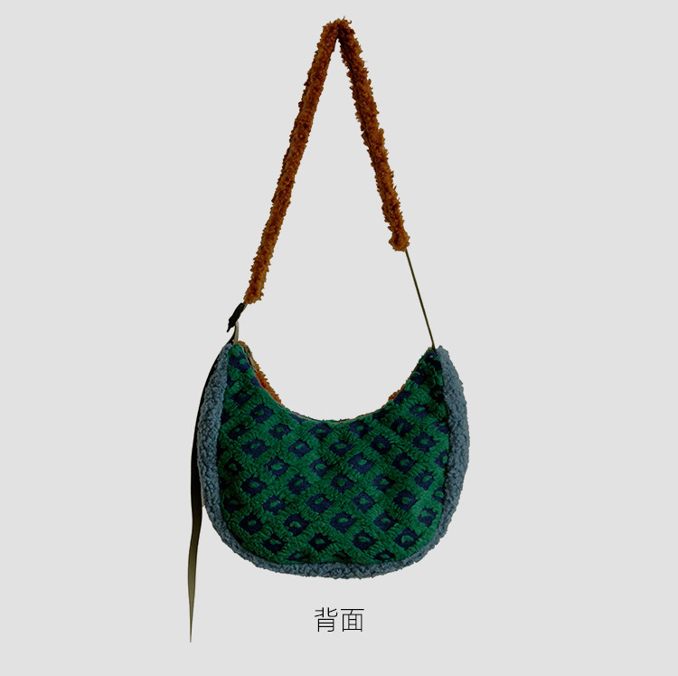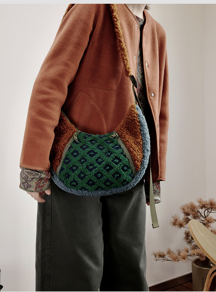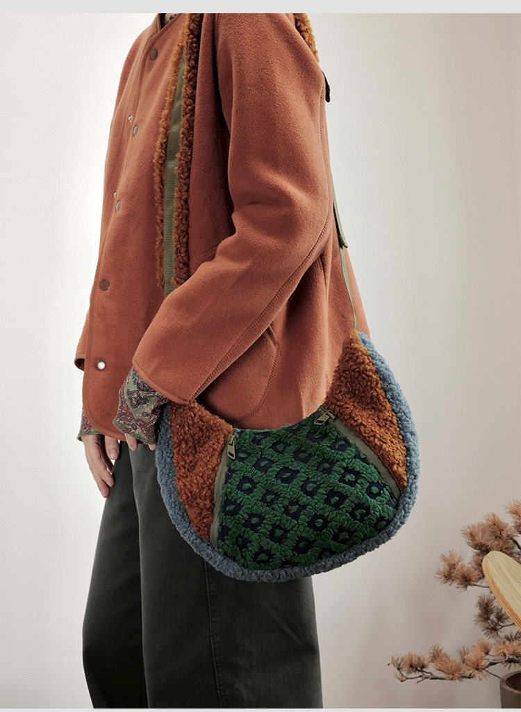 housedesign原創2025冬季撞色拼接毛絨月牙包小衆個性單肩斜後後背包