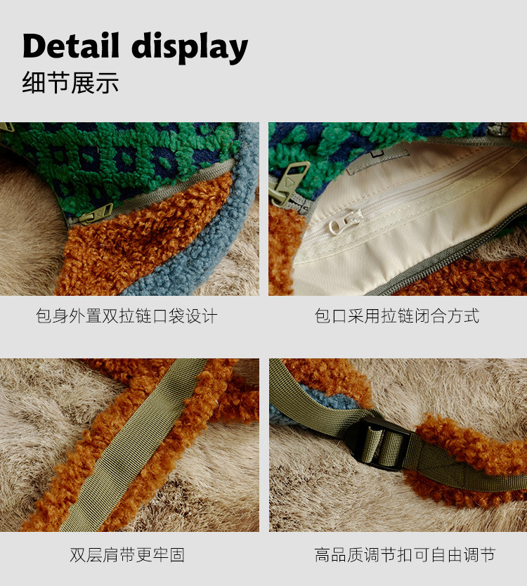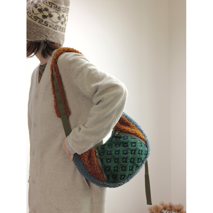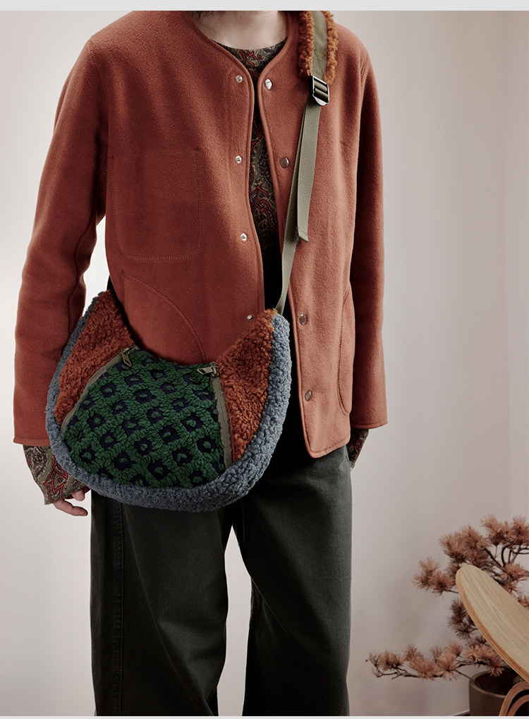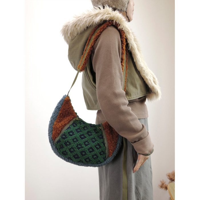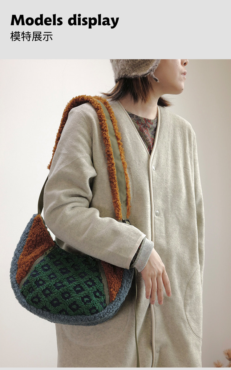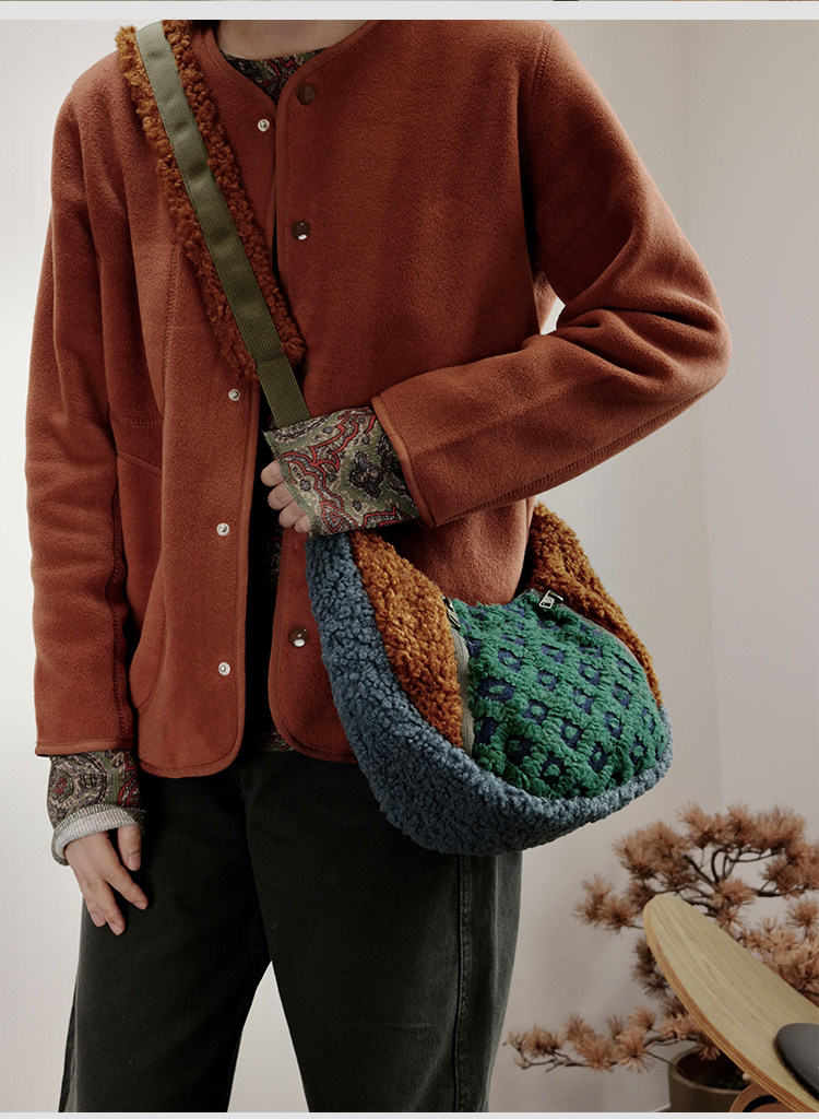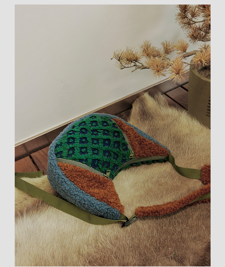 housedesign原創2025冬季撞色拼接毛絨月牙包小衆個性單肩斜後後背包