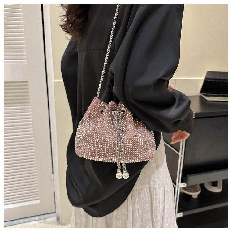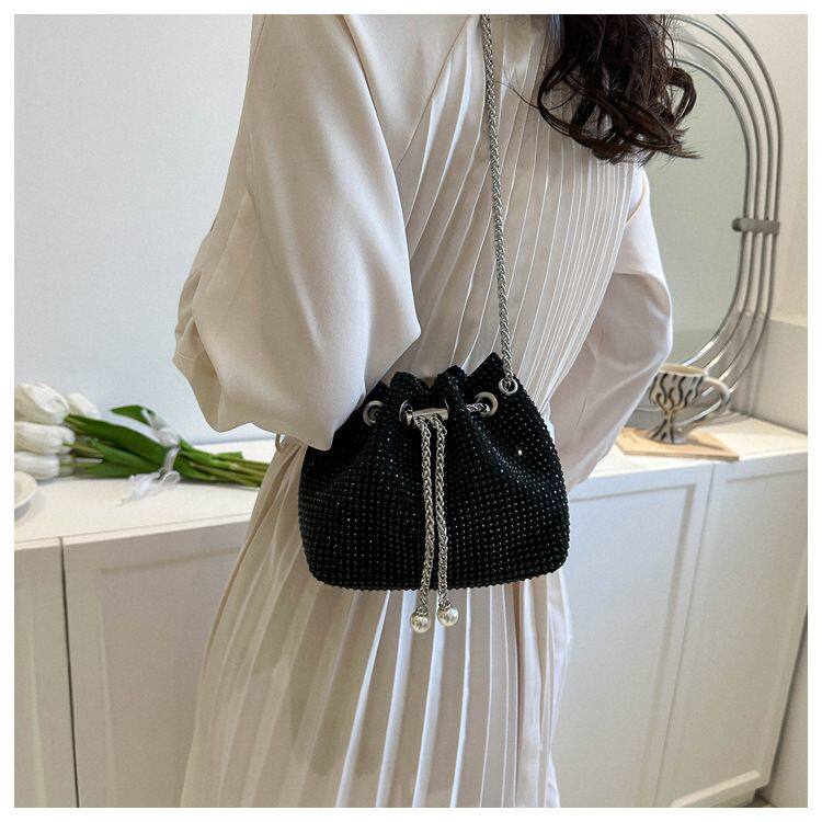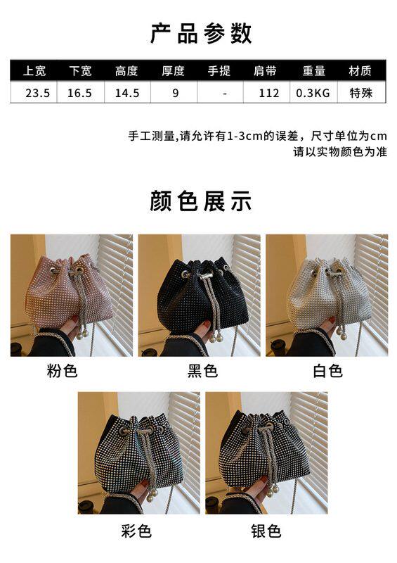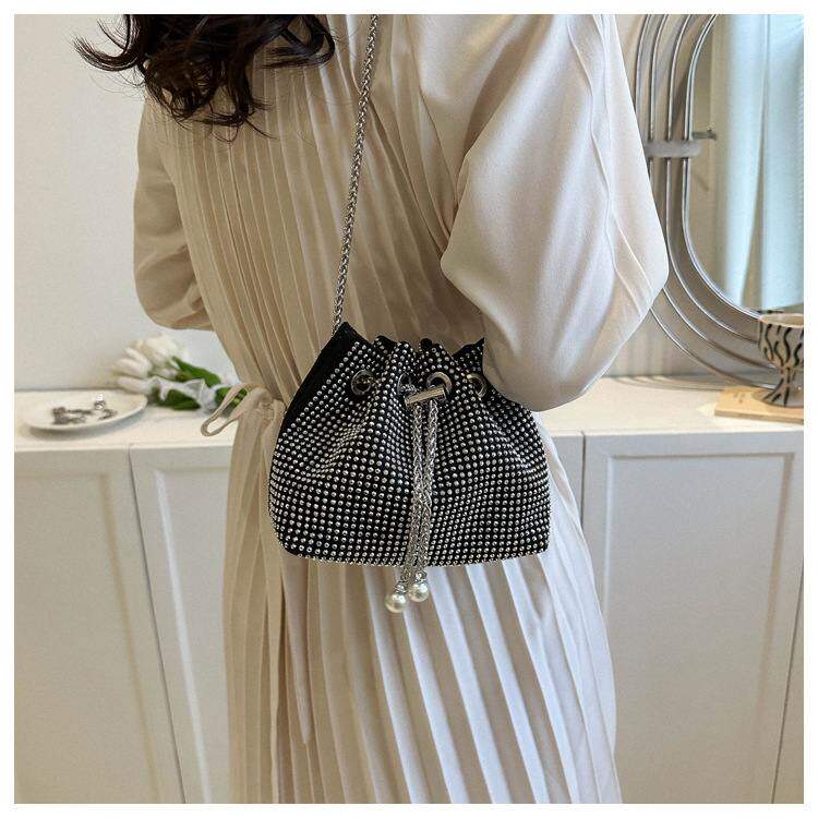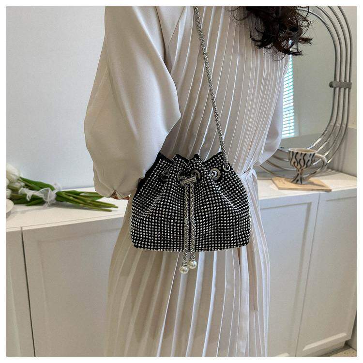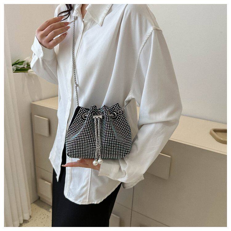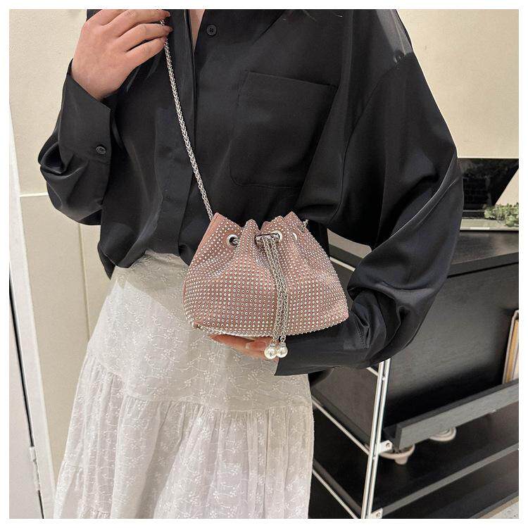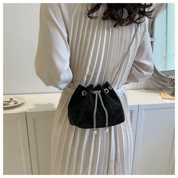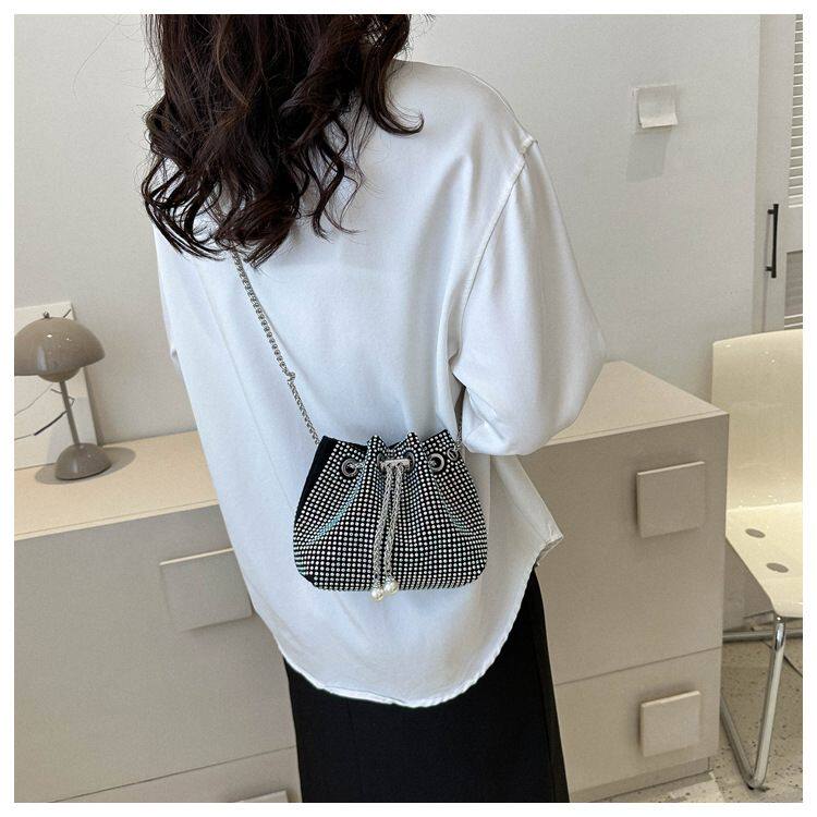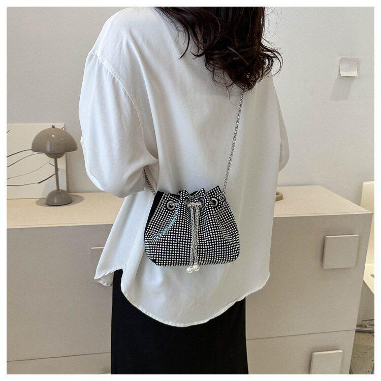 新品 時尚潮流小包包女2023春季新款韓版亮鑽斜後後背包ins網紅鏈條水