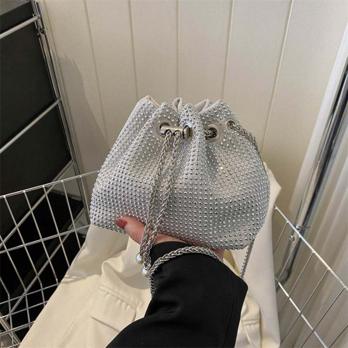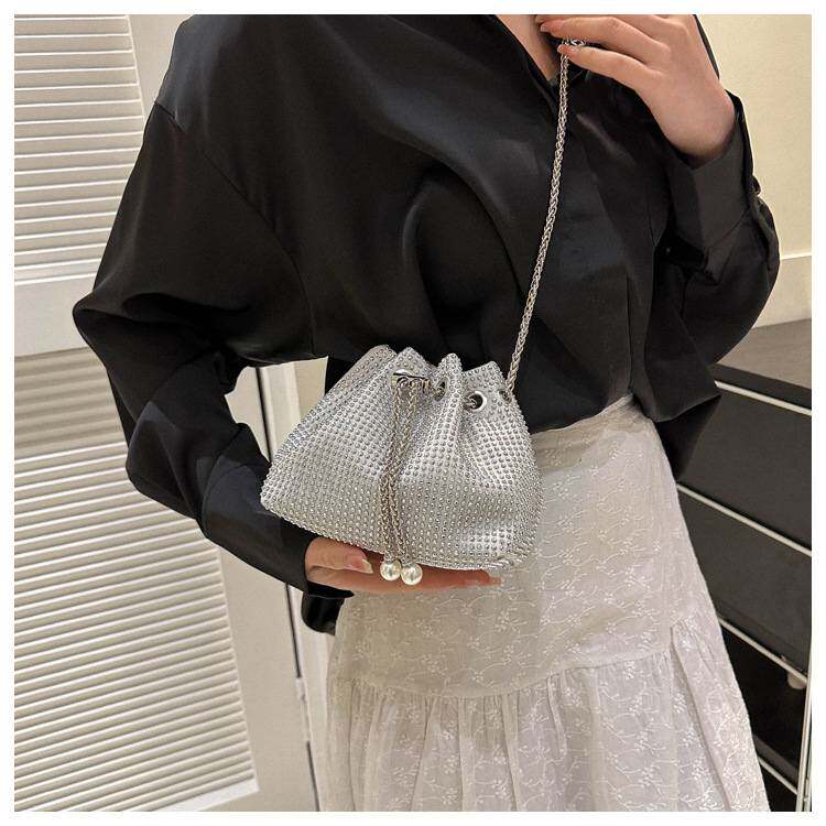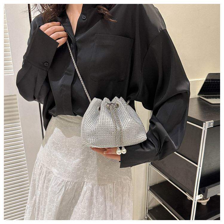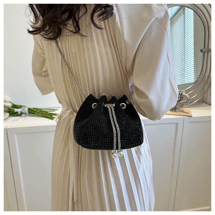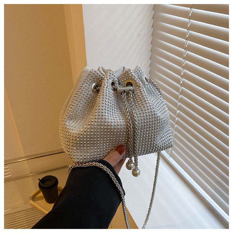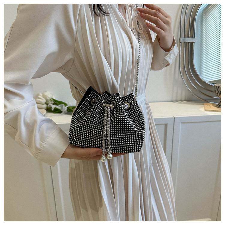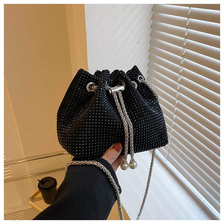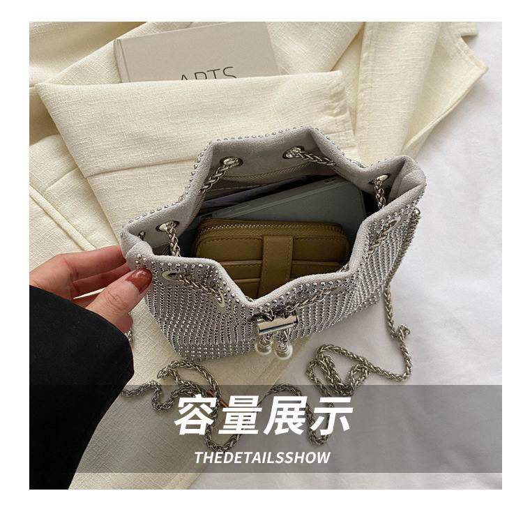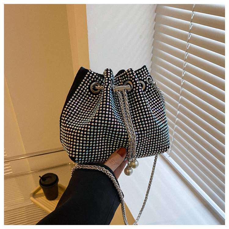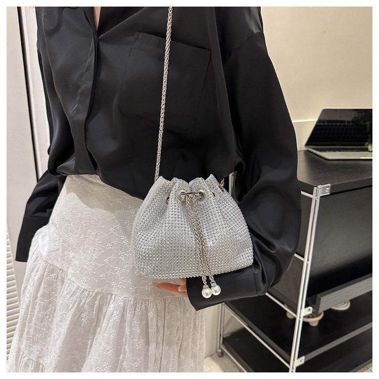 新品 時尚潮流小包包女2023春季新款韓版亮鑽斜後後背包ins網紅鏈條水