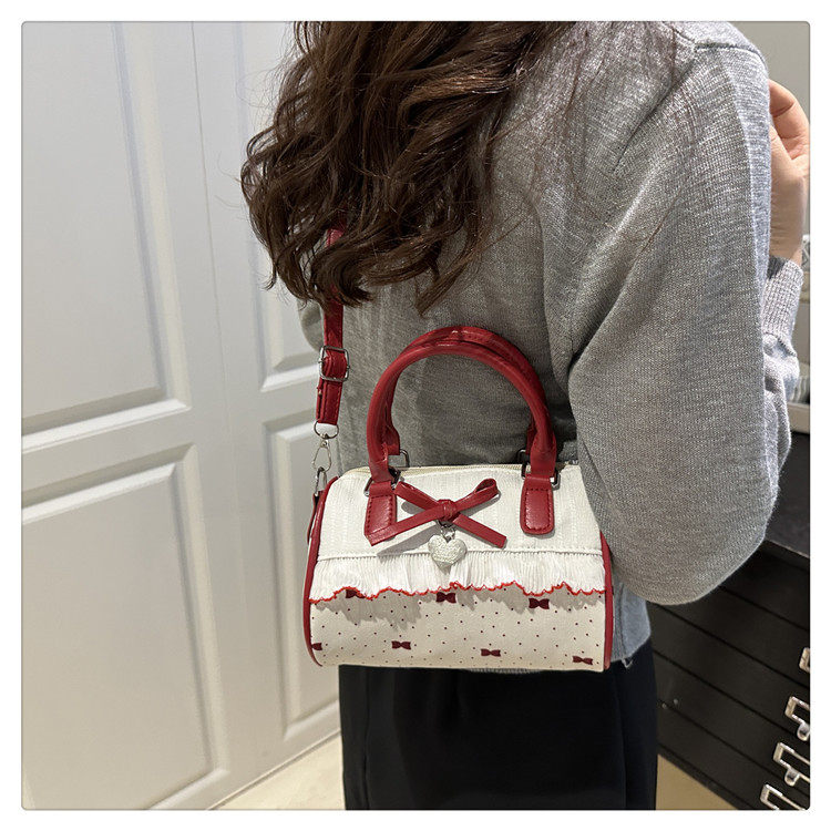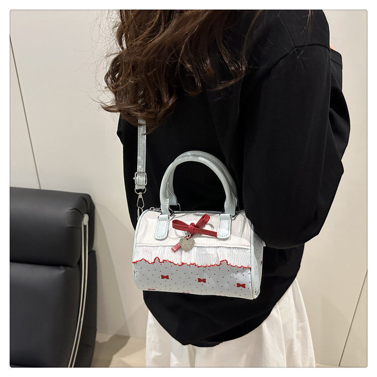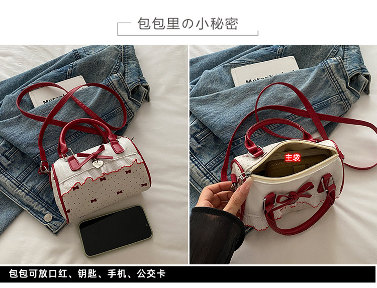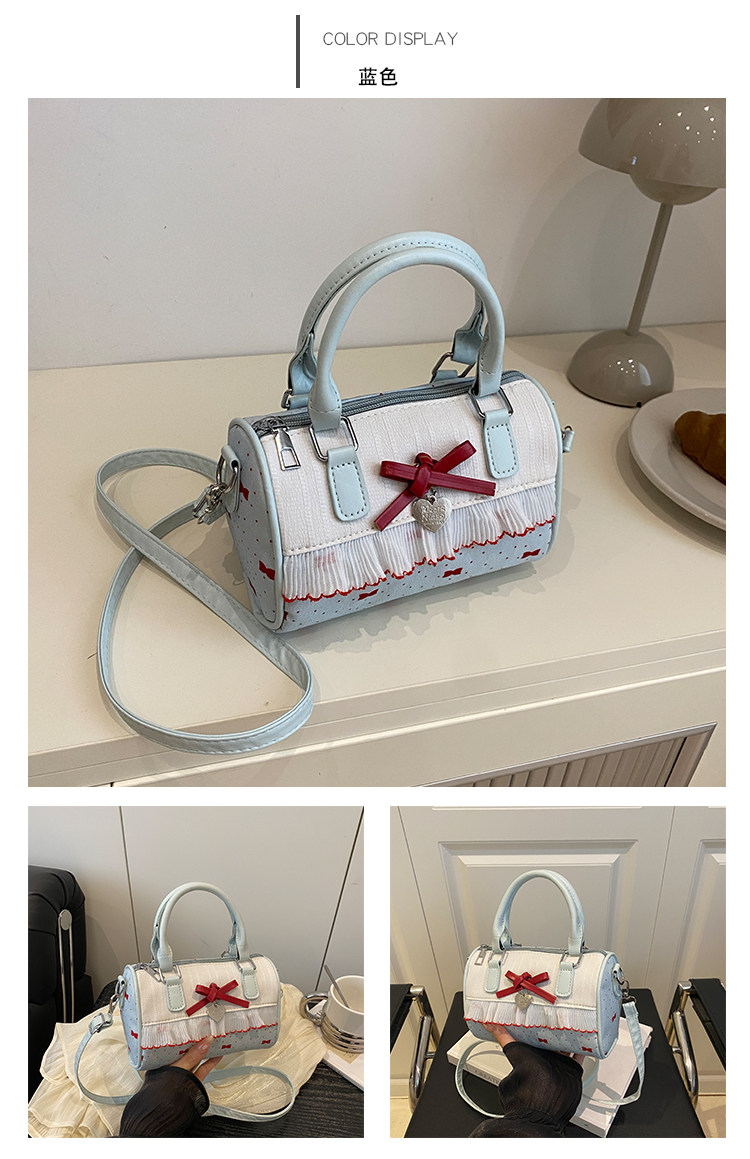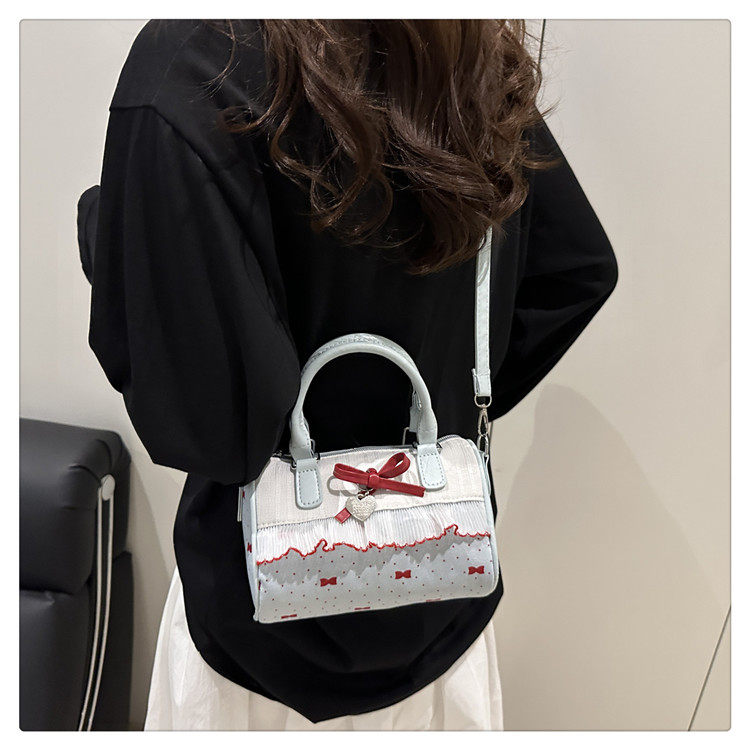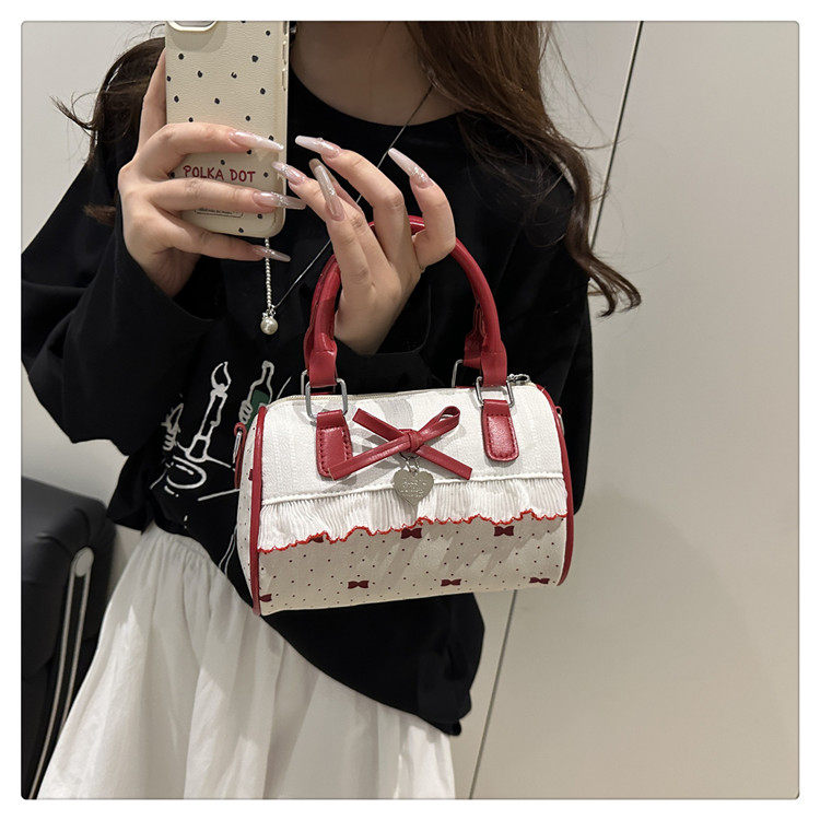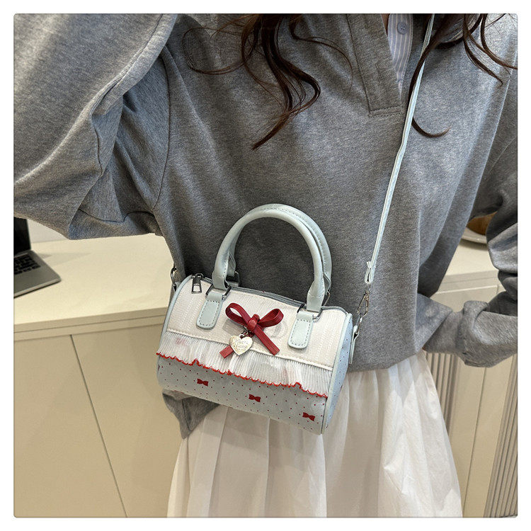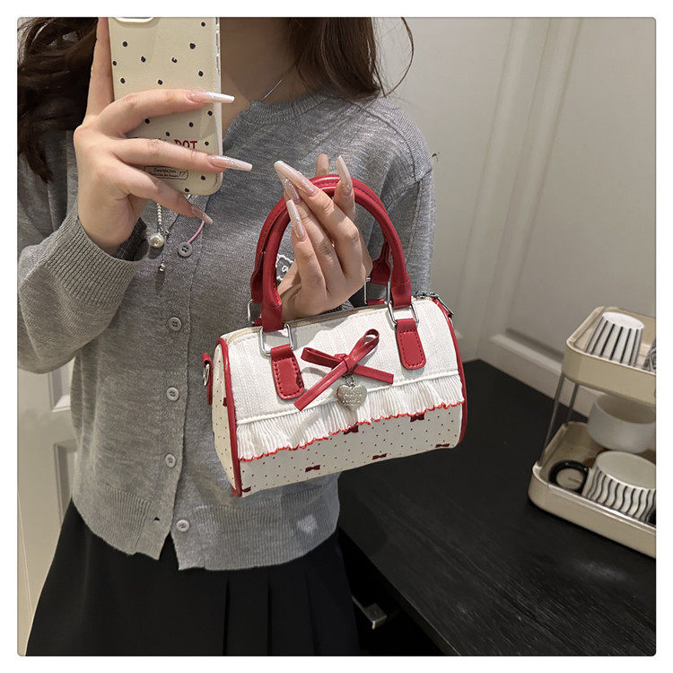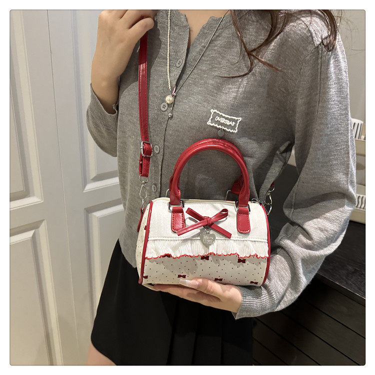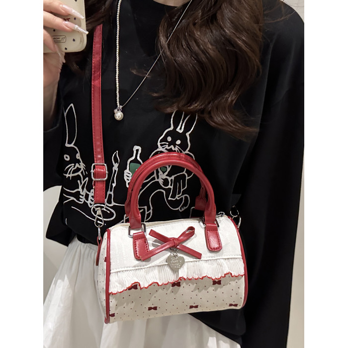 甜美蝴蝶結手提小包包女2025新款時尚蕾絲邊枕頭包夏季帆布斜後後背包