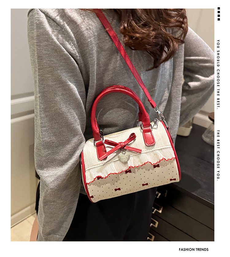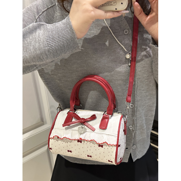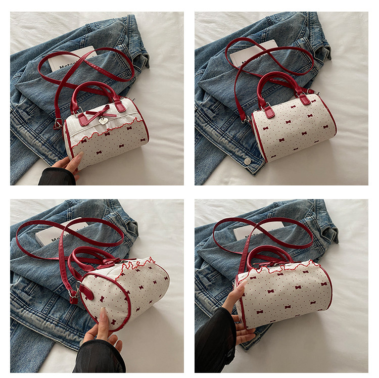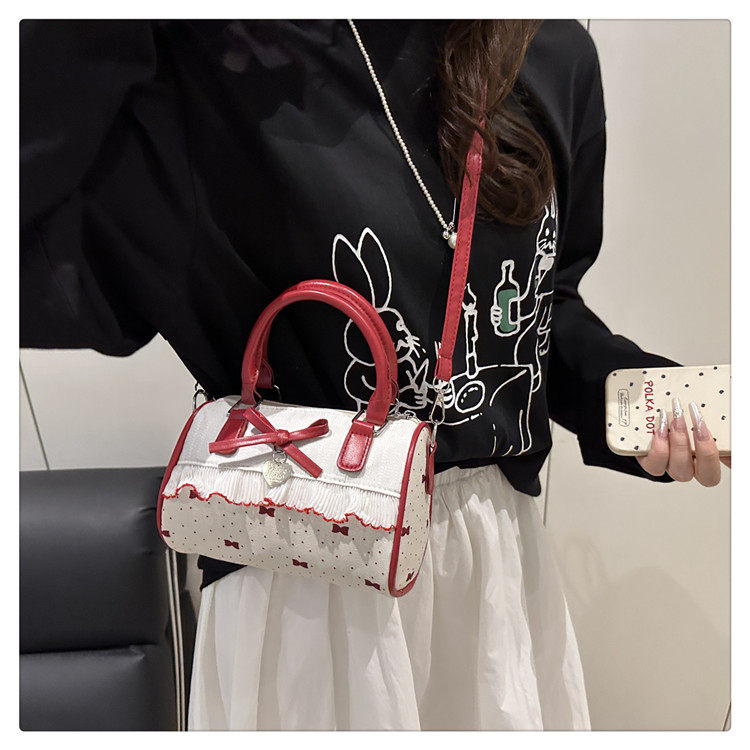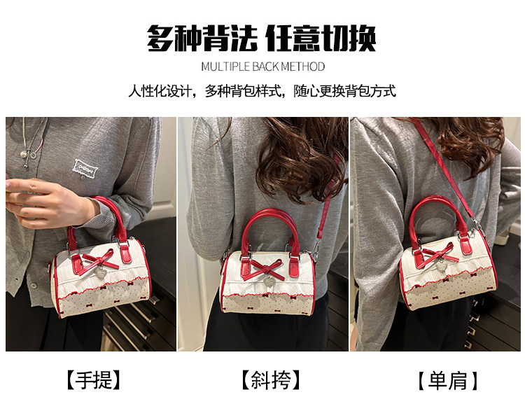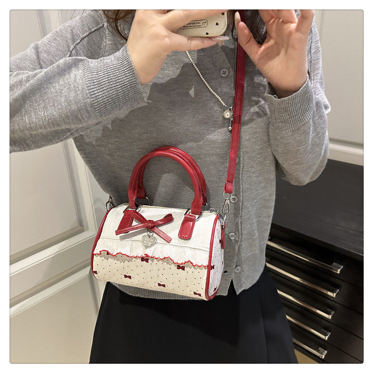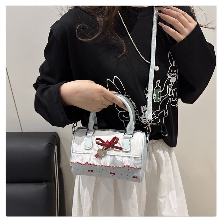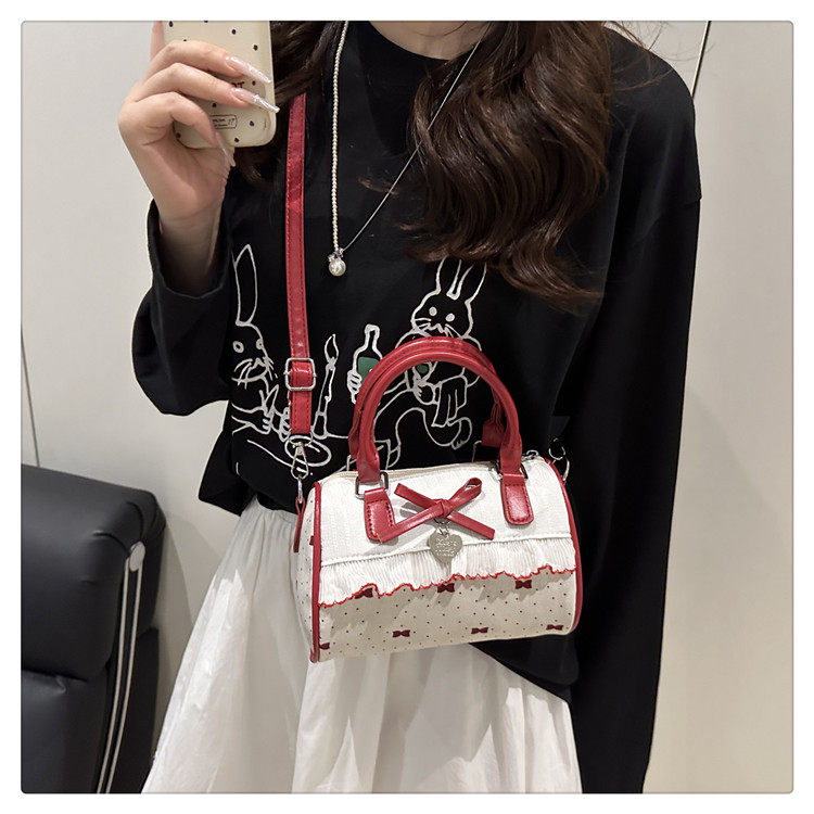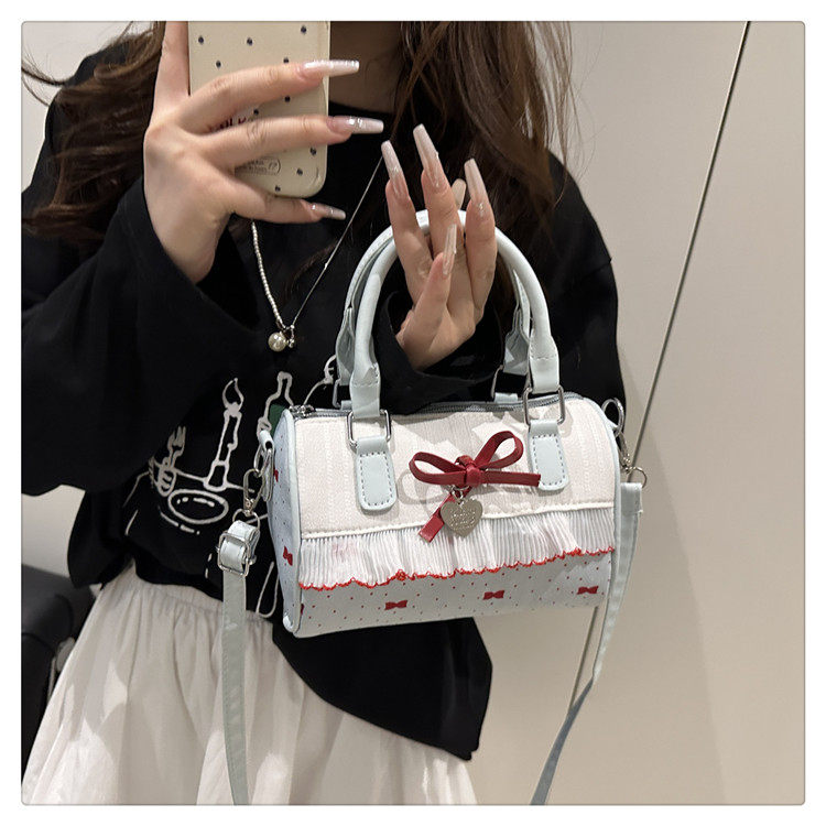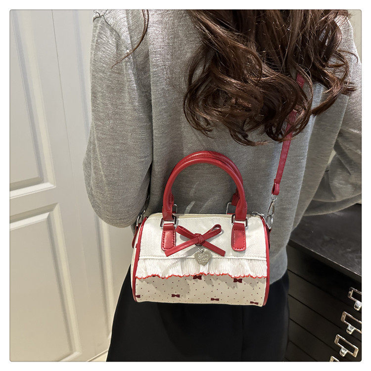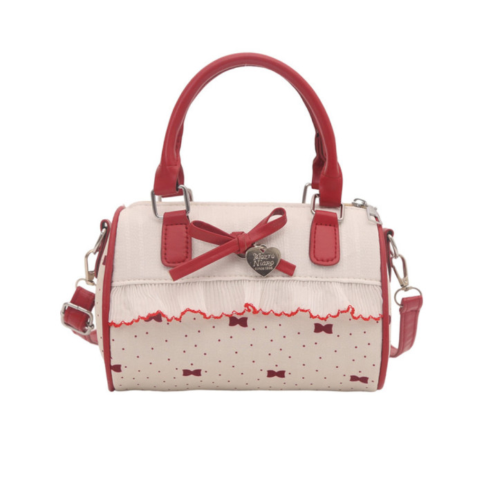 甜美蝴蝶結手提小包包女2025新款時尚蕾絲邊枕頭包夏季帆布斜後後背包