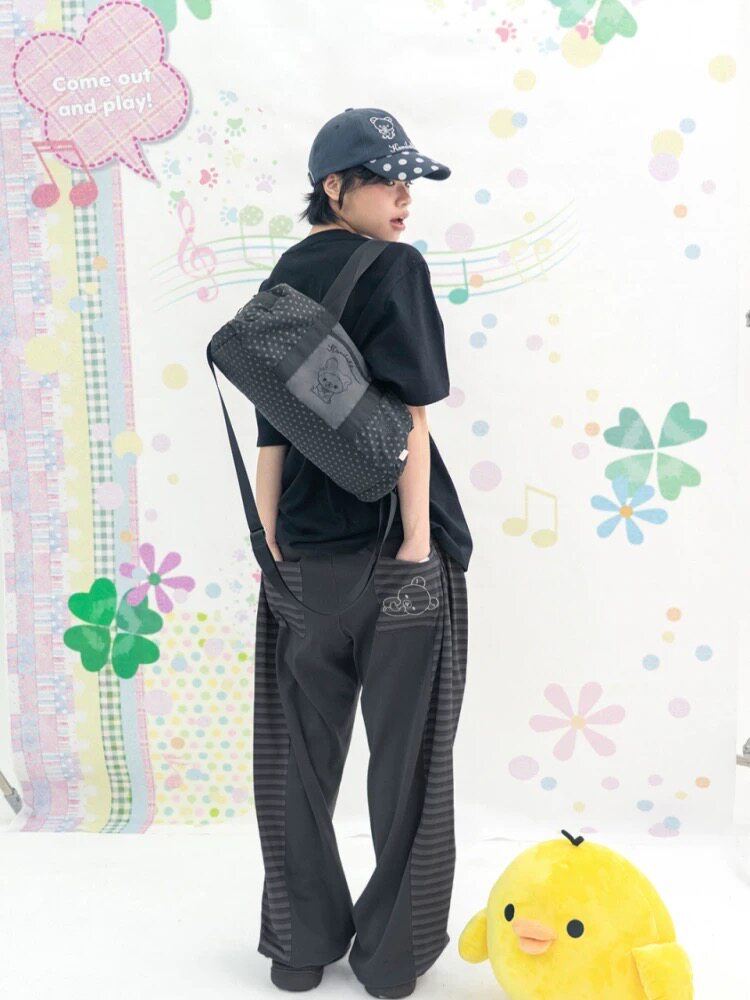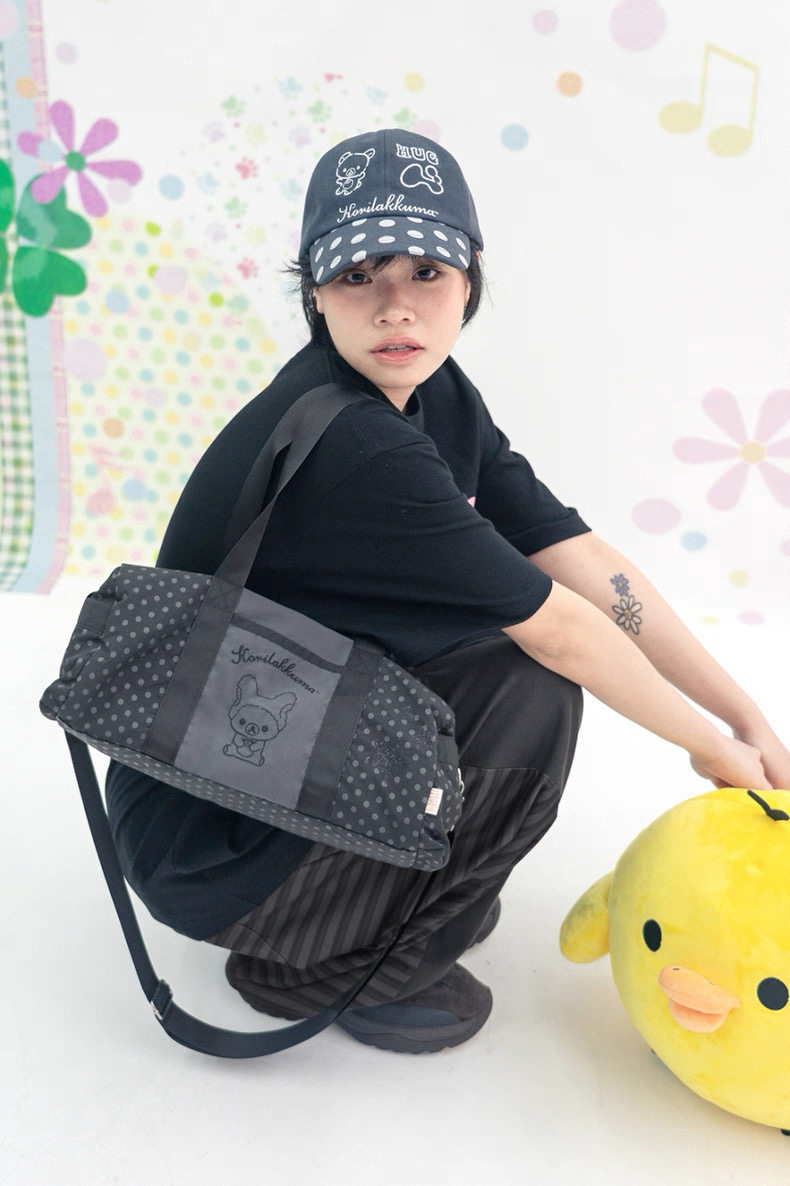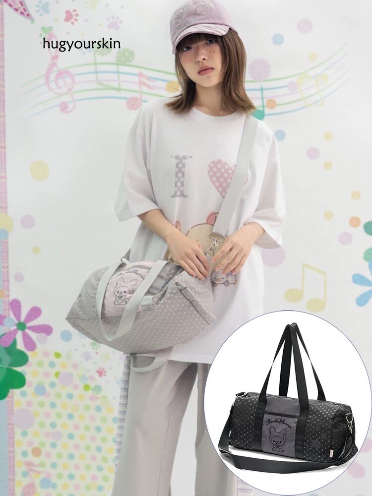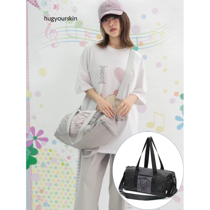 韓國小衆hugyourskin包刺綉熊波點聯名單肩斜後後背包HUGYOURSKIN包包