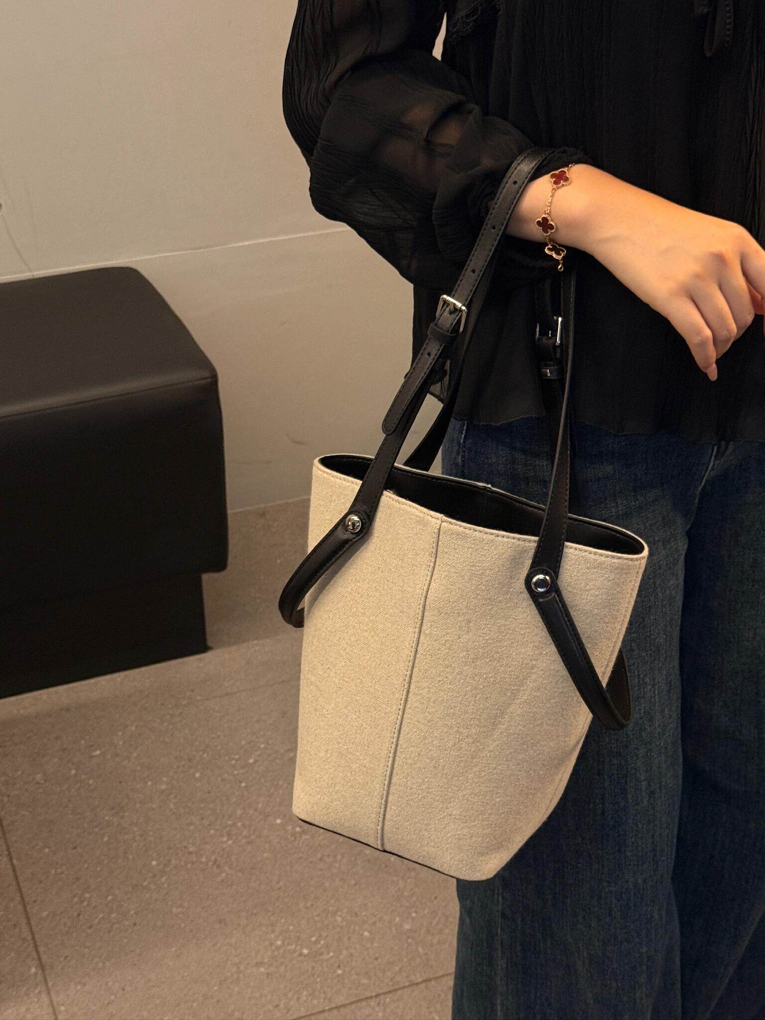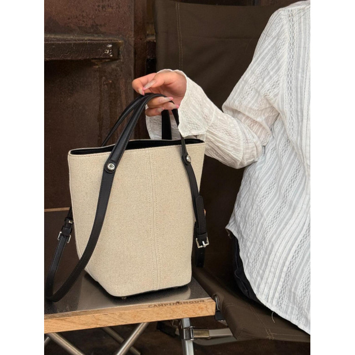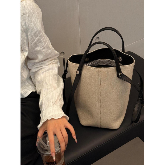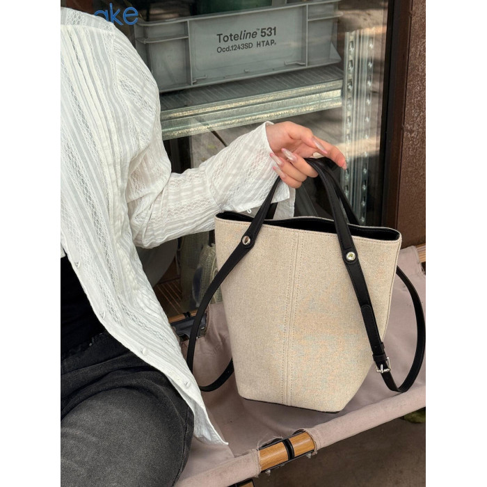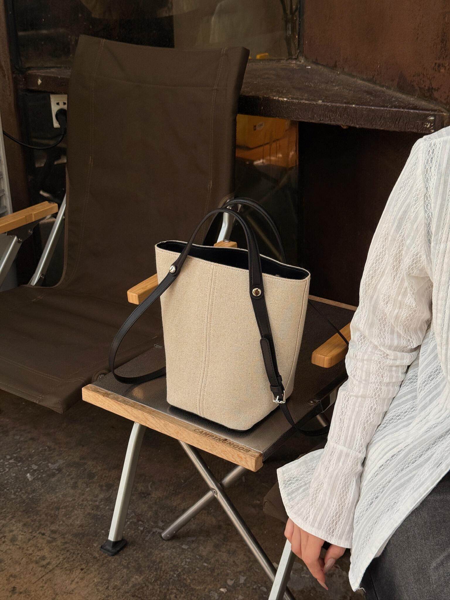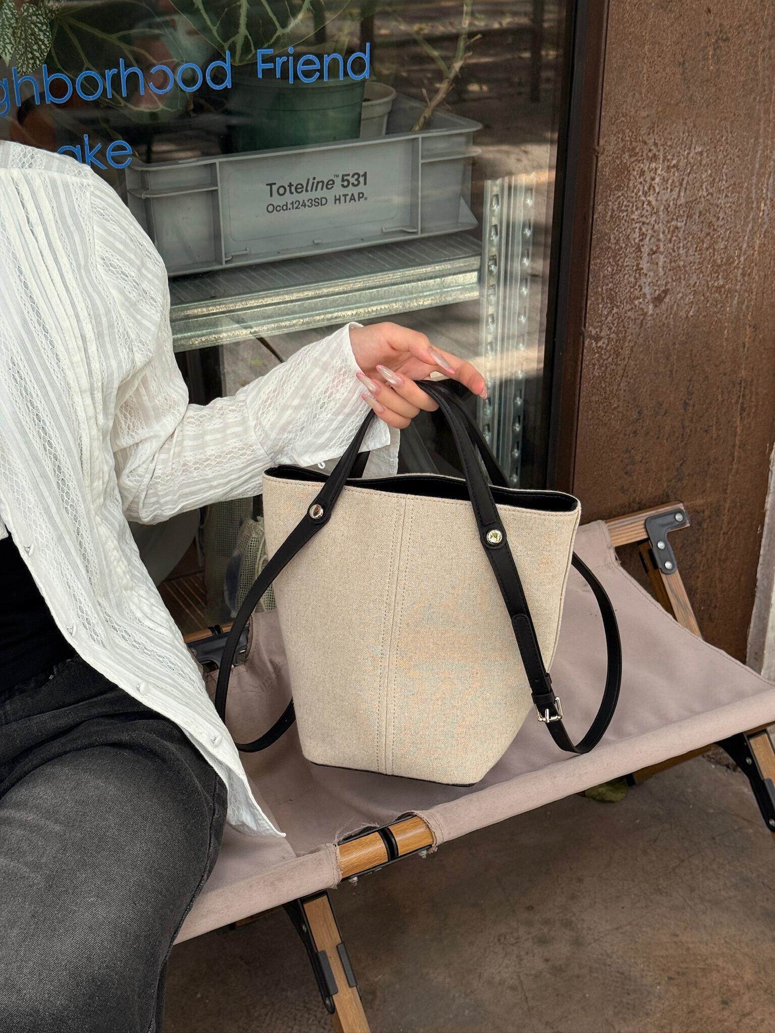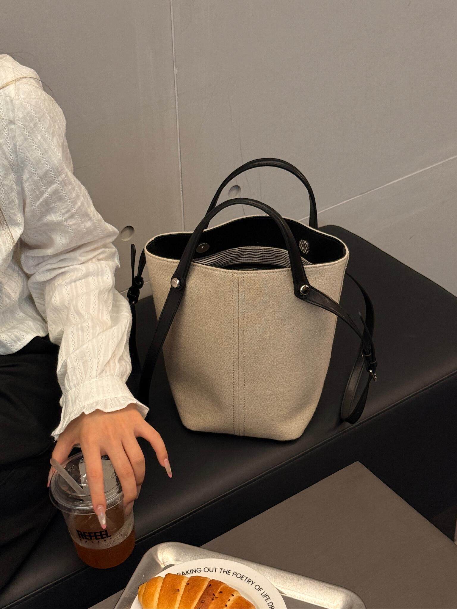 手提亞麻菜籃子包包女式2025新款上班通勤大容量單肩水桶包托特包