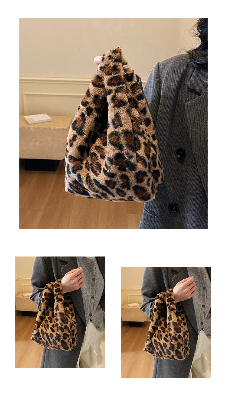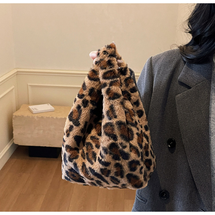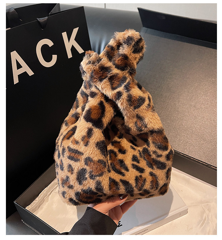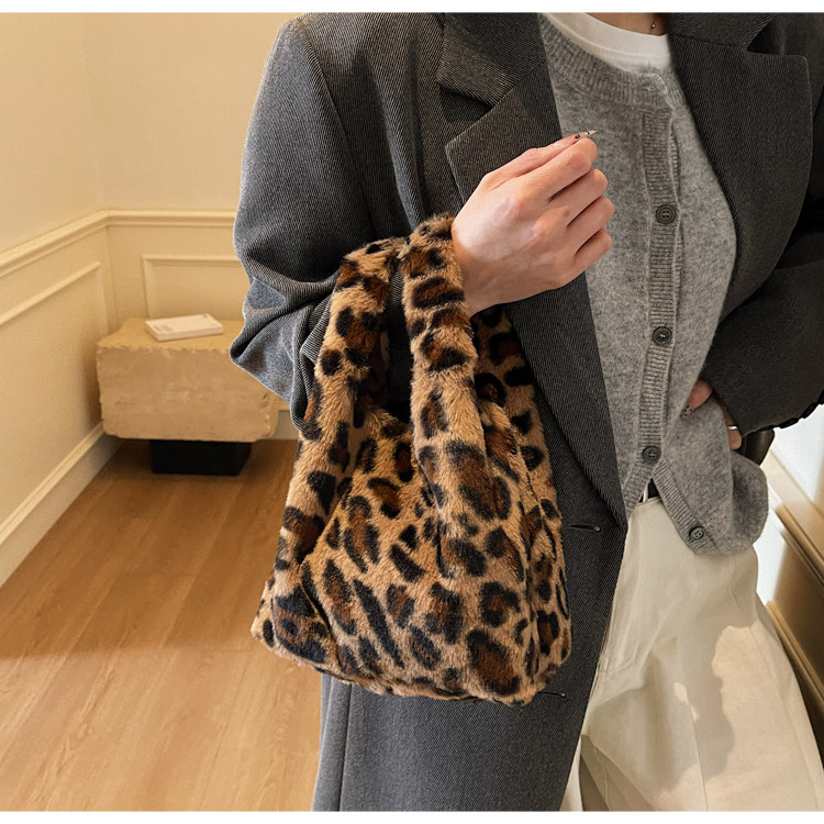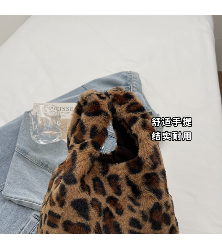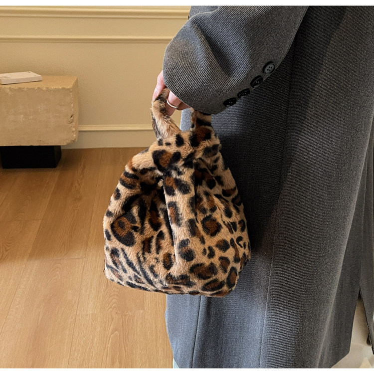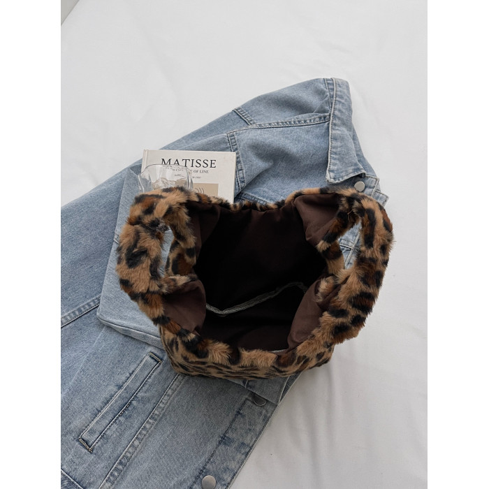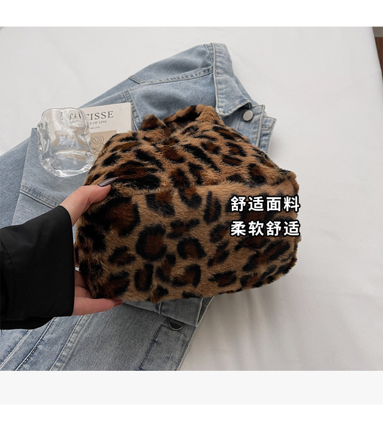 豹紋毛茸茸水桶包女時尚個性小衆日韓風手提包錢包口紅收納包秋冬