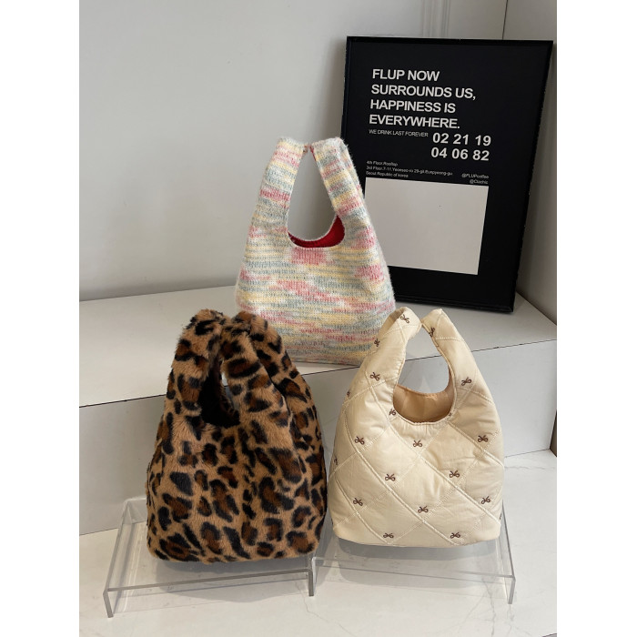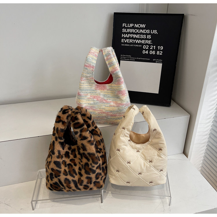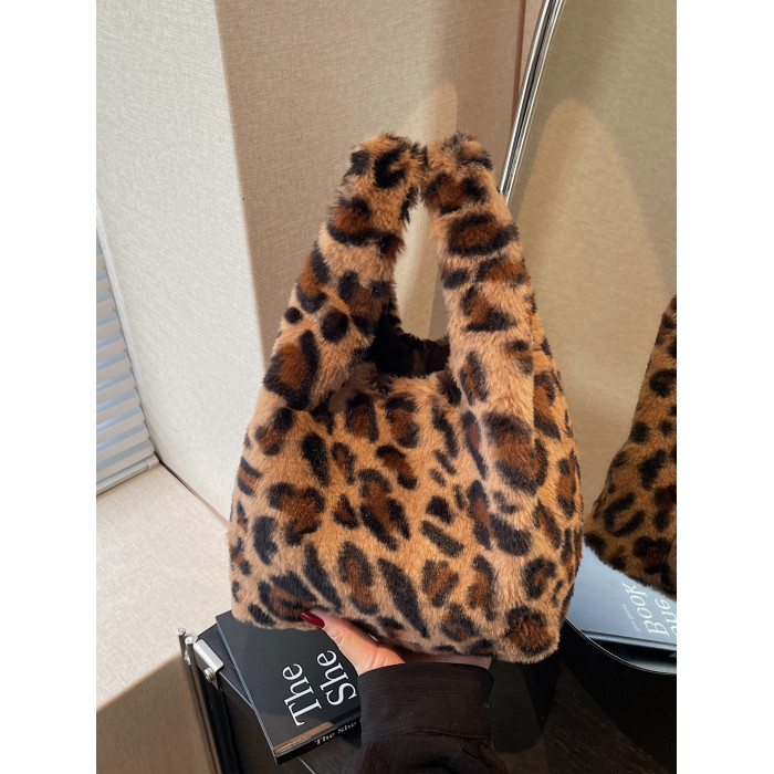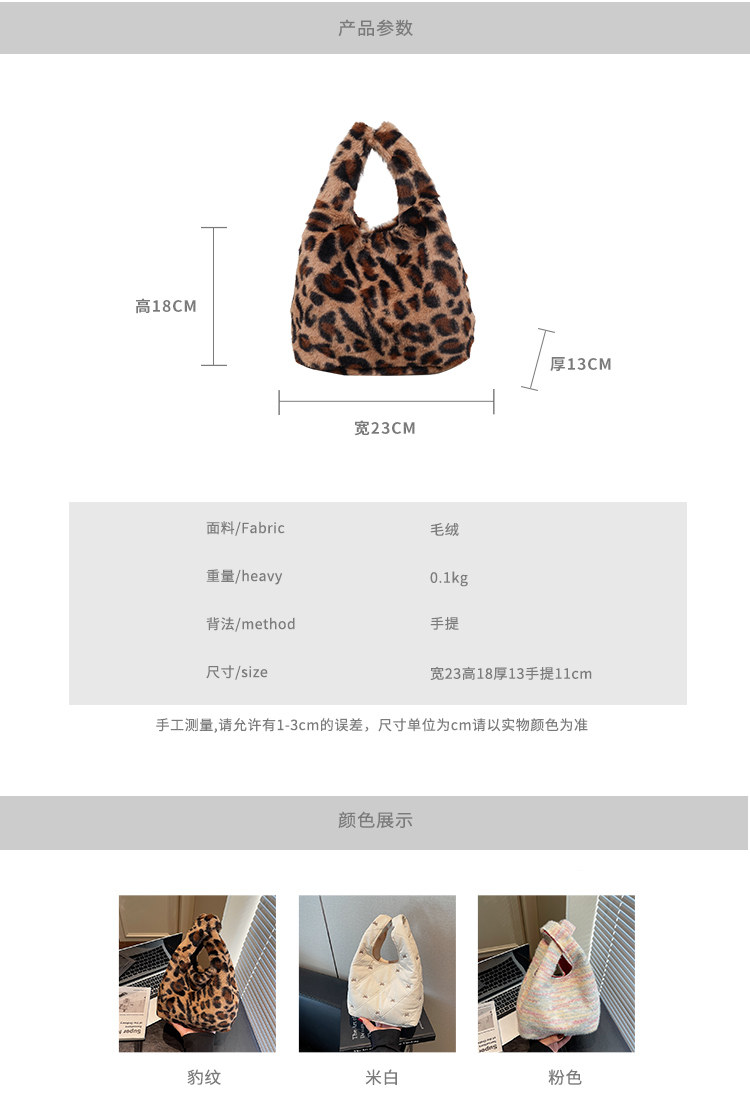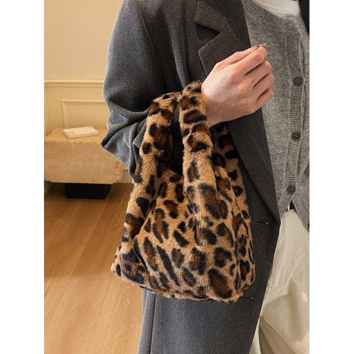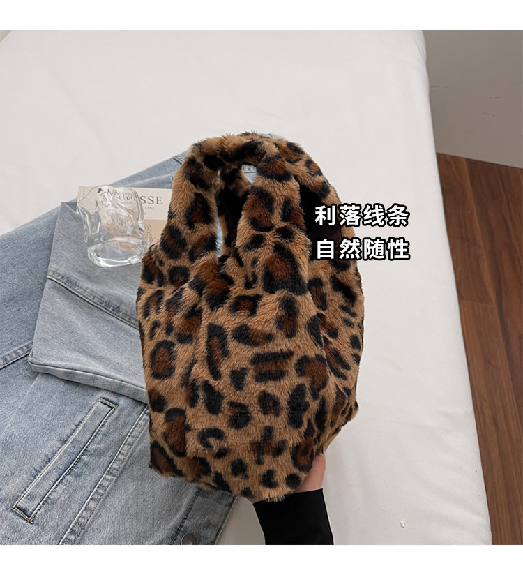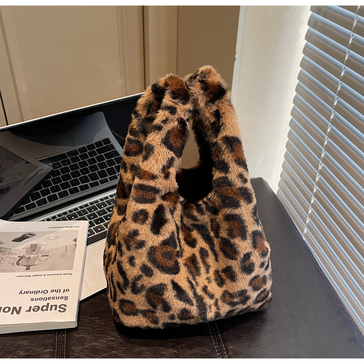 豹紋毛茸茸水桶包女時尚個性小衆日韓風手提包錢包口紅收納包秋冬