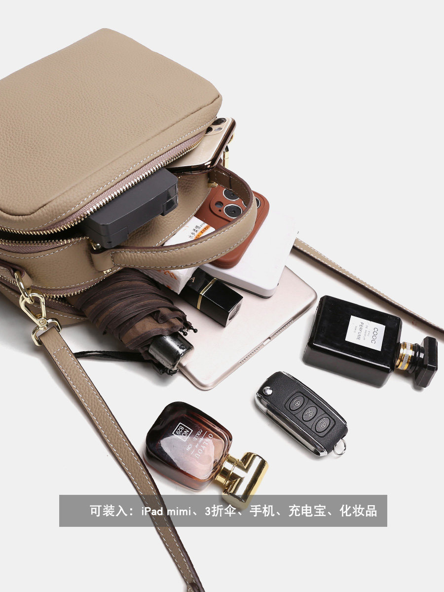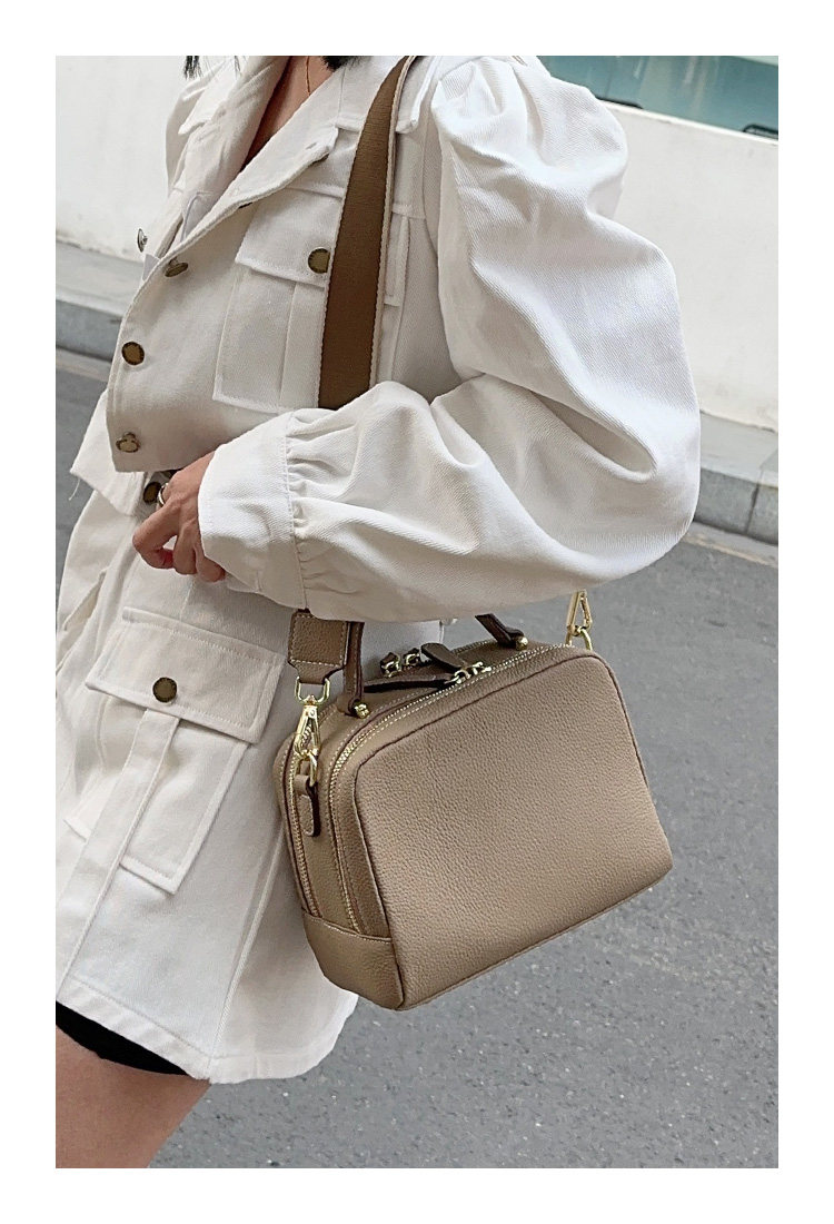 真皮包包女2026新款秋冬小方包休閒手提包軟皮單肩包寬肩帶斜後後背包