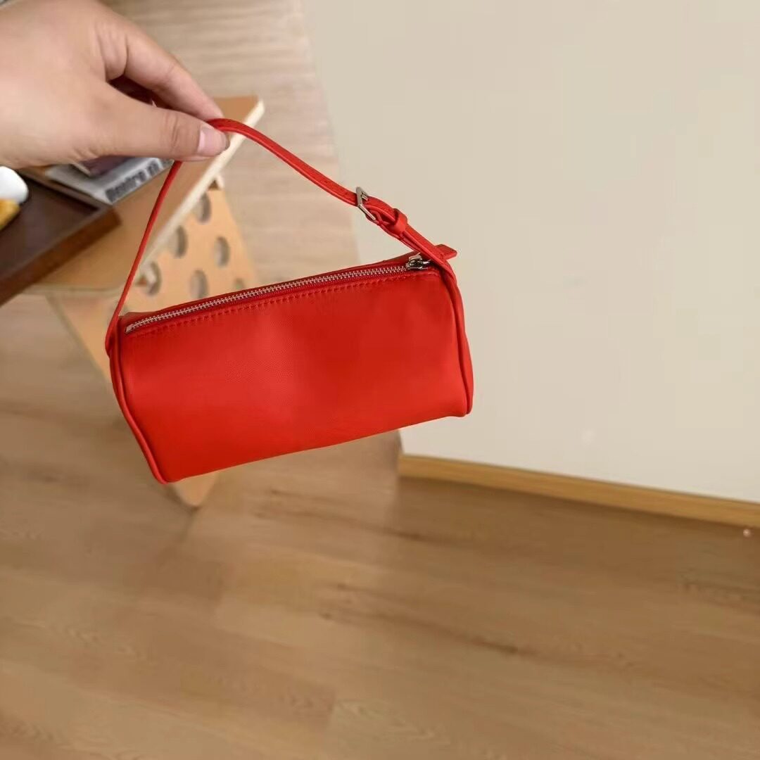 筆筒包女小衆真皮手拎包90s2025新款春夏筆袋包紅色包手提斜後後背包
