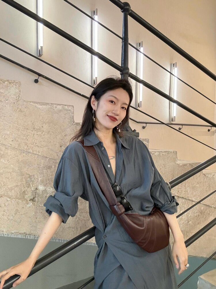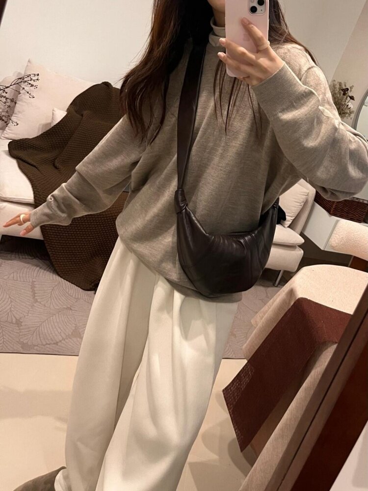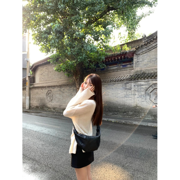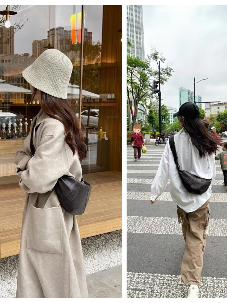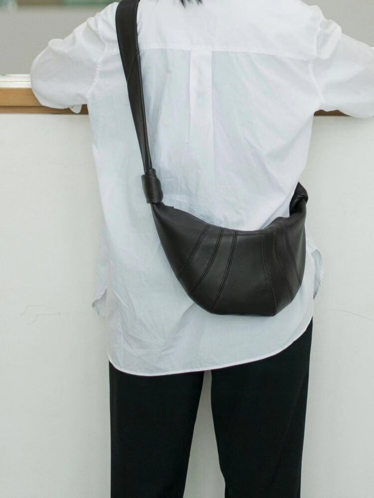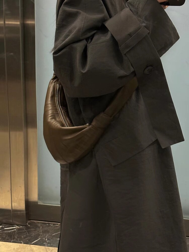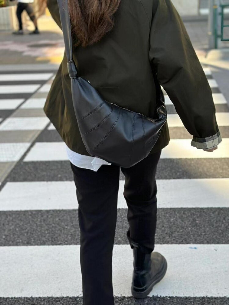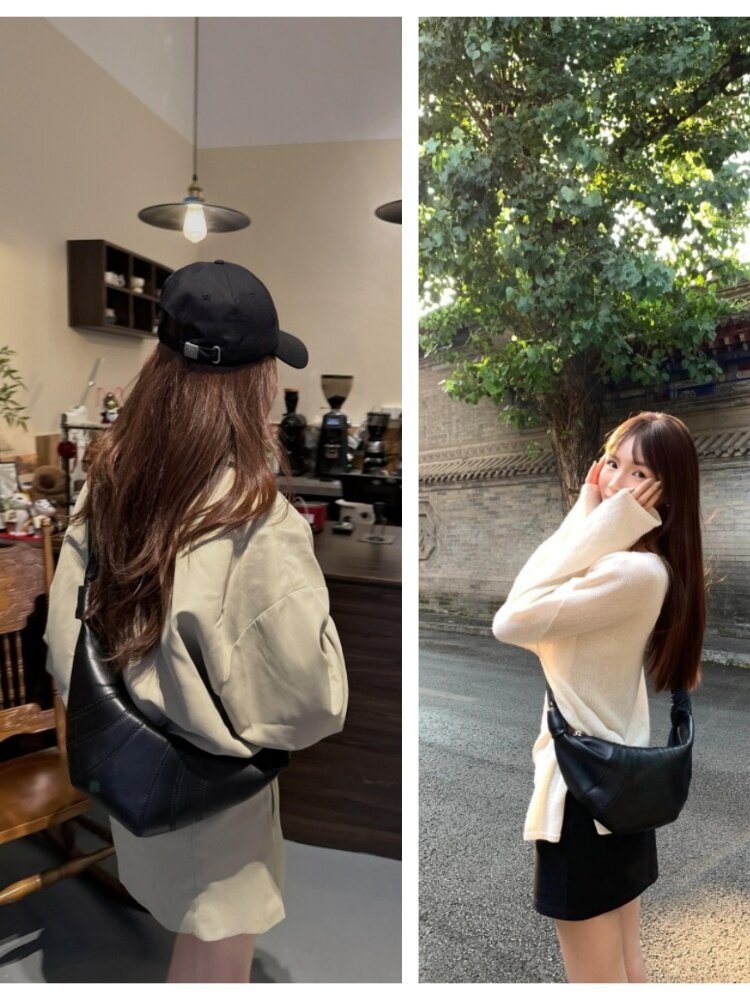 牛角包可頌包慵懶風百搭單肩斜後後背包女新款羊皮質感小衆設計餃子包