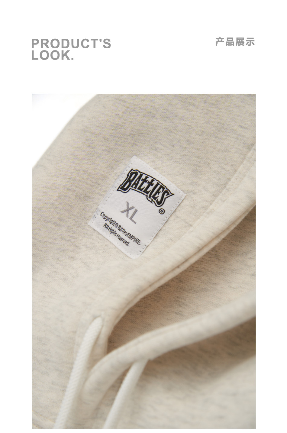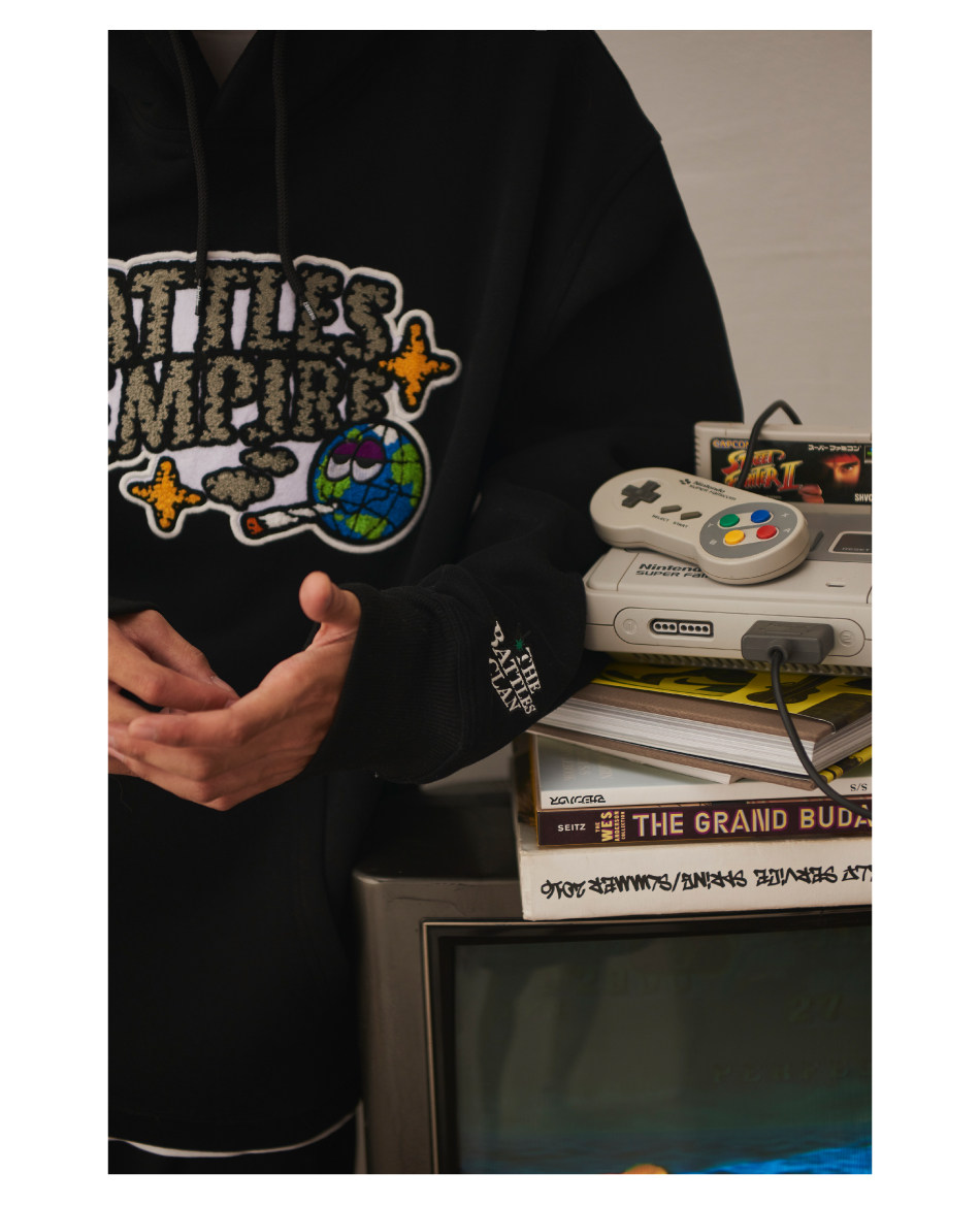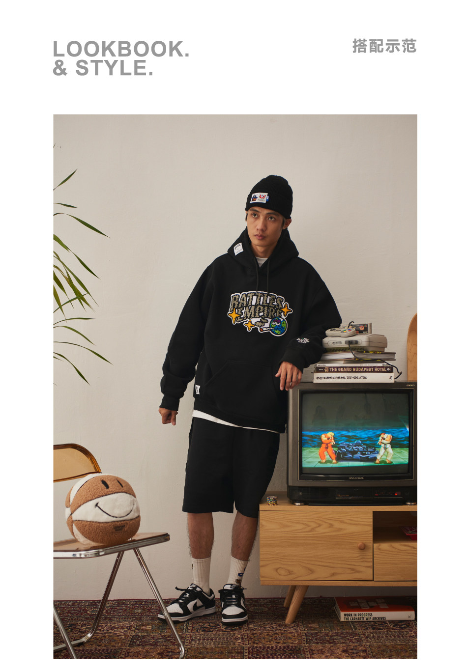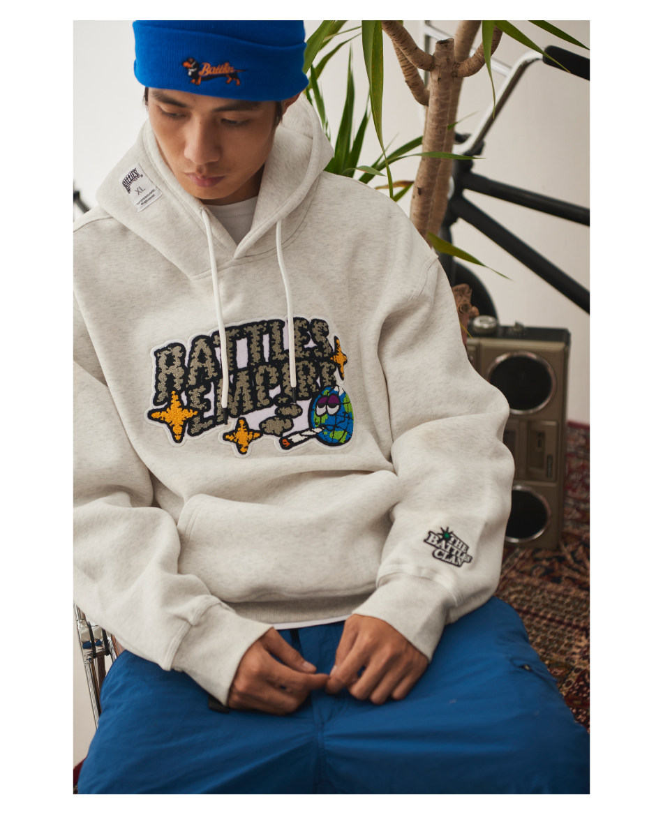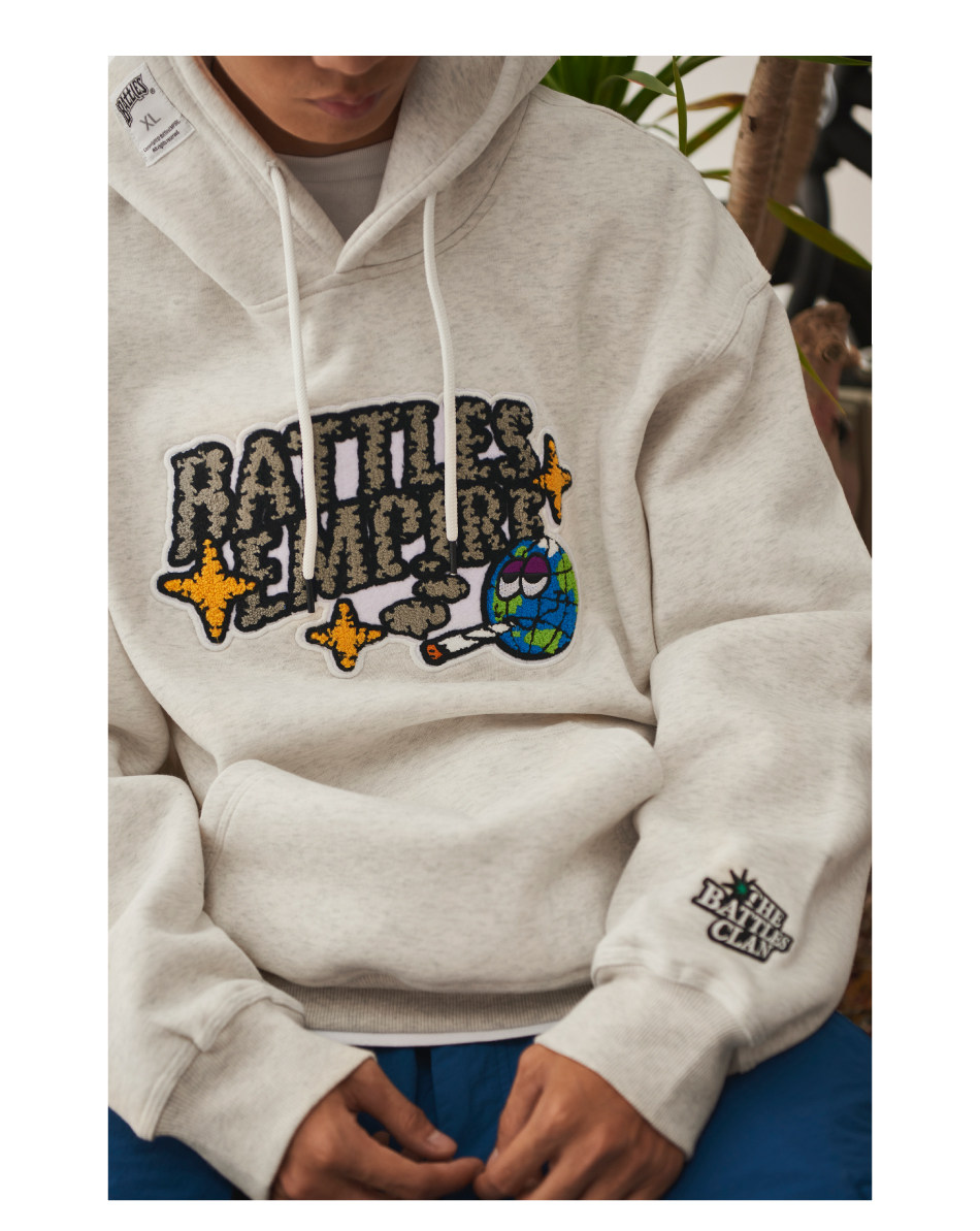 Battles 秋冬地球毛巾刺綉抓絨連帽衛衣男套頭外套寬鬆