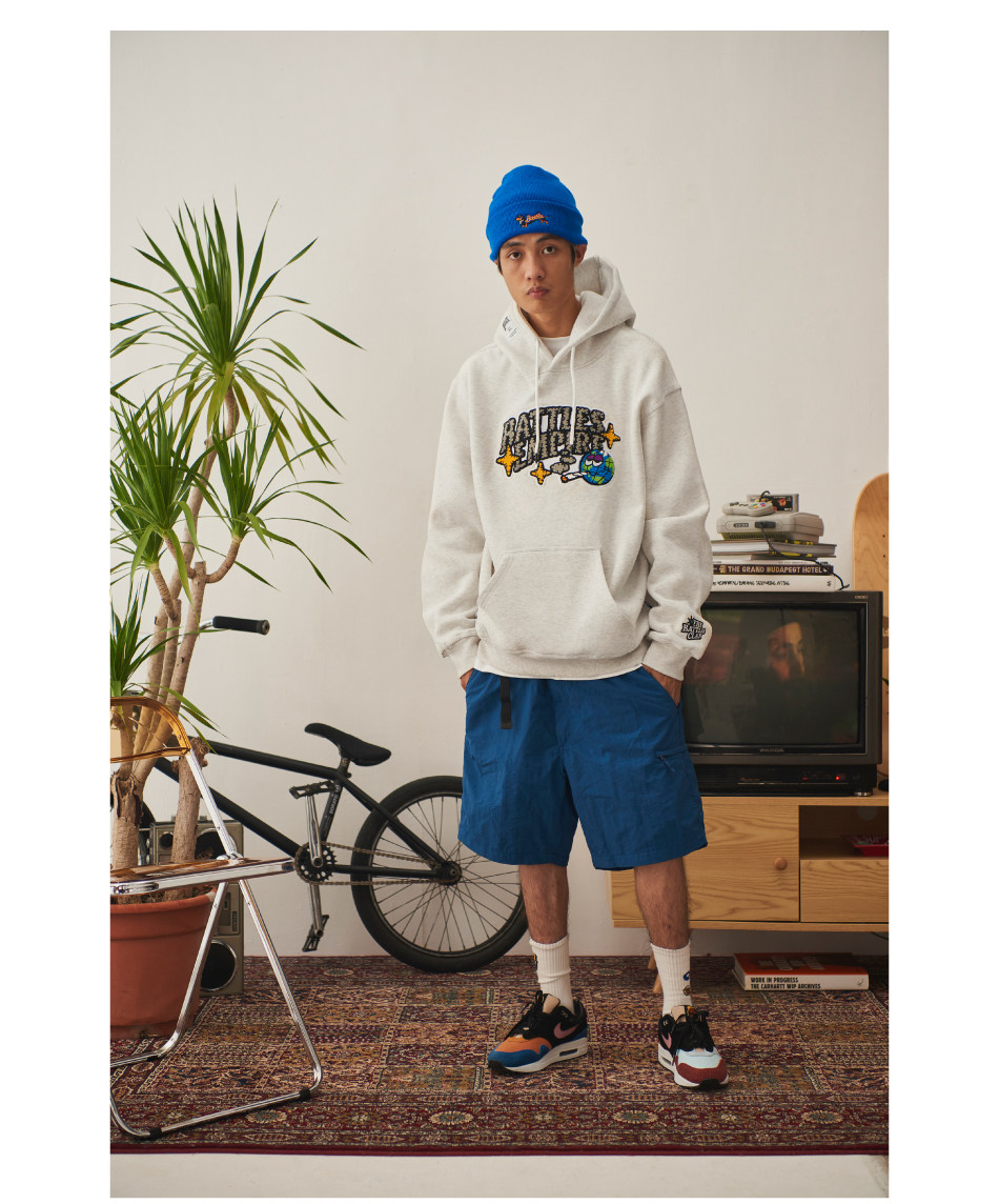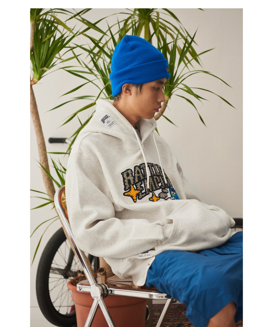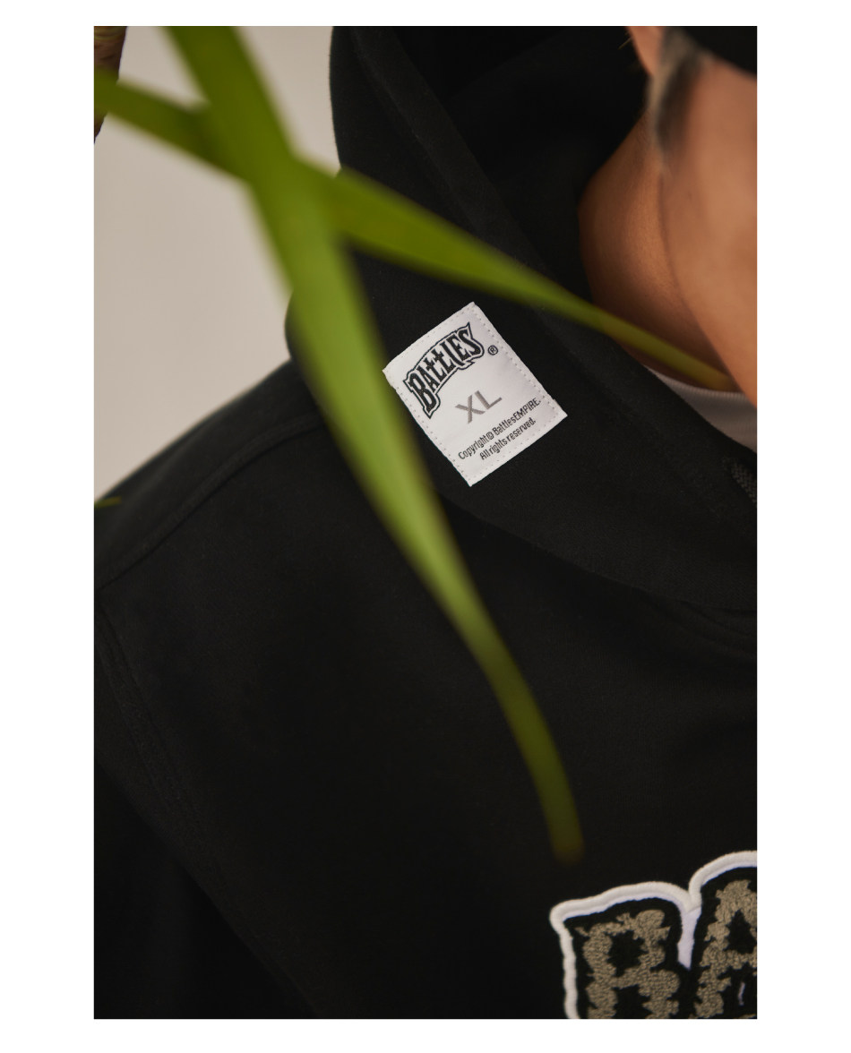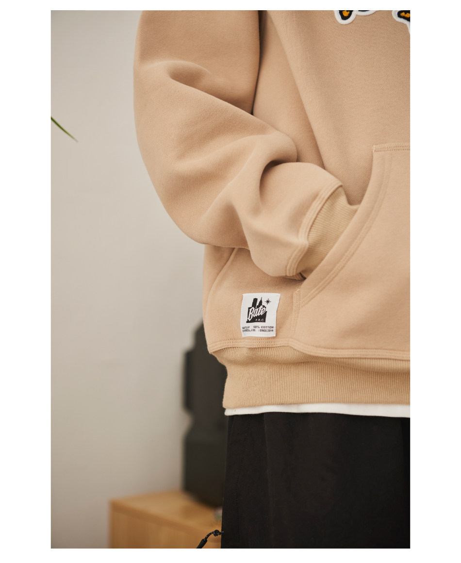 Battles 秋冬地球毛巾刺綉抓絨連帽衛衣男套頭外套寬鬆