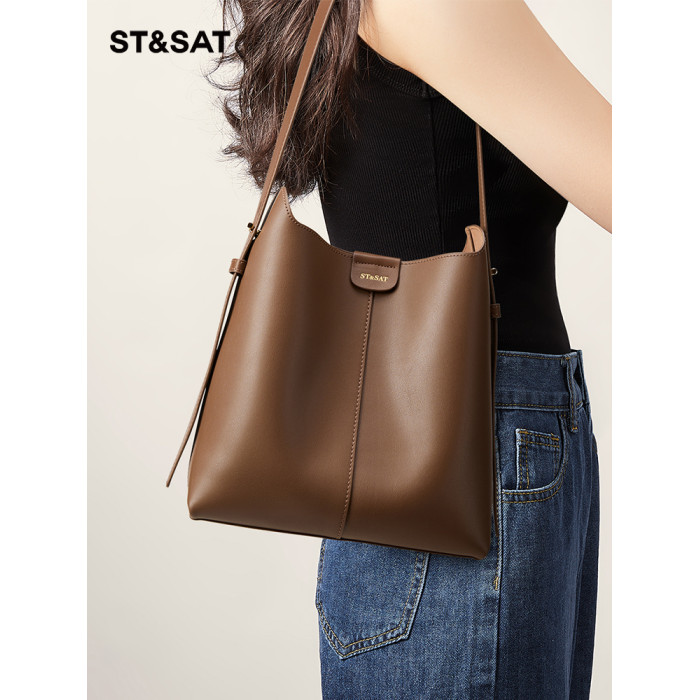 星期六包包女式2026新款春夏單肩包水桶包大容量通勤斜後後背包托特包