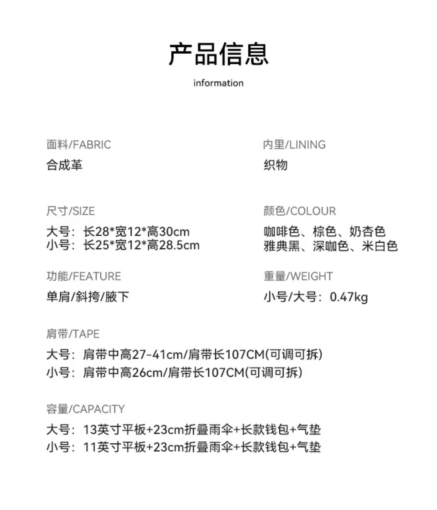 | 箱包硬度 | 軟 |