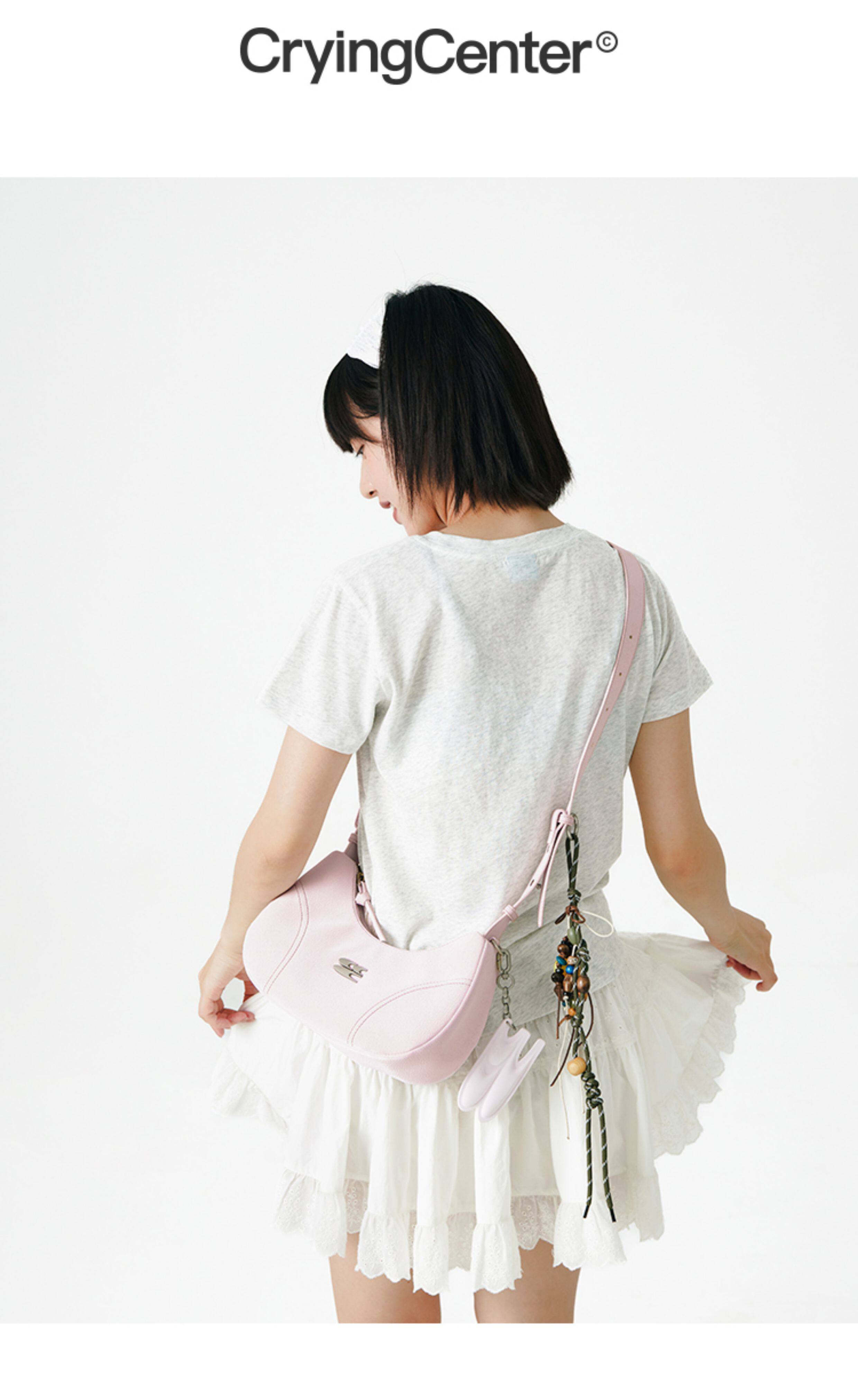 CryingCenter 仿絨多色斜背單肩手提機車包 含掛件 哭喊中心