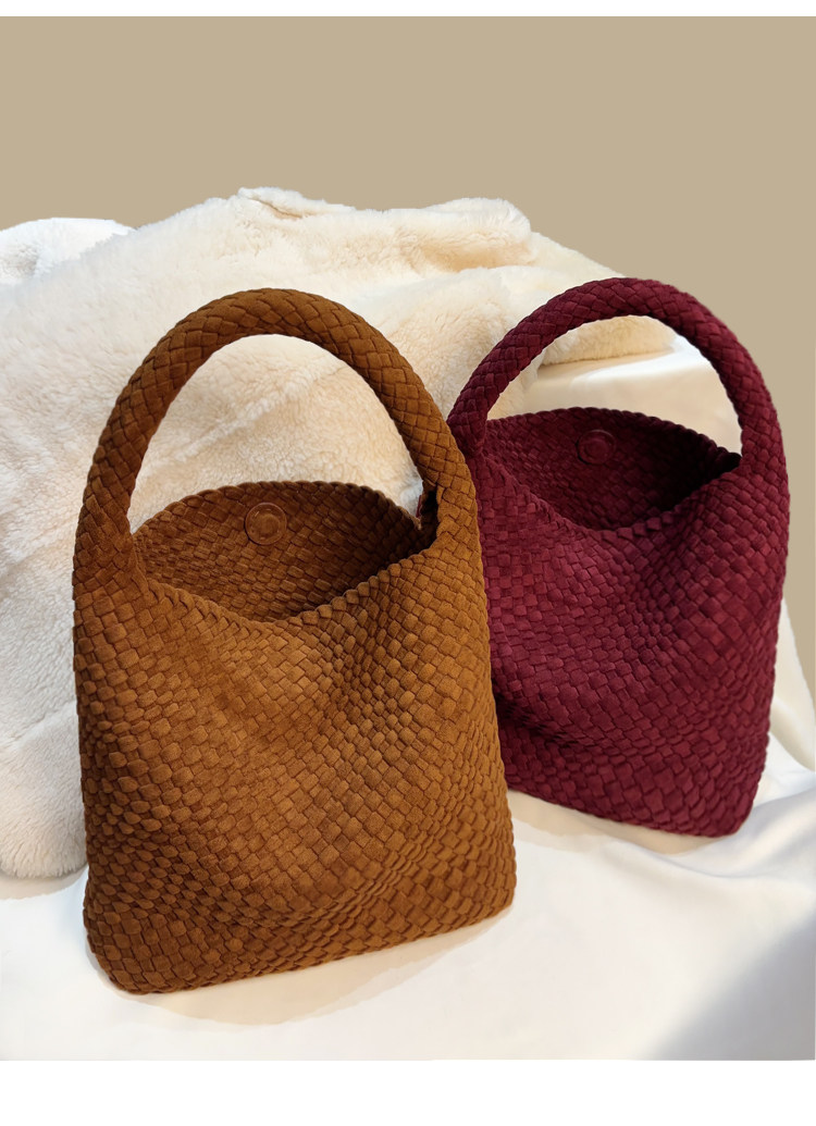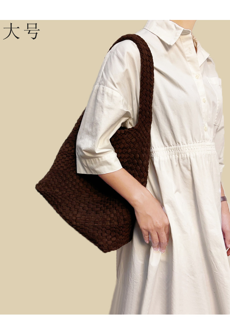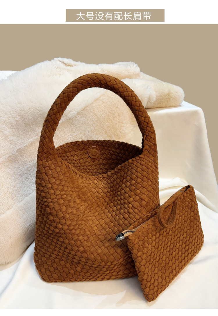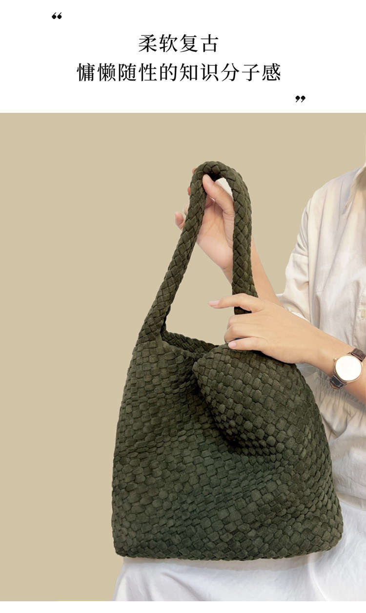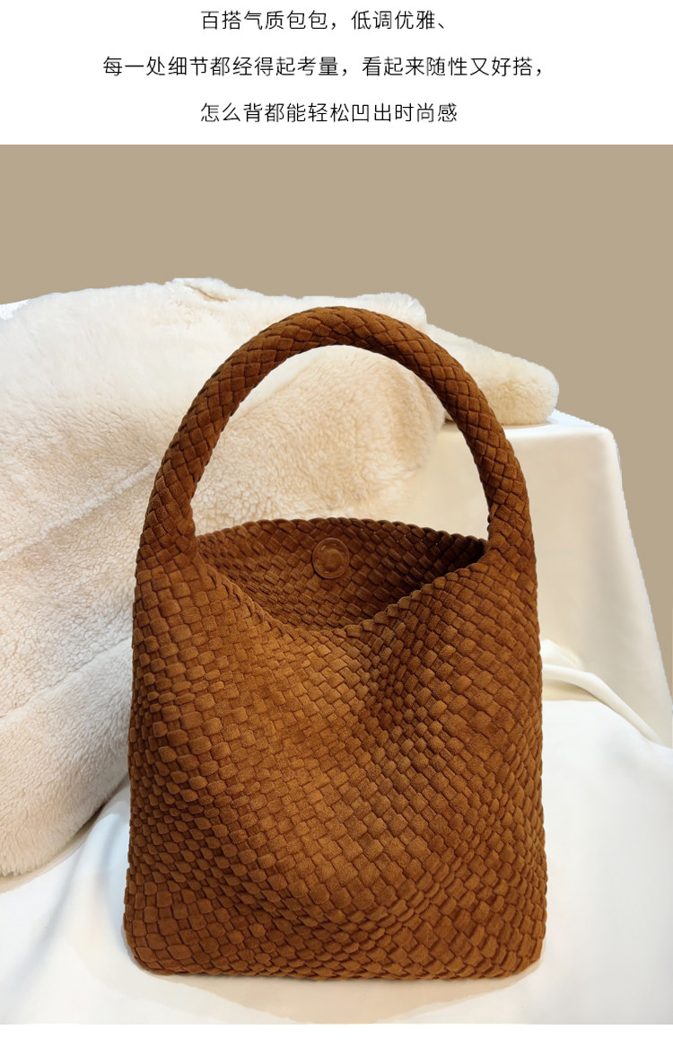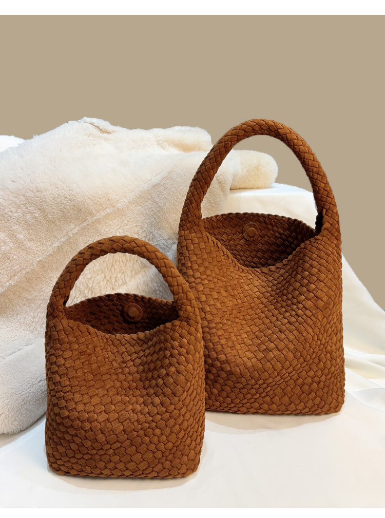 手工編織麂皮絨大容量水桶包單肩手提托特包百搭純色高級感慵懶風