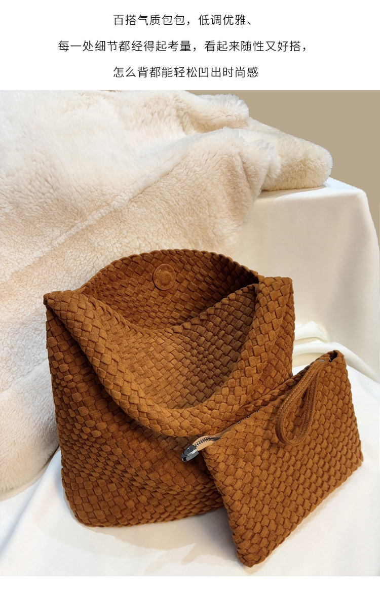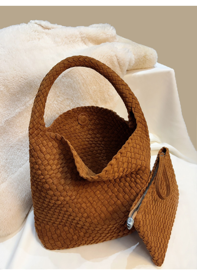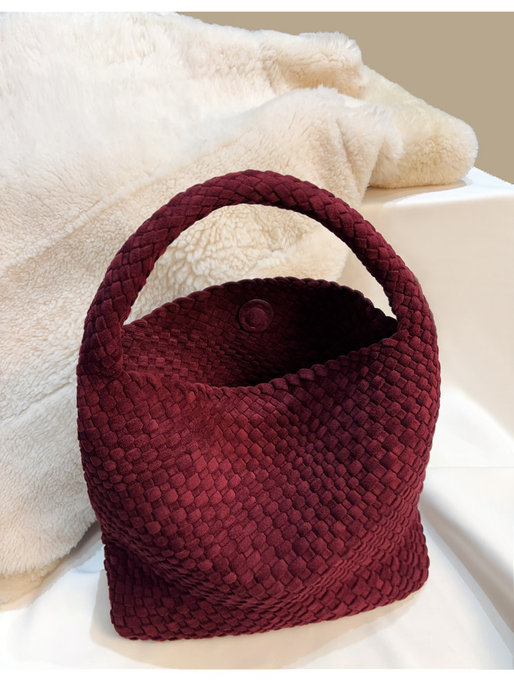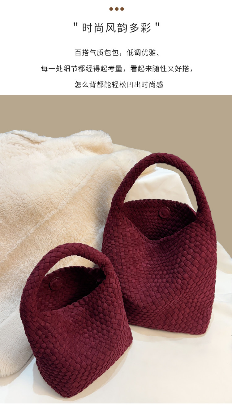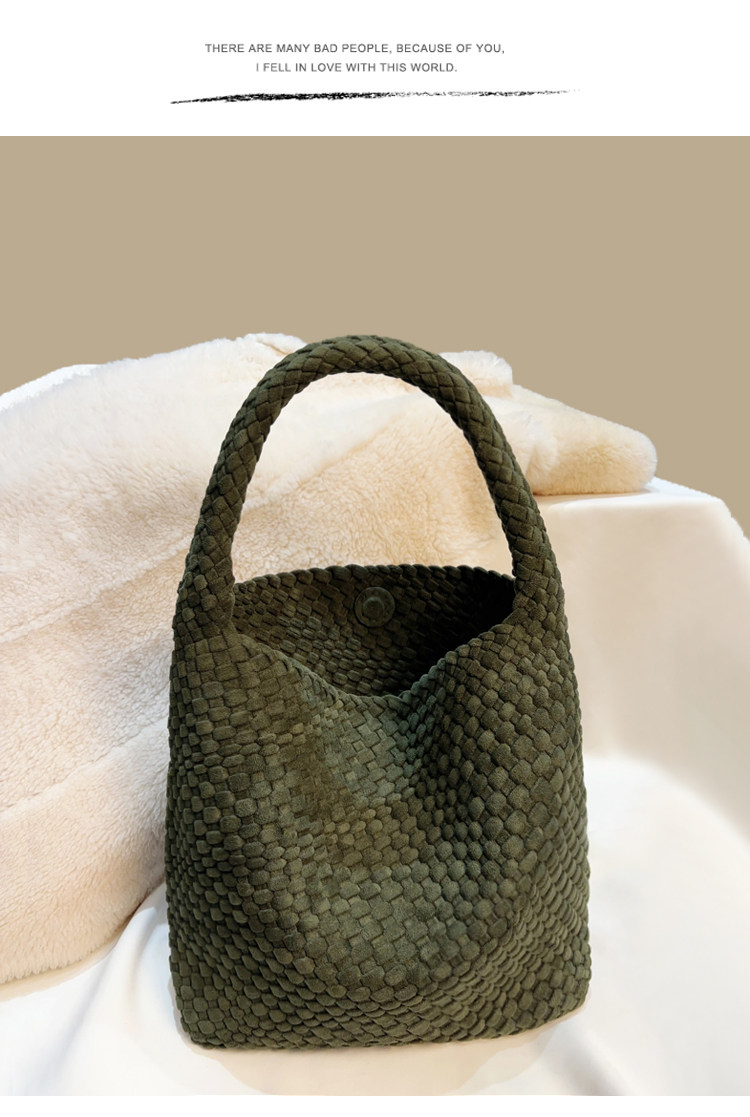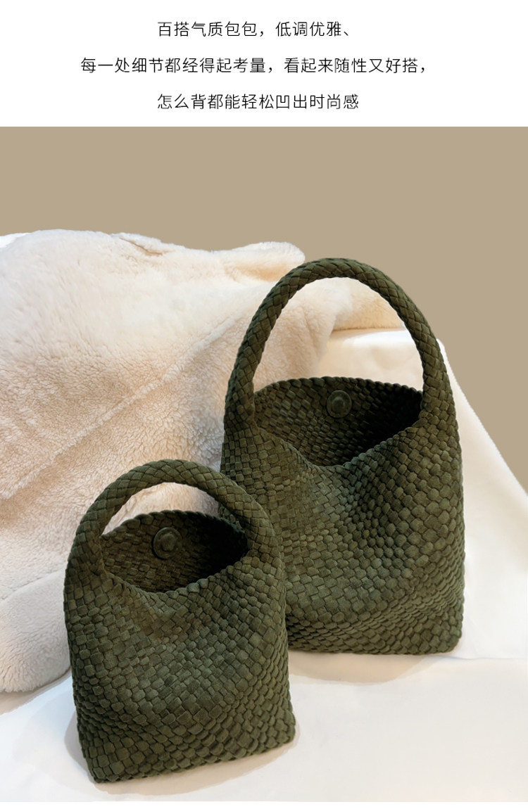 手工編織麂皮絨大容量水桶包單肩手提托特包百搭純色高級感慵懶風