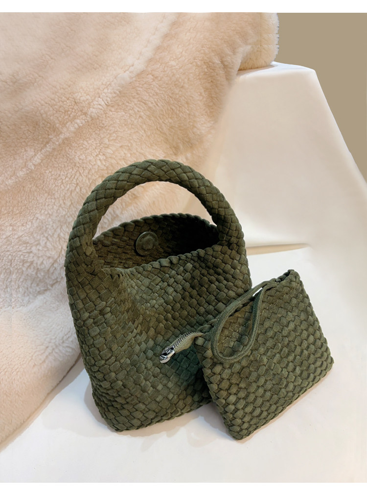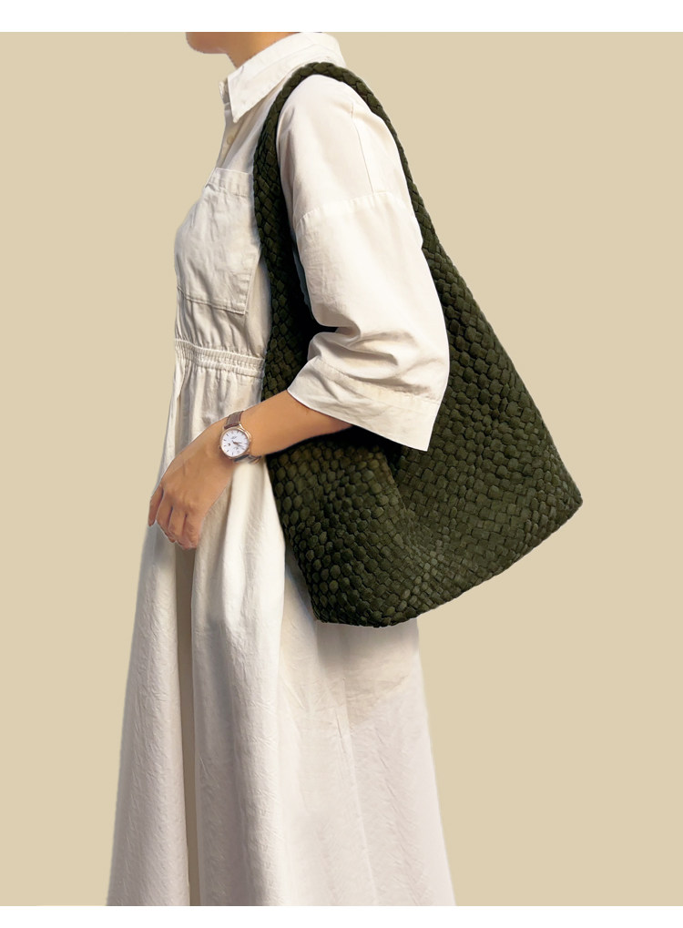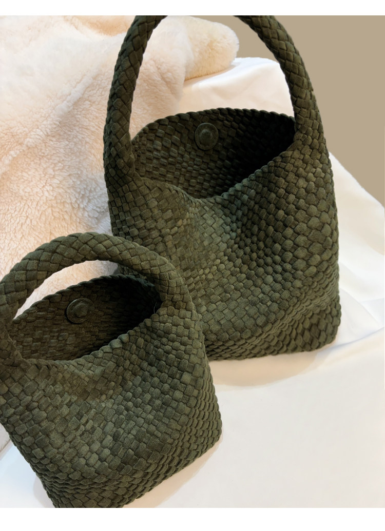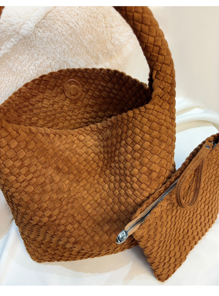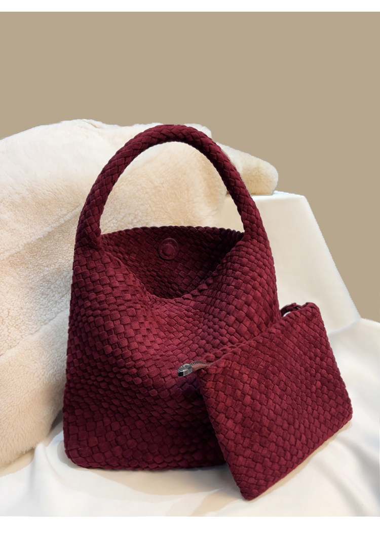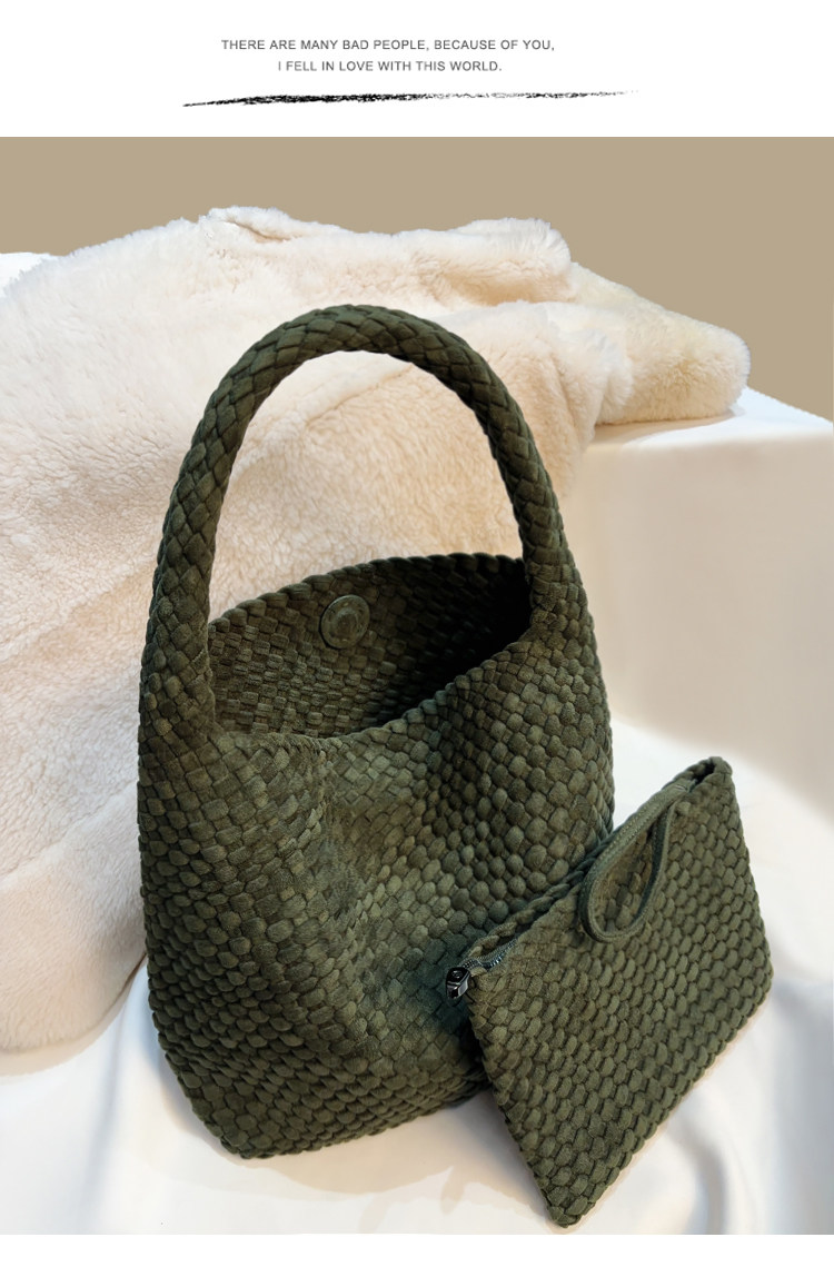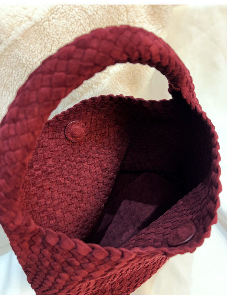 手工編織麂皮絨大容量水桶包單肩手提托特包百搭純色高級感慵懶風