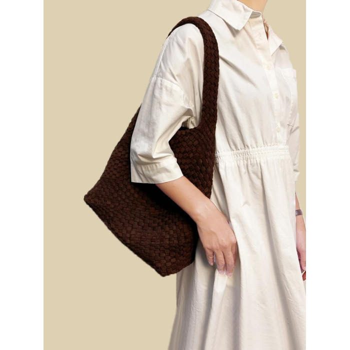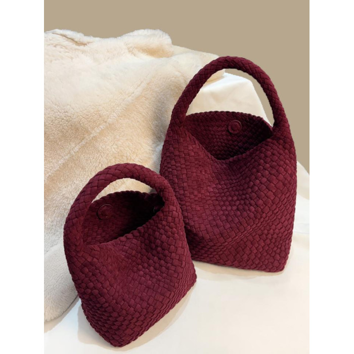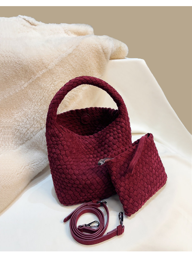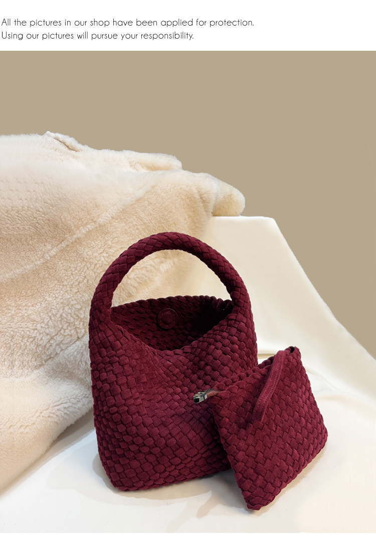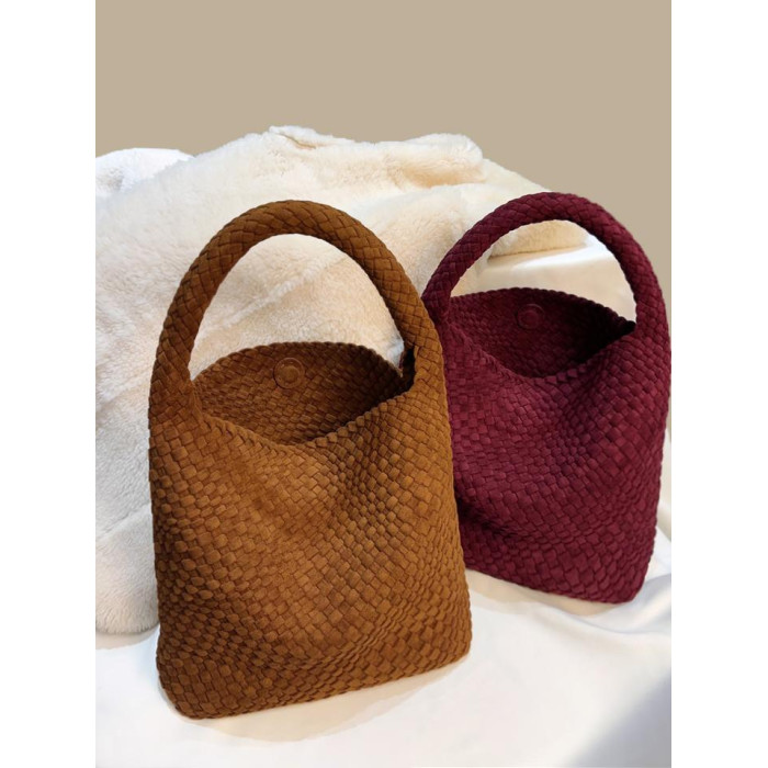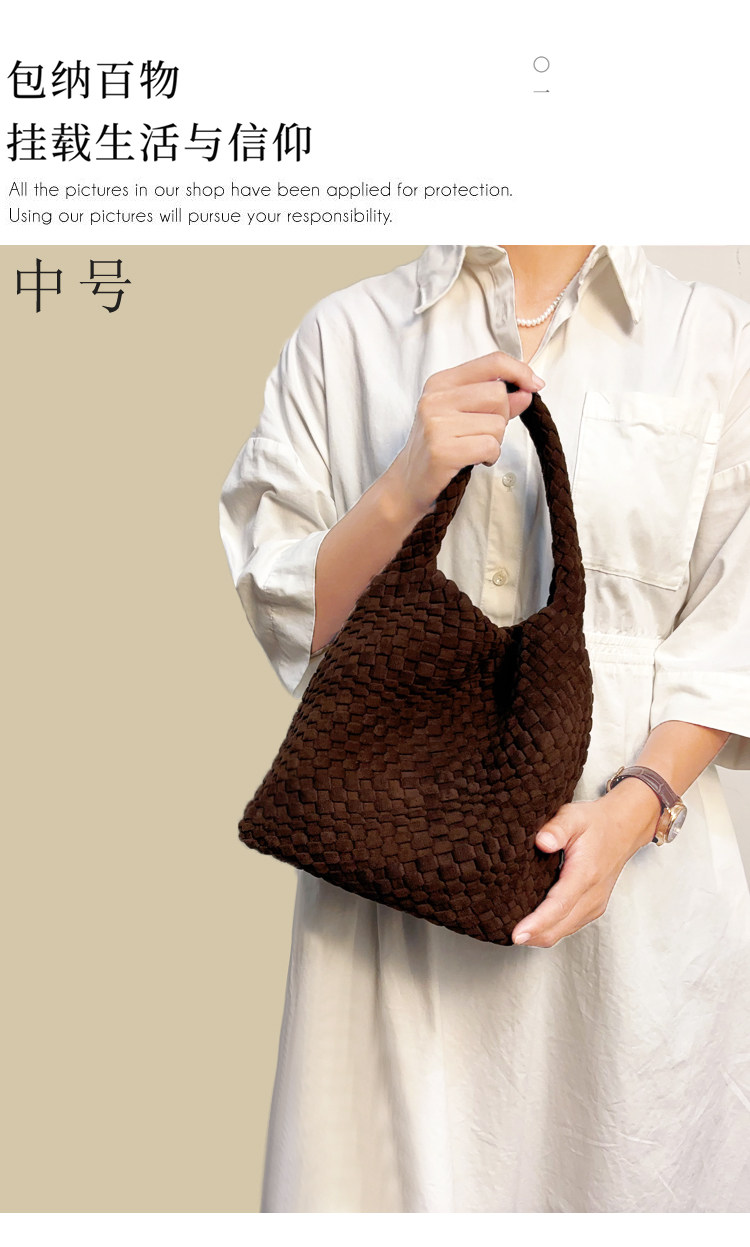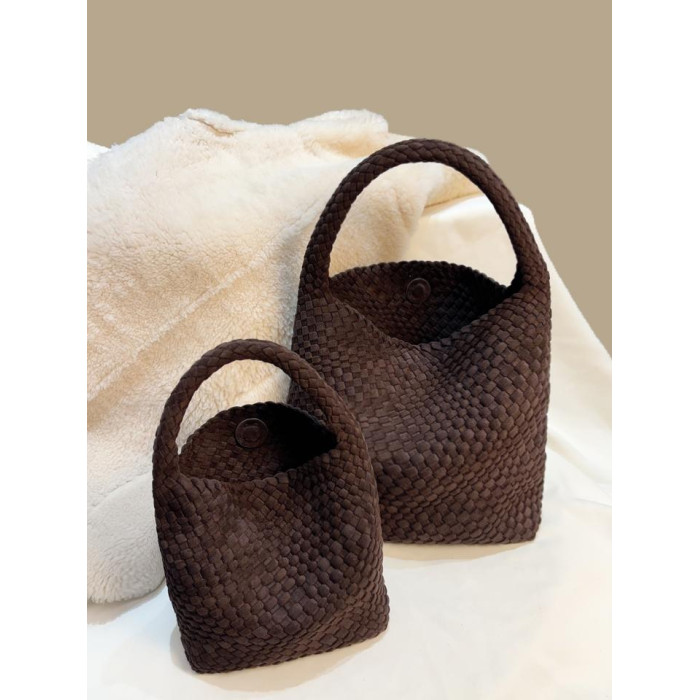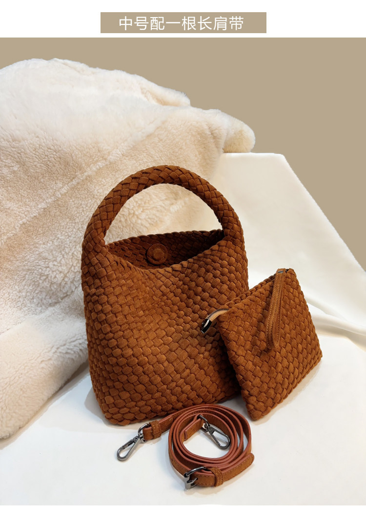 手工編織麂皮絨大容量水桶包單肩手提托特包百搭純色高級感慵懶風