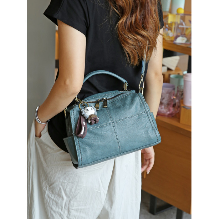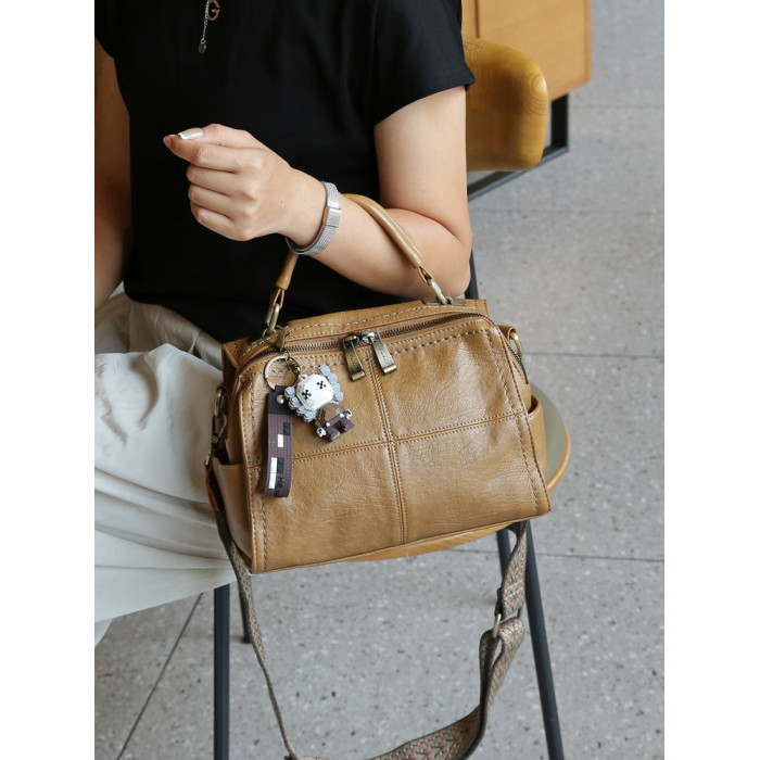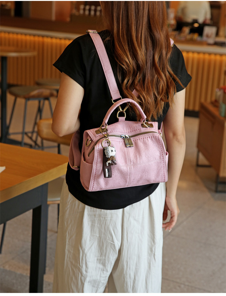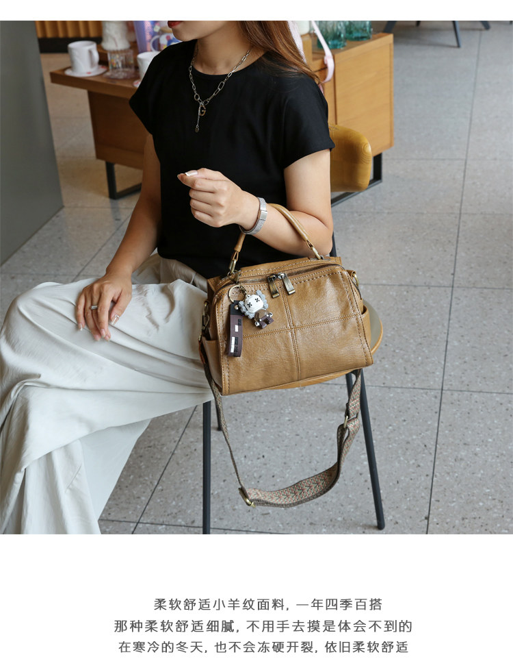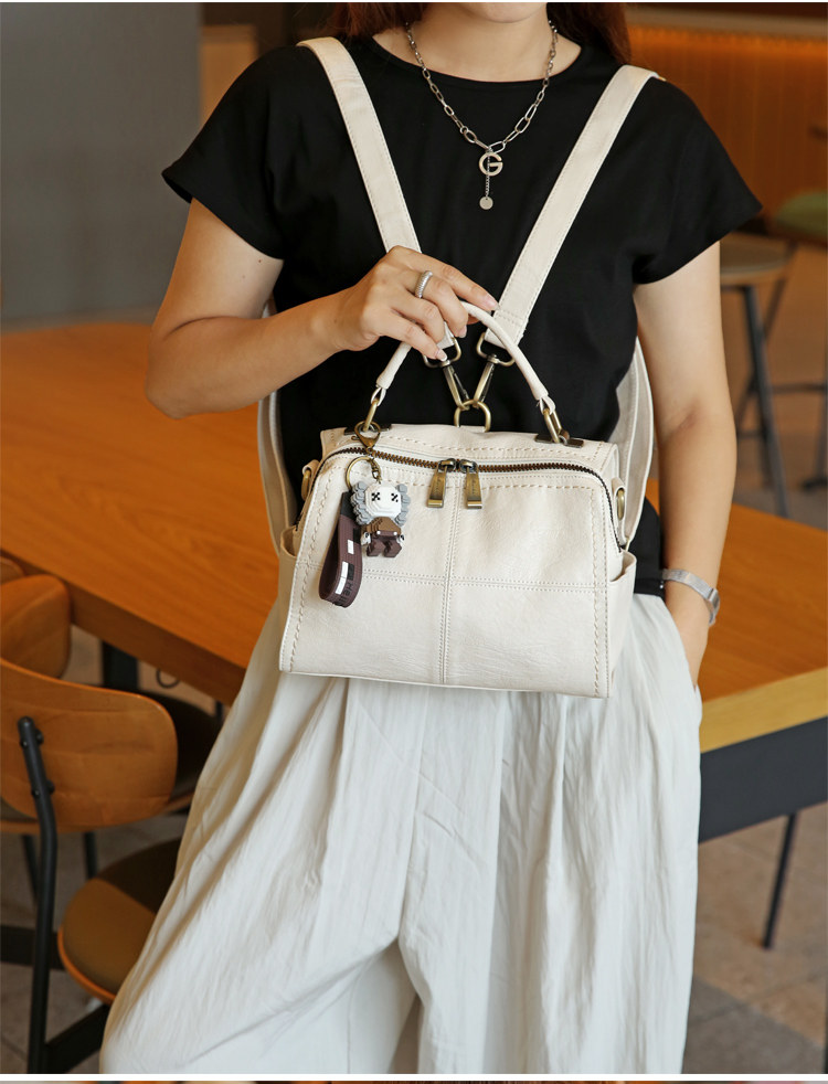 手提包女2026新款休閒軟皮枕頭包中年媽媽包單肩斜後後背包三用雙肩包