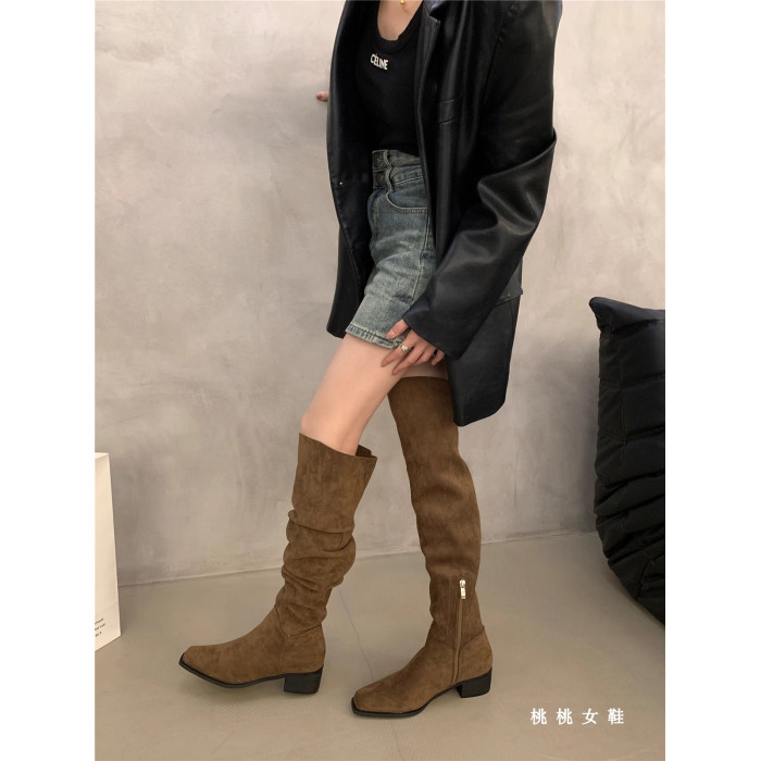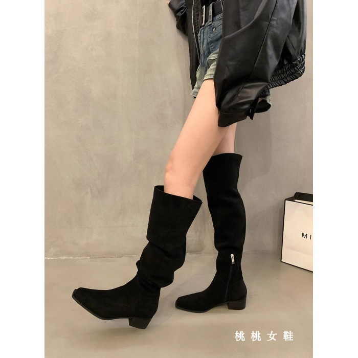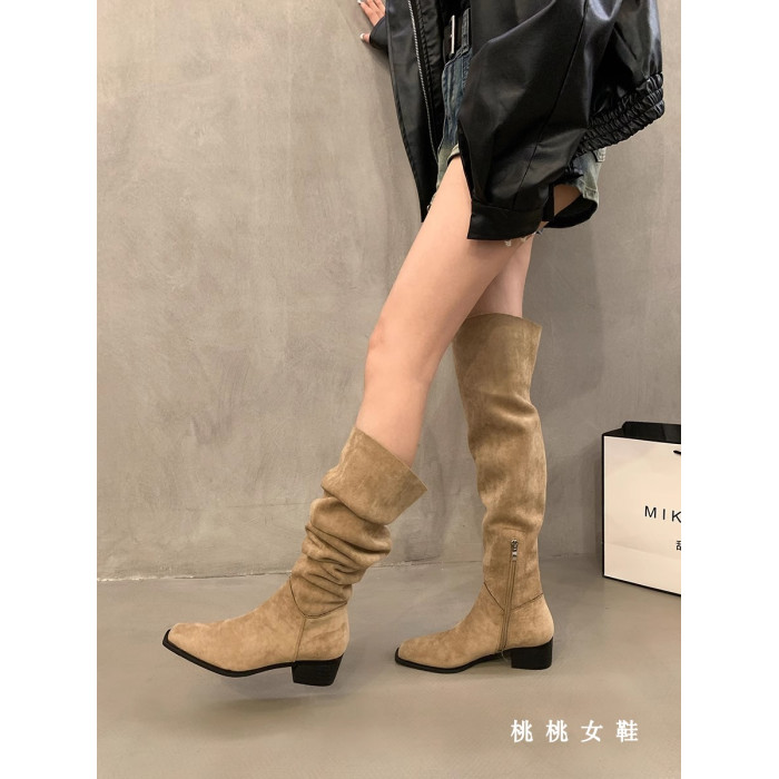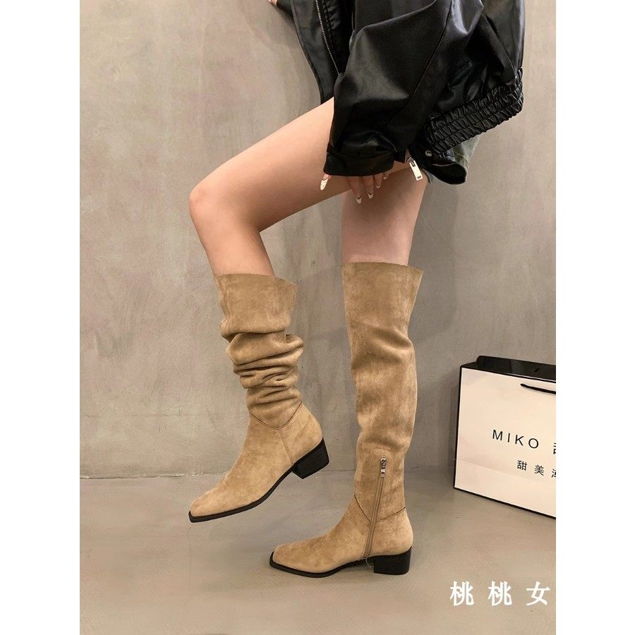 一靴多穿!粗跟方頭過膝靴子復古百搭長靴2025秋冬堆堆騎士馬丁靴