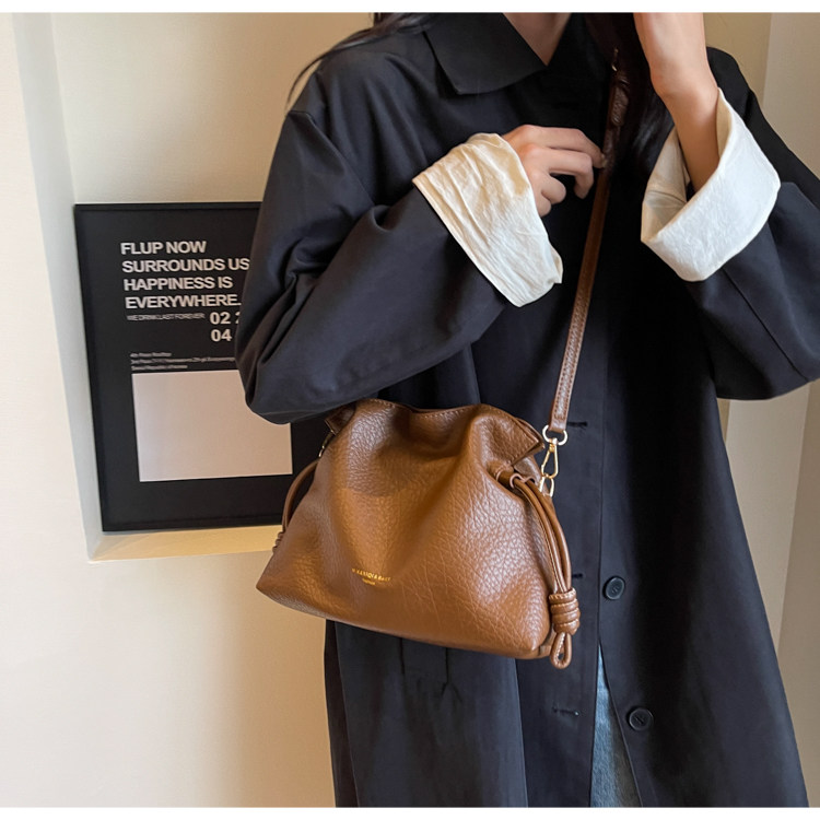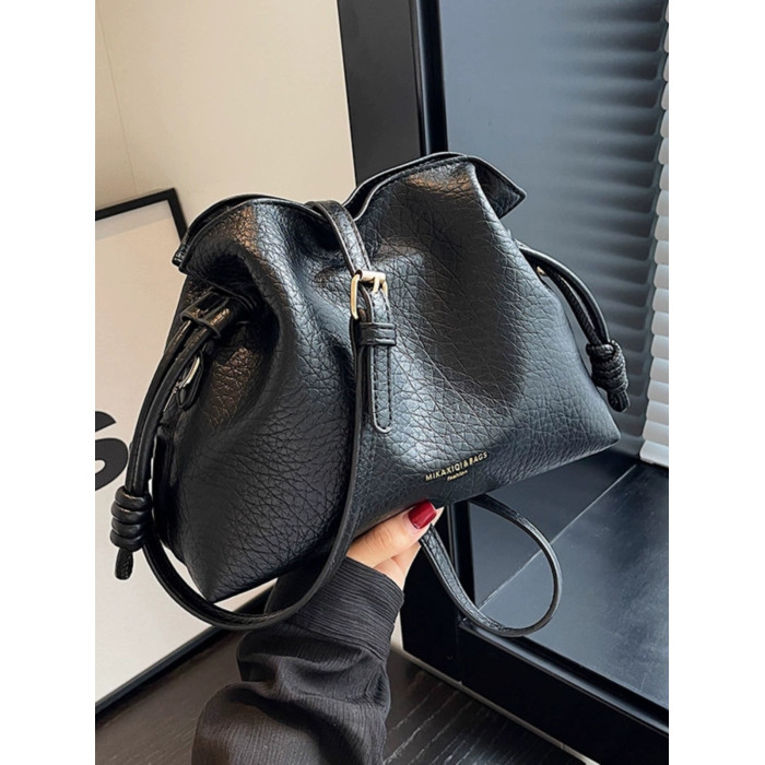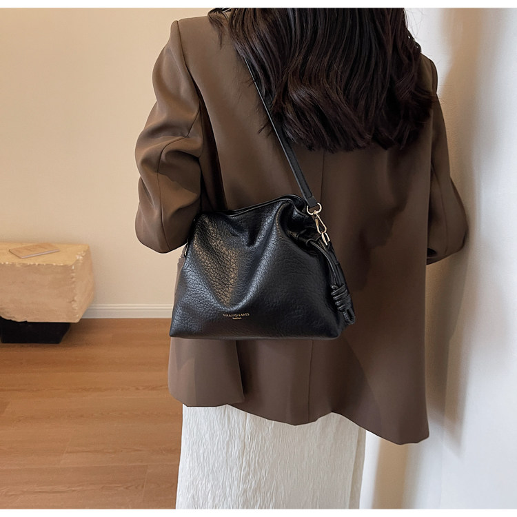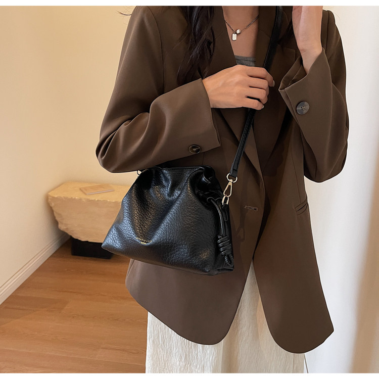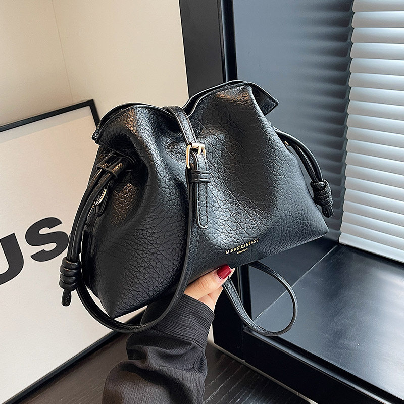 黑色包包女2025超火新款時尚高級感洋氣單肩斜後後背包小衆設計水桶包