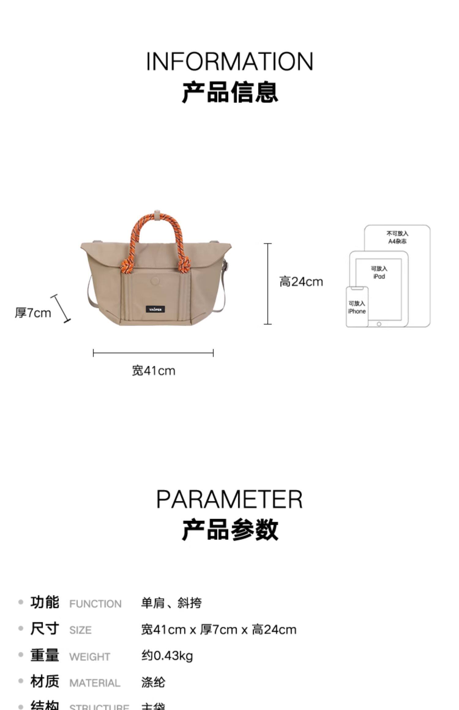 VAOPER喂牌新款托特包女大容量休閒單肩包斜後後背包短途旅行包手提包