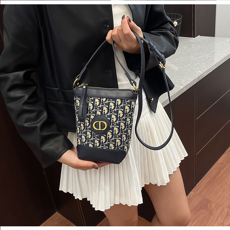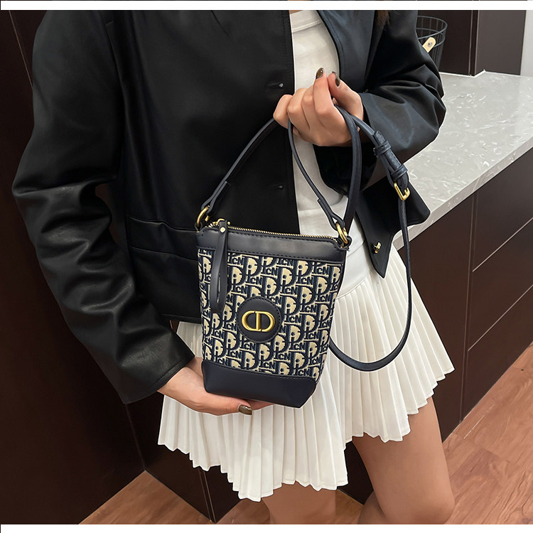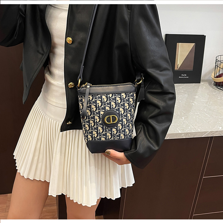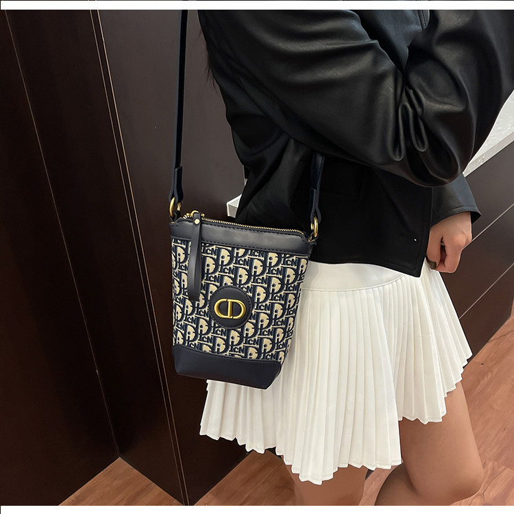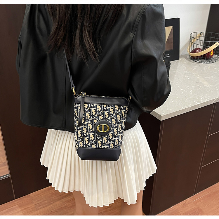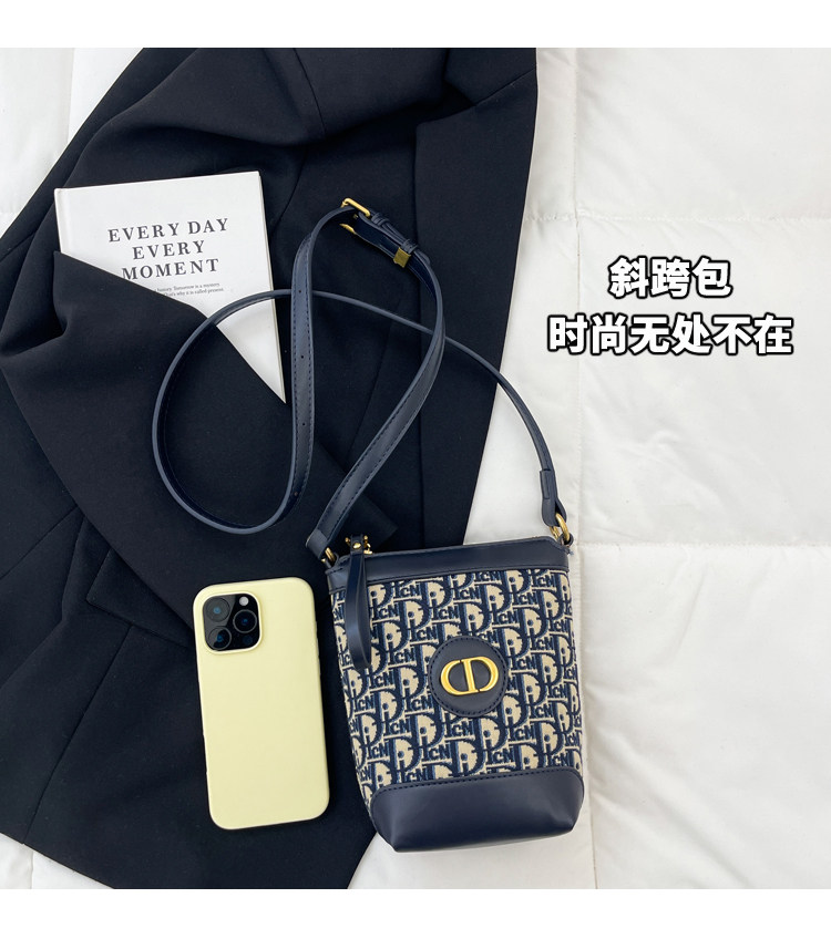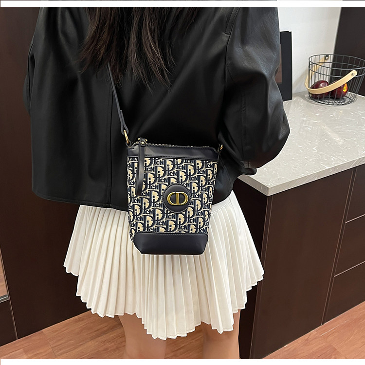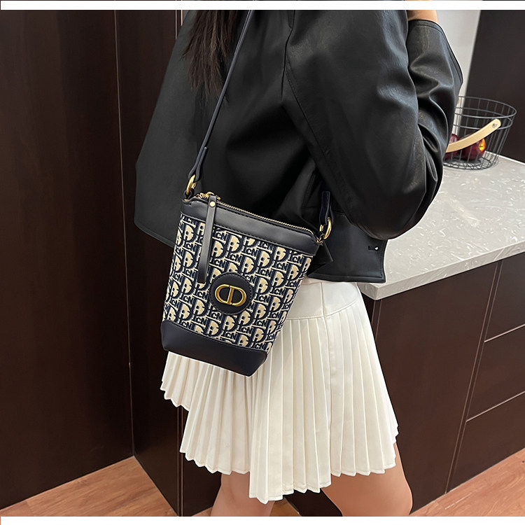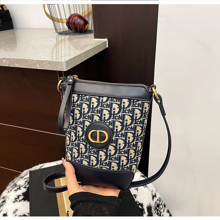 小包包女復古刺綉老花水桶包包女時尚潮流新款單肩斜背迷你手機包