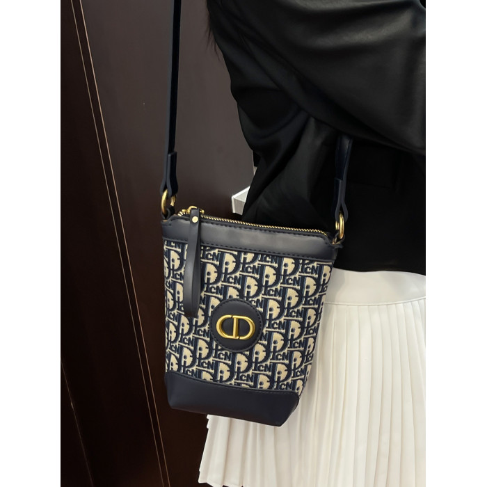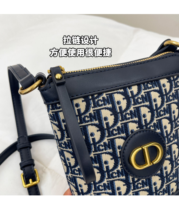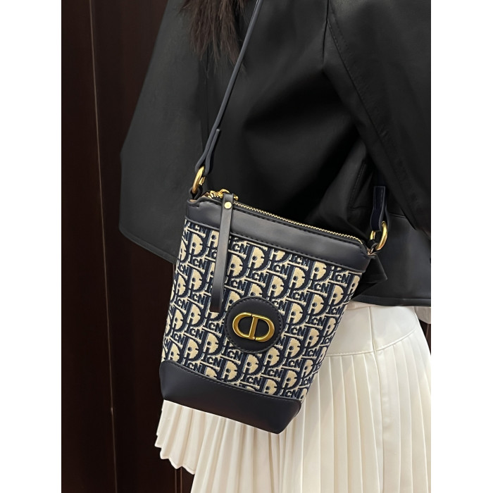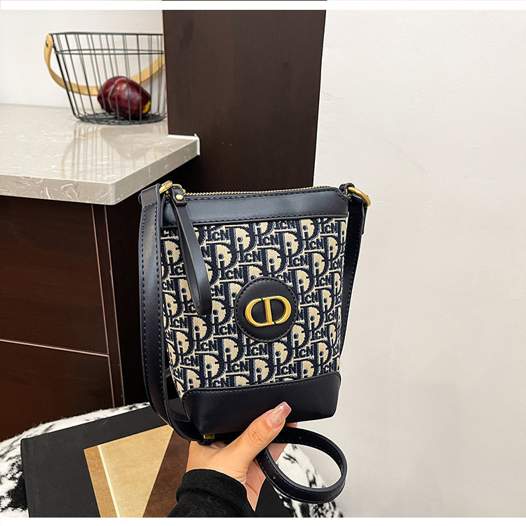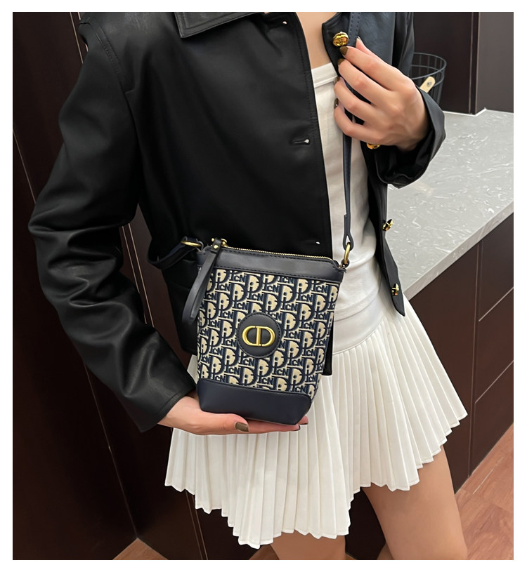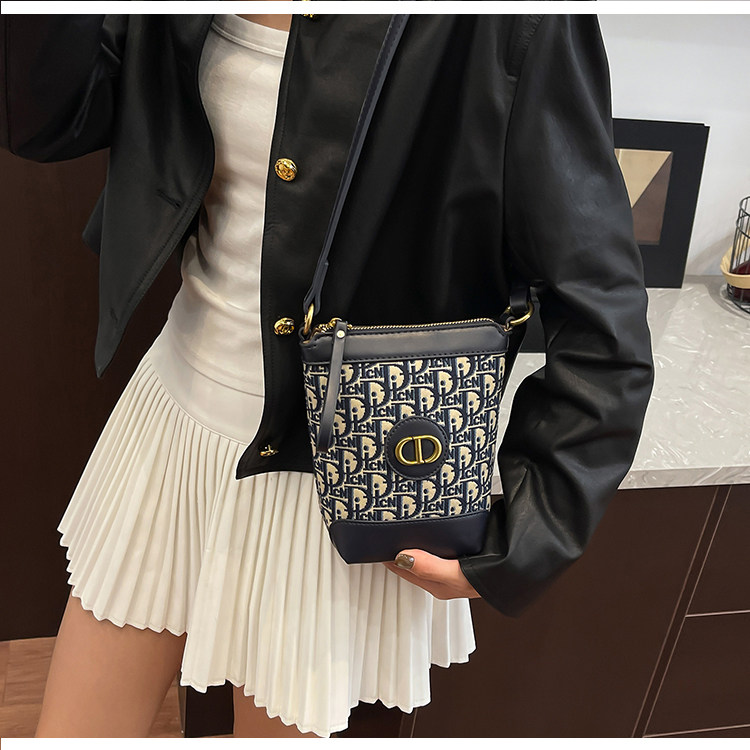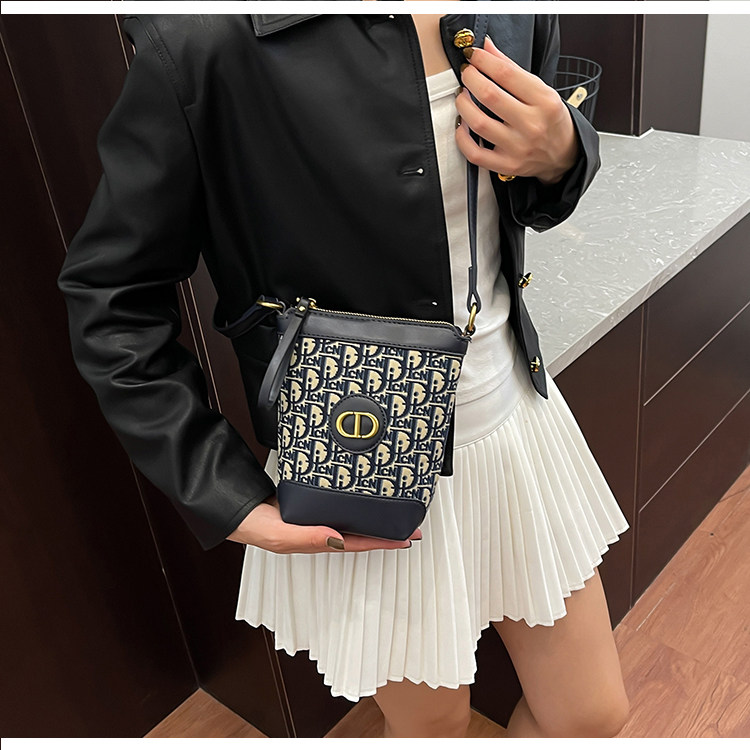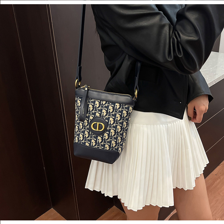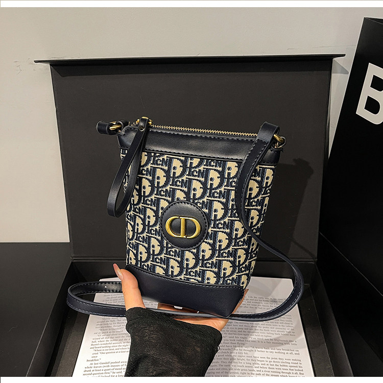 小包包女復古刺綉老花水桶包包女時尚潮流新款單肩斜背迷你手機包