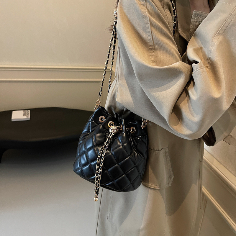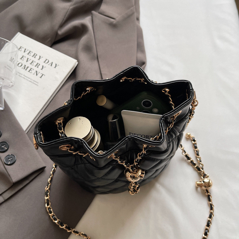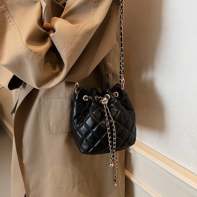 2025軟的包包小衆原創香風莊園水桶包包女2025新款菱格鏈條水桶包