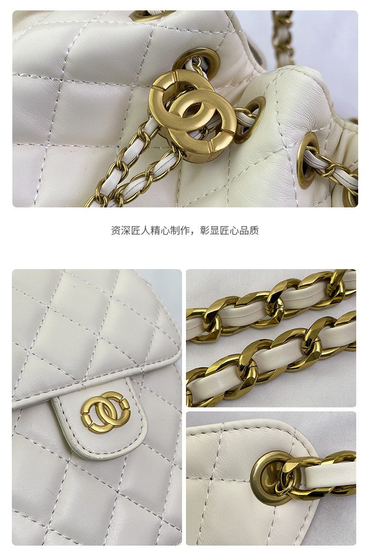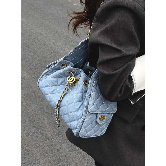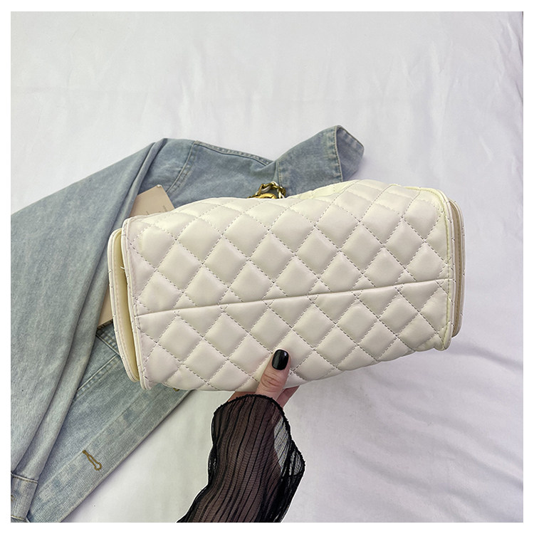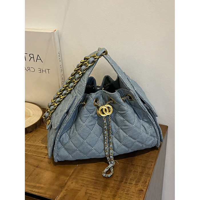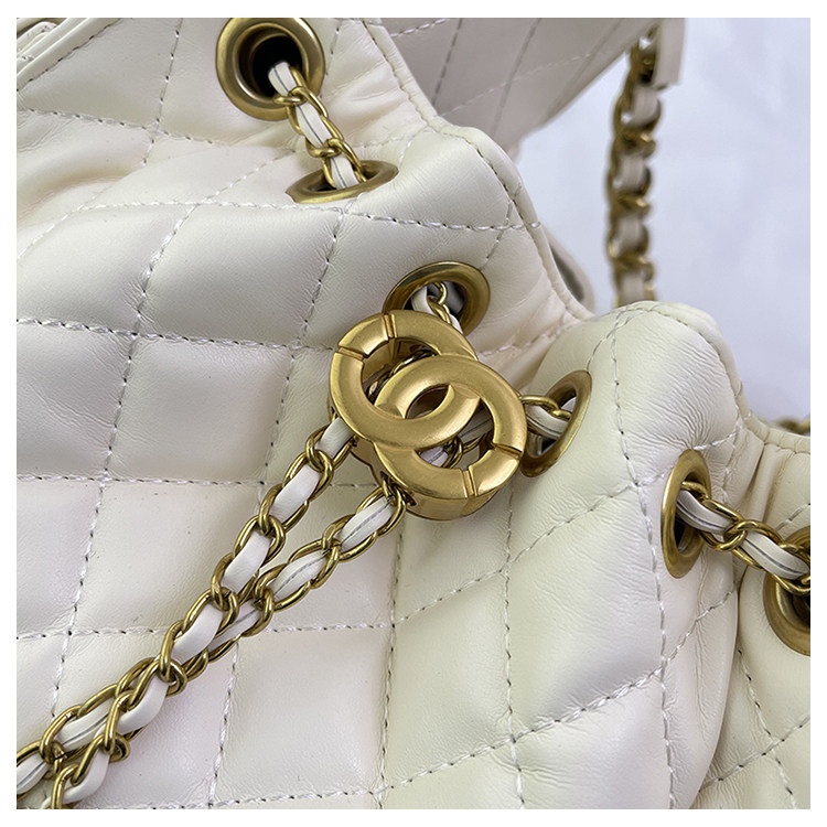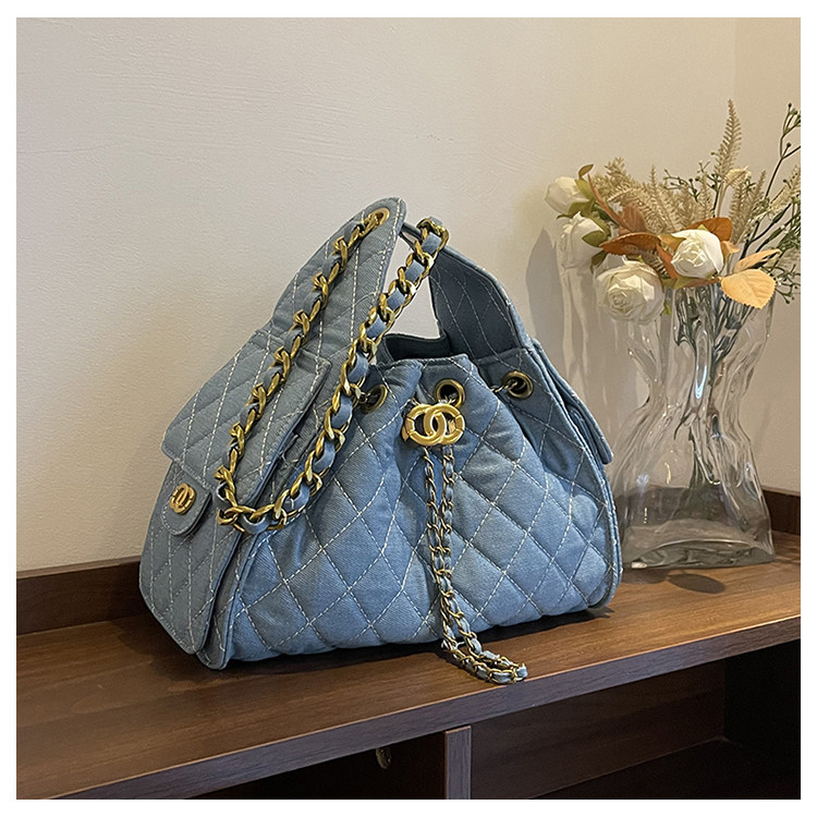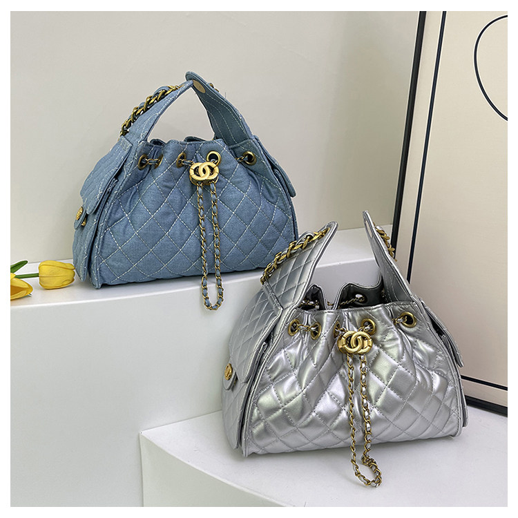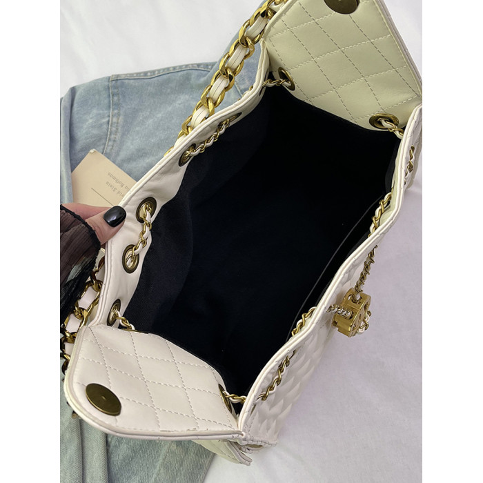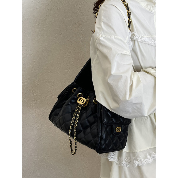 菱格復古單肩腋下包大容量時尚流浪包水桶抽繩包早春鏈條斜後後背包女